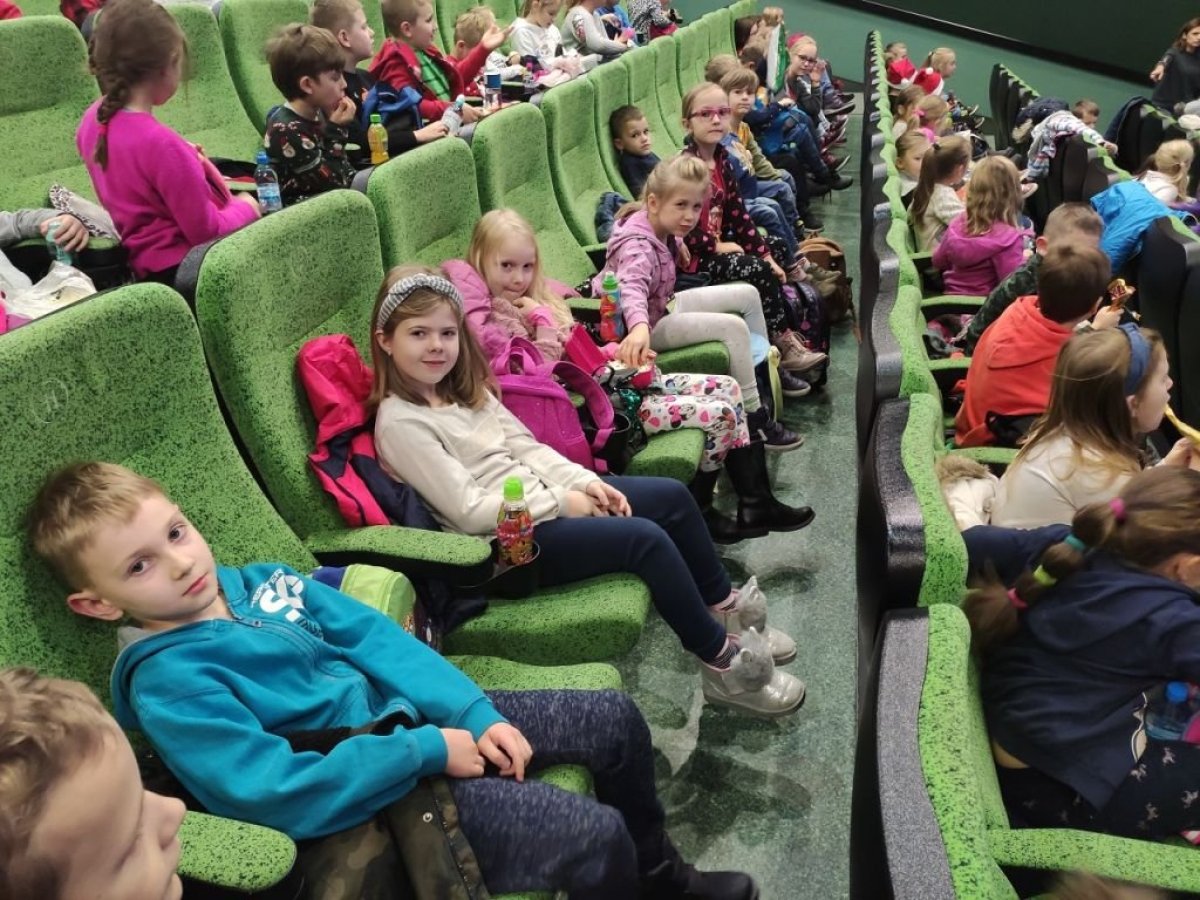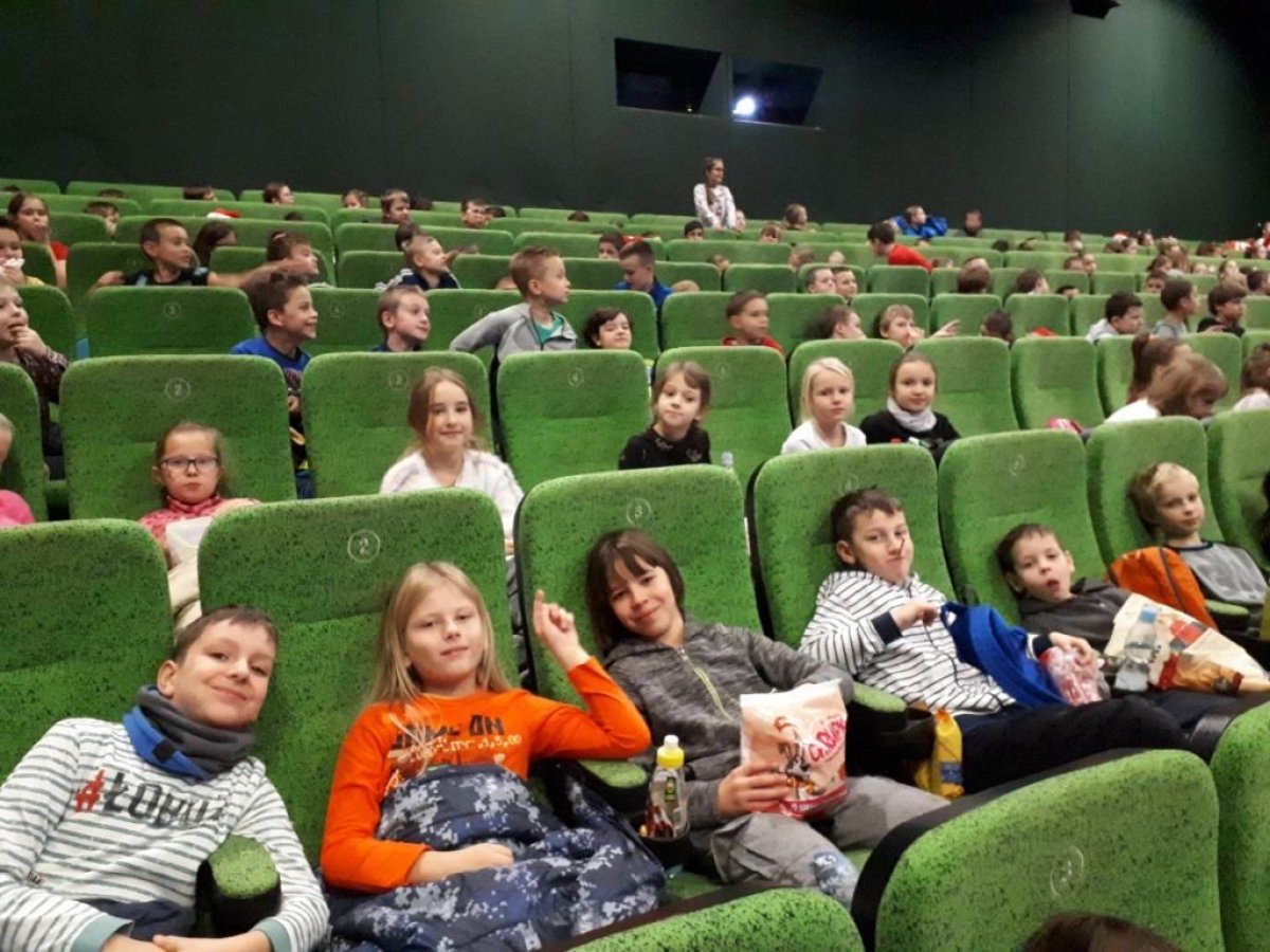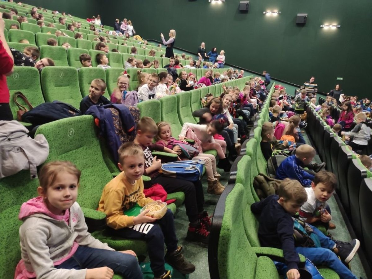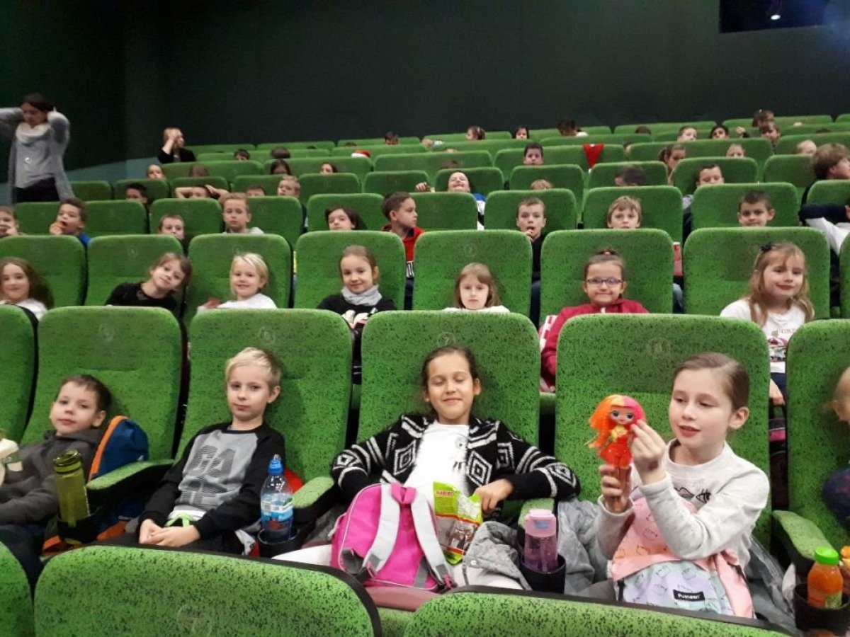 Z okazji mikołajek, 6 grudnia 2019r. uczniowie klas 1-3 naszej szkoły wybrali się do kina Helios na film animowany „Kraina Lodu 2”. Jest to druga część niezwykle popularnej, animowanej baśni Disneya. Dlaczego Elsa urodziła się obdarzona niezwykłą mocą? Anna, Kristoff, Olaf i Sven wyruszają na niebezpieczną i niezwykłą podróż, aby poznać tę tajemnicę. Uczniowie podczas seansu filmu przeżywali niezwykłe przygody razem z bohaterami. Wszyscy wrócili do szkoły pełni radości i z uśmiechami na twarzach, gdyż bajka bardzo podobała się dzieciom.