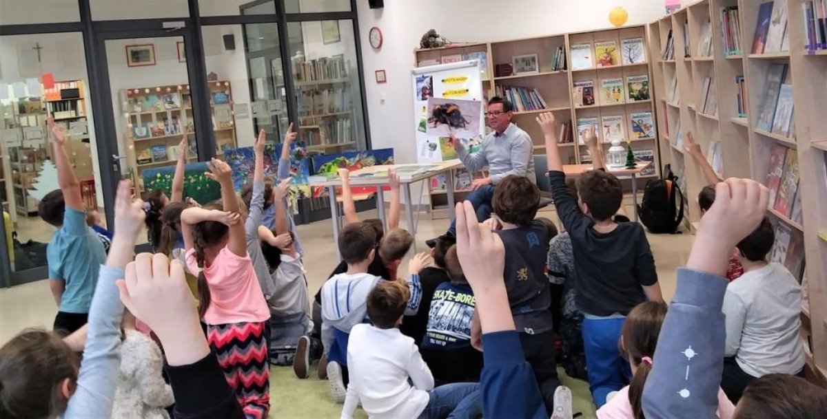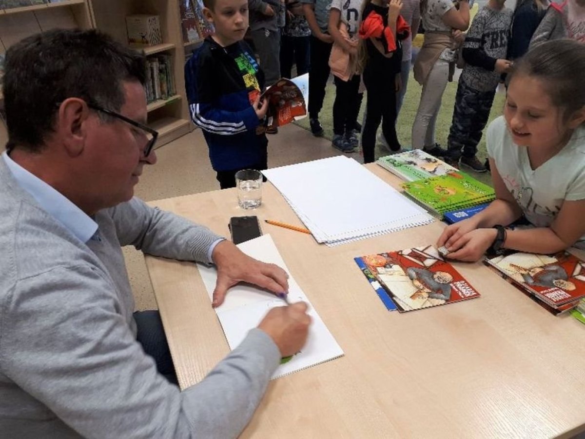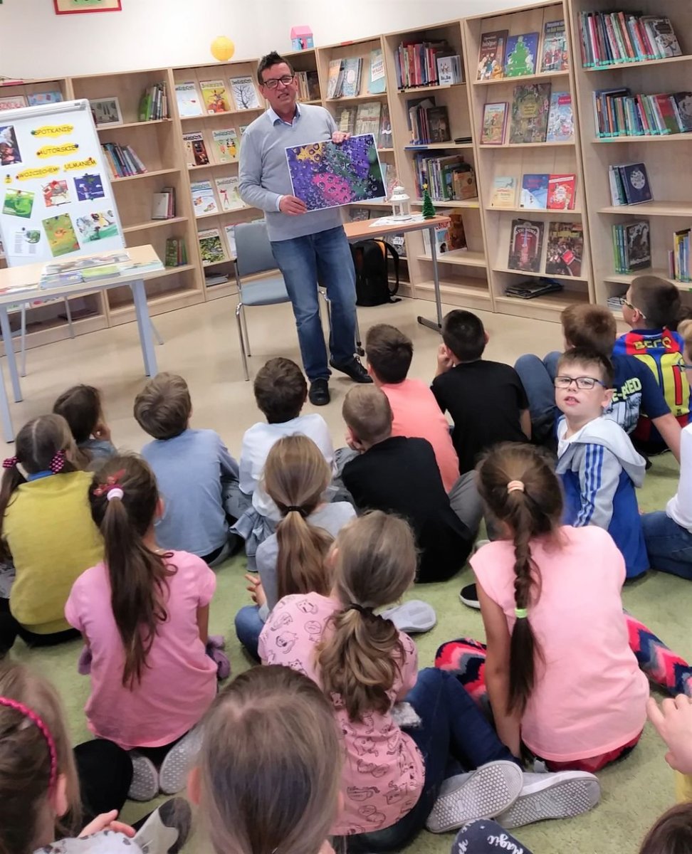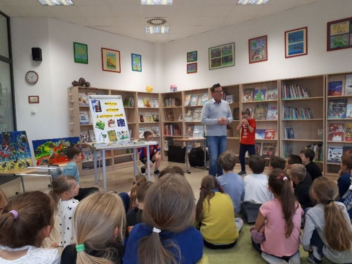 W dniu 10 grudnia 2019r w bibliotece szkolnej odbyło się spotkanie autorskie z regionalnym pisarzem i artystą, fotografem, autorem książek dla dzieci (m.in. „Moje zwierzaki", „Ufoludki", „Małe piękne światy”) – Wojciechem Ulmanem. Na spotkanie zostali zaproszeni uczniowie klas 3c oraz 3e. Zgromadzeni uczestnicy mieli niepowtarzalną okazję poznać osobiście pisarza. Pan Wojciech Ulman na początku spotkania opowiedział o swojej drodze zawodowej i sposobie, w jaki rozpoczął przygodę z pisaniem książek do młodego czytelnika. Artysta pokazał i opowiedział dzieciom o swoich zdjęciach oraz obrazach, które poruszyły wyobraźnię uczestników spotkania. Uczniowie od razu zauważyli pasję z jaką pisarz opowiada o swoich dziełach i z zaciekawieniem wsłuchiwali się w jego opowiadania. Po zajęciach każde dziecko otrzymało książkę autorstwa Wojciecha Ulmana wraz z dedykacją oraz autografem.