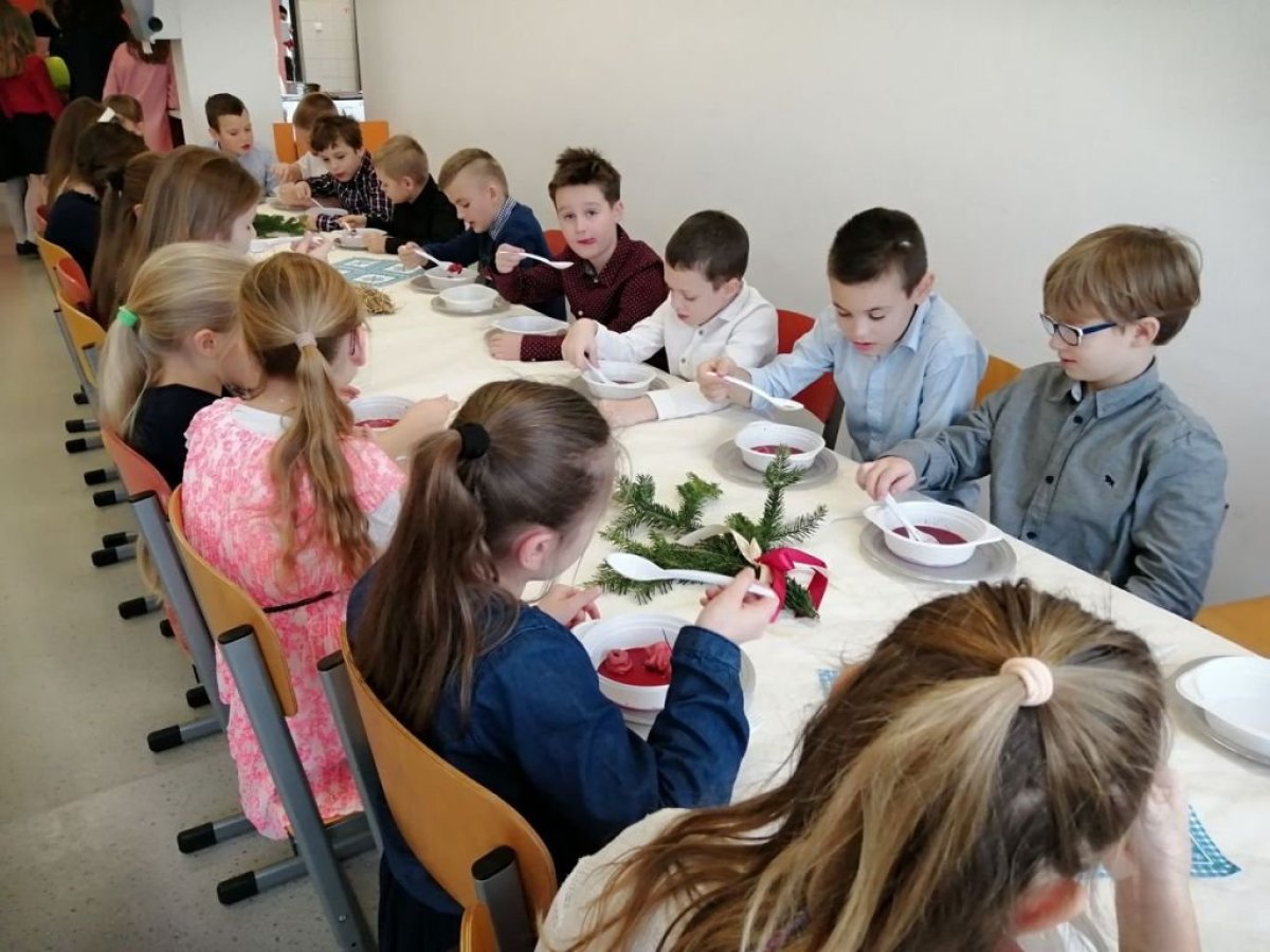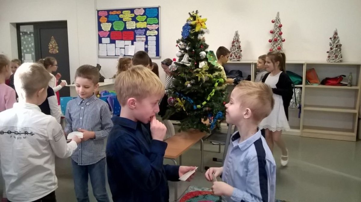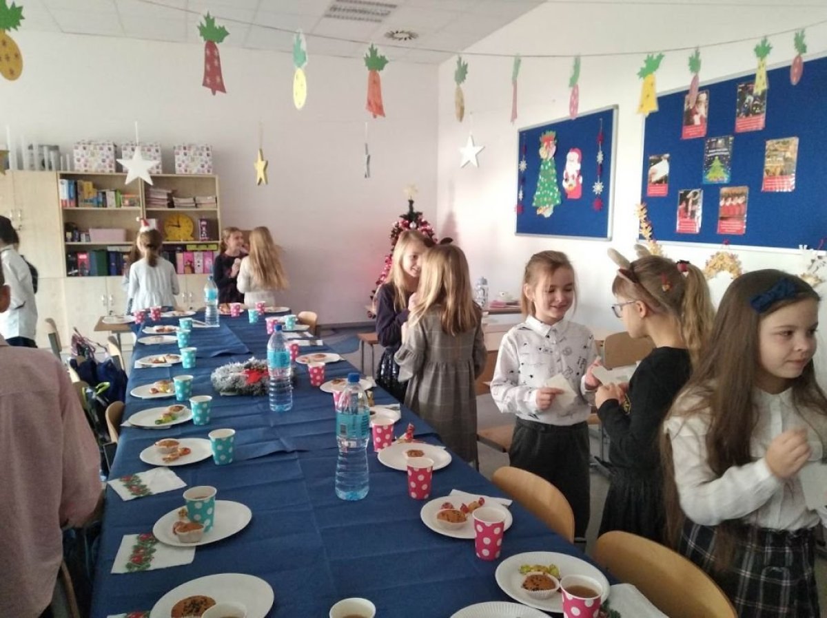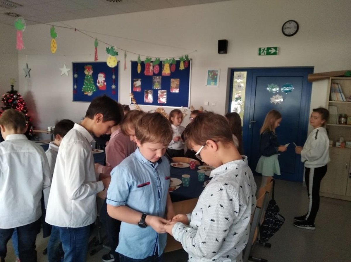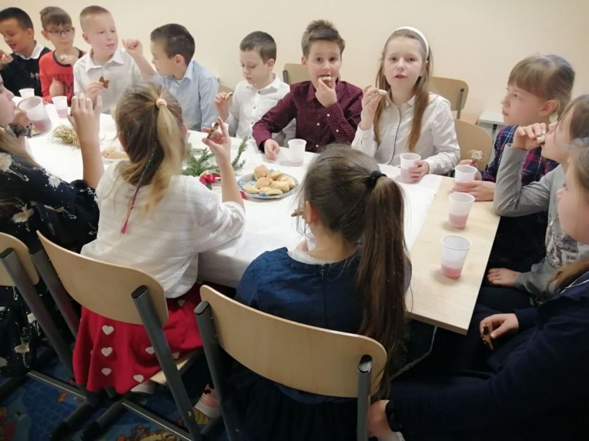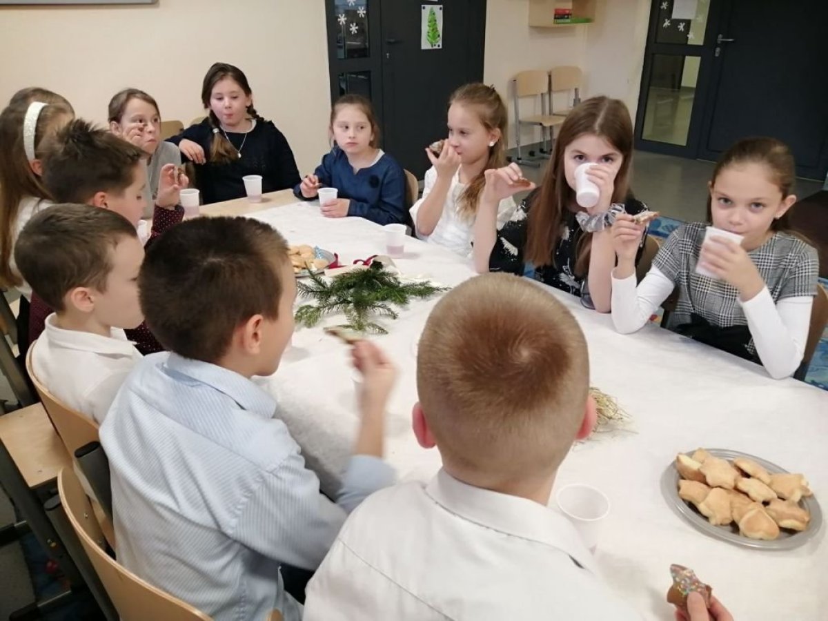 Zgodnie z tradycją naszej szkoły przed świętami Bożego Narodzenia uczniowie spotkali się na klasowych wigiliach. We wszystkich klasach panował świąteczny nastrój. Dzieci podzieliły się opłatkiem, złożyły sobie wzajemnie życzenia, a następnie degustowalły wigilijne potrawy. Wspólne śpiewanie kolęd uprzyjemniło ten wyjątkowy czas.