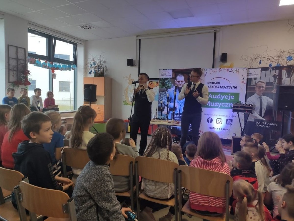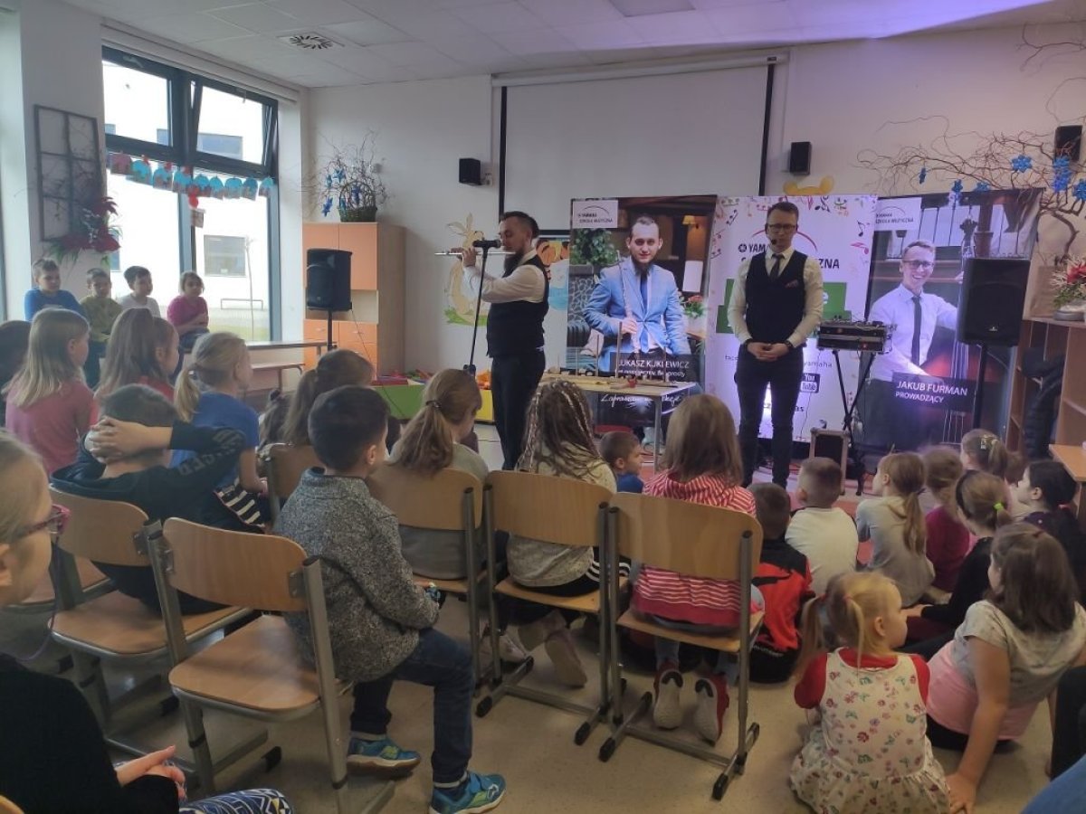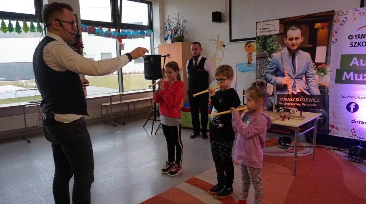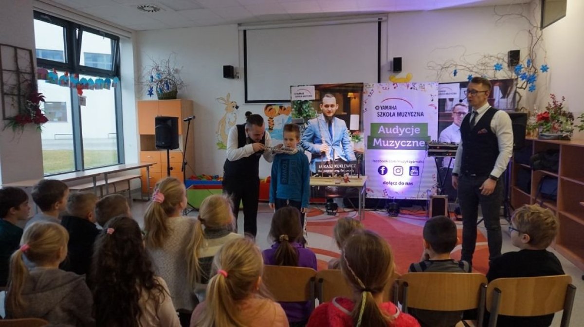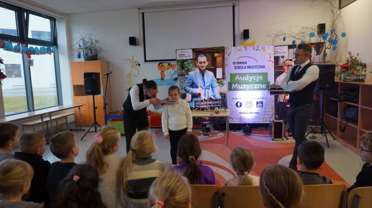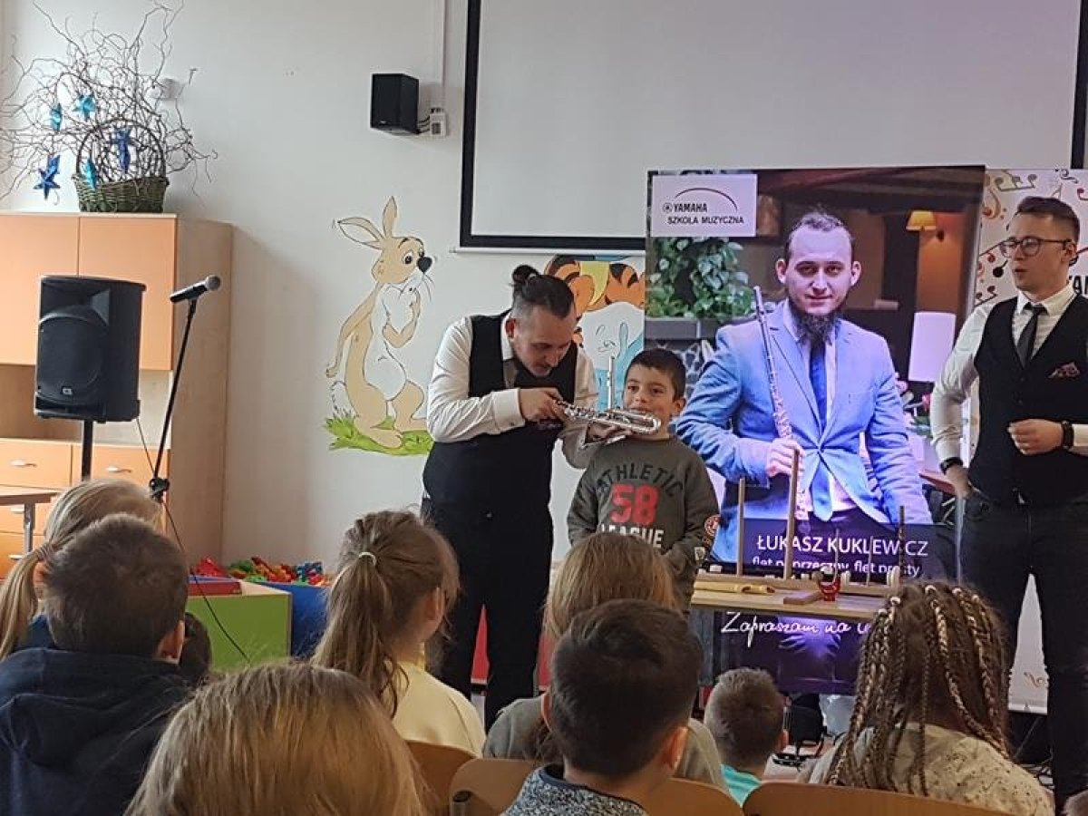 28 stycznia 20120r. po raz kolejny odwiedziła nas szkoła muzyczna Yamaha. Uczniowie z wielkim zaciekawieniem czekali na rozpoczęcie zajęć. Tym razem Yamaha zapoznała nas z rodziną fletów- historią, pochodzeniem, a także z różnymi rodzajami tego ciekawego instrumentu. Dzieci poznały budowę fletu i tajniki gry na nim. Kilka osób miało okazję wypróbować swoje muzyczne umiejętności. Czas spędzony ze szkołą muzyczną Yamaha był jak zwykle nie tylko skarbnicą wiedzy, ale także potężna dawką dobrego humoru.