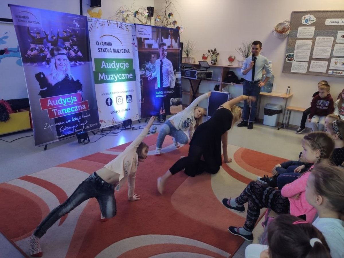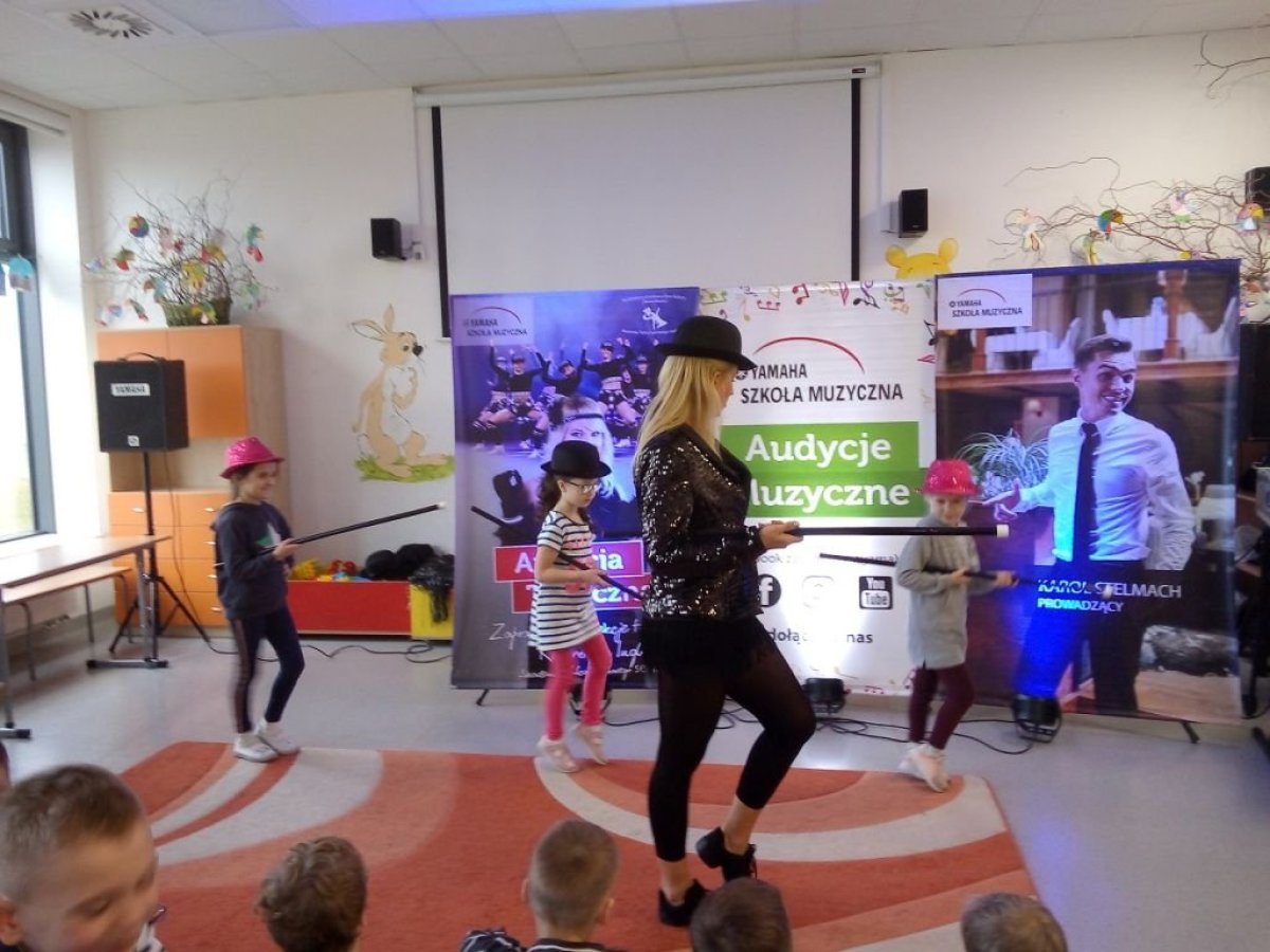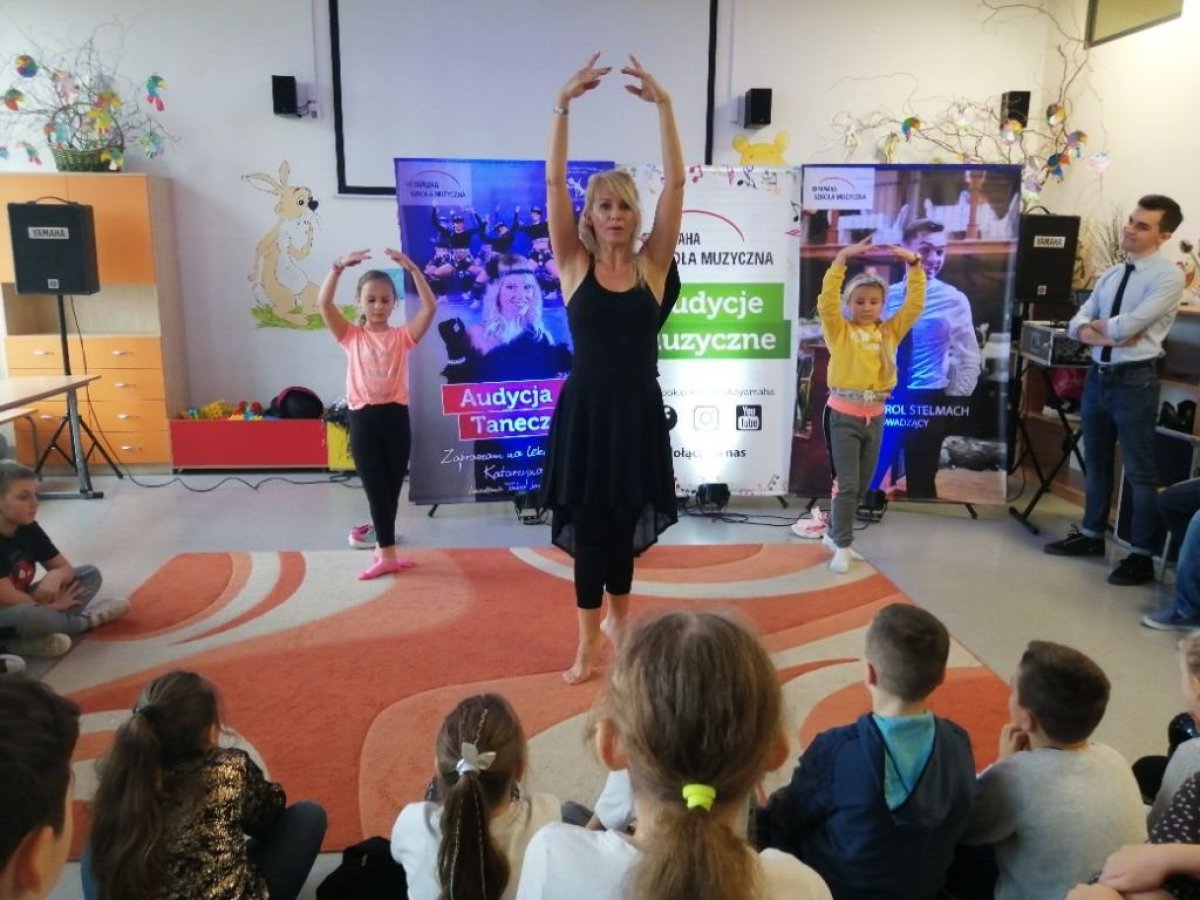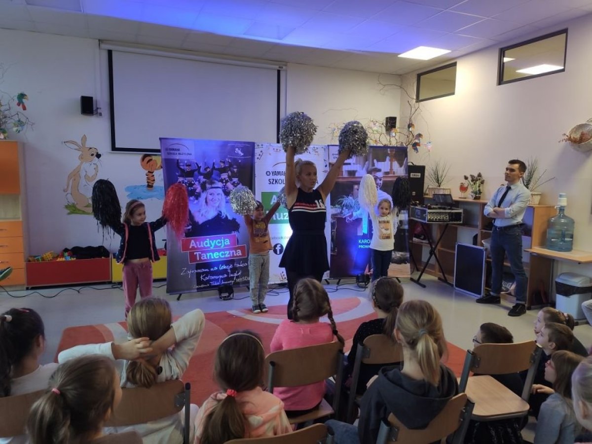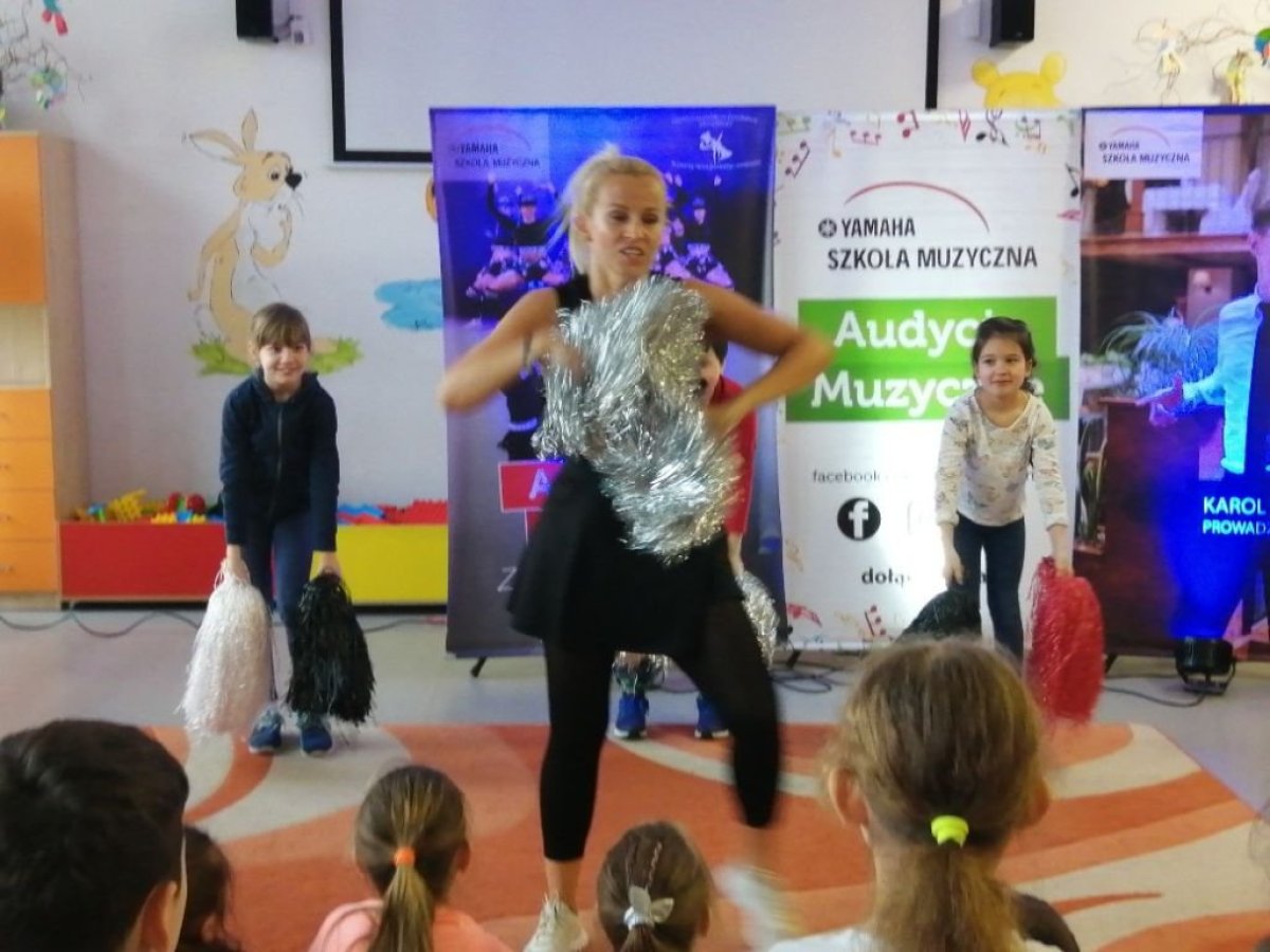 W dniu 2 marca 2020r. w naszej szkole odbyła się kolejna audycja prowadzona przez szkołę muzyczną YAMAHA. Podczas tej audycji uczniowie klas 1-3 zapoznali się z niektórymi rodzajami tańców współczesnych. Wśród nich pojawiły się takie jak: Reggaeton -jest to styl tańca wywodzący się z Puerto Rico, tańczony głównie do muzyki o tej samej nazwie oraz Afro jazz -czyli niezwykła kombinacja afrykańskiego folkloru i jazzowych podstaw. Kolejne tańce to: Modern jazz- najnowsza forma jazzu, obecnie najpopularniejsza wśród tancerzy na świecie a także Broadway Jazz, który wywodzi się z amerykańskiego tańca scenicznego i estradowego. Jest on kompilacją tańca jazzowego, swingu, country, rytmów karaibskich. Jest typowy dla teatrów i kabaretów na Broadwayu. Dodatkowo prowadząca przedstawiła uczniom taniec zwany Latin Jaz, który zawiera wiele gorących rytmów latynoamerykańskich: SALSĘ, SAMBĘ, CHA-CHĘ, MAMBĘ, MERENGUE, ROCK, RUMBĘ, BACHATĘ. Największą popularność wśród uczniów podczas pokazów zyskał taniec Cheer dance, znany również jako cheerleading, gdzie tworzy się choreografię taneczną łącząc ją z elementami gimnastyki i akrobatyki. Chętni mogli sami zatańczyć krótki układ z użyciem pomponów.