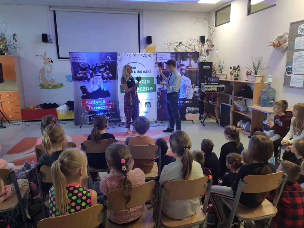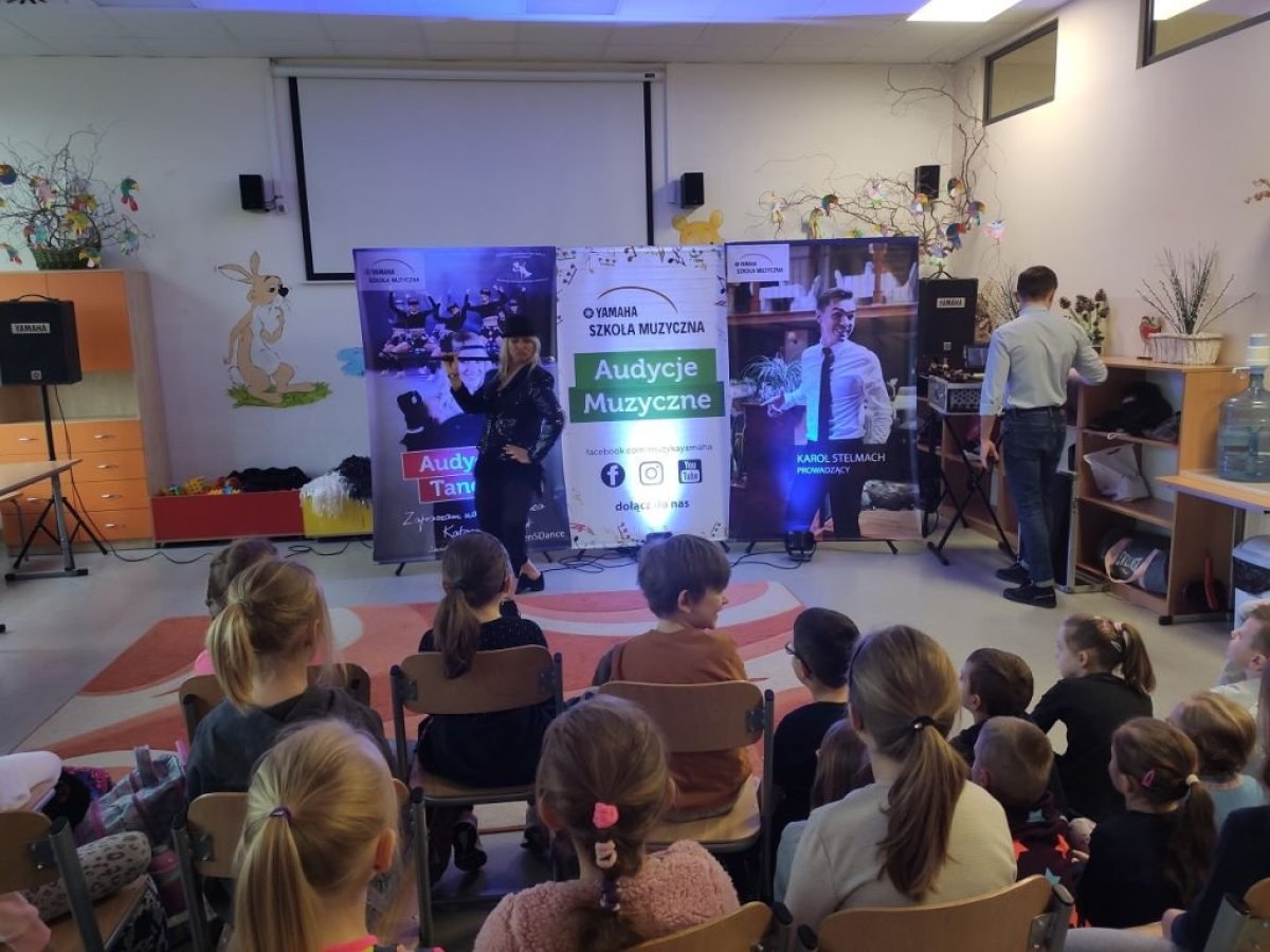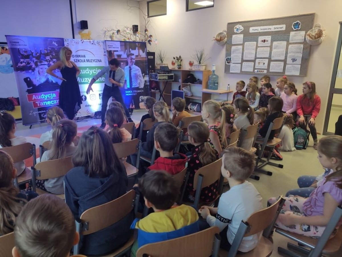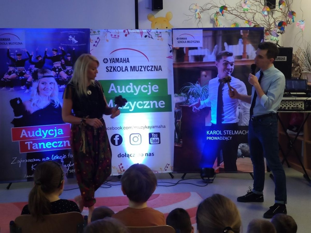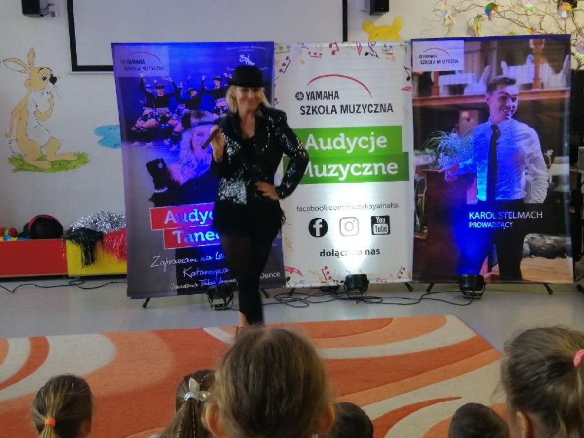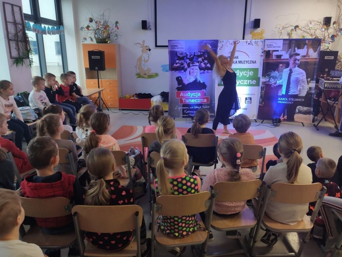W dniu 2 marca 2020r. w naszej szkole odbyła się kolejna audycja prowadzona przez szkołę muzyczną YAMAHA. Podczas tej audycji uczniowie klas 1-3 zapoznali się z niektórymi rodzajami tańców współczesnych. Wśród nich pojawiły się takie jak: Reggaeton -jest to styl tańca wywodzący się z Puerto Rico, tańczony głównie do muzyki o tej samej nazwie oraz Afro jazz -czyli niezwykła kombinacja afrykańskiego folkloru i jazzowych podstaw. Kolejne tańce to: Modern jazz- najnowsza forma jazzu, obecnie najpopularniejsza wśród tancerzy na świecie a także Broadway Jazz, który wywodzi się z amerykańskiego tańca scenicznego i estradowego. Jest on kompilacją tańca jazzowego, swingu, country, rytmów karaibskich. Jest typowy dla teatrów i kabaretów na Broadwayu. Dodatkowo prowadząca przedstawiła uczniom taniec zwany Latin Jaz, który zawiera wiele gorących rytmów latynoamerykańskich: SALSĘ, SAMBĘ, CHA-CHĘ, MAMBĘ, MERENGUE, ROCK, RUMBĘ, BACHATĘ. Największą popularność wśród uczniów podczas pokazów zyskał taniec Cheer dance, znany również jako cheerleading, gdzie tworzy się choreografię taneczną łącząc ją z elementami gimnastyki i akrobatyki. Chętni mogli sami zatańczyć krótki układ z użyciem pomponów.
