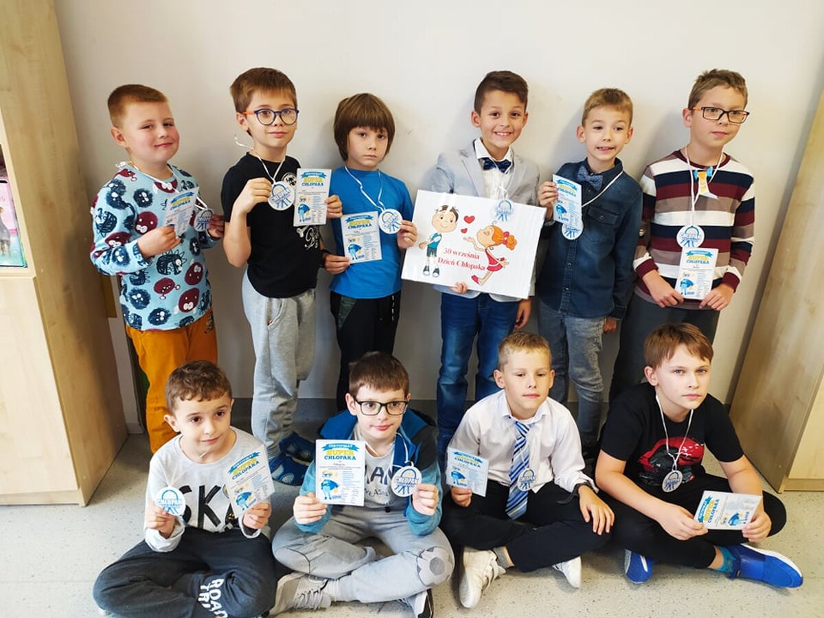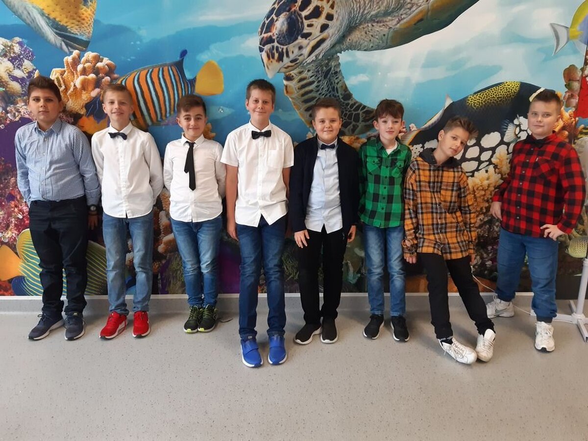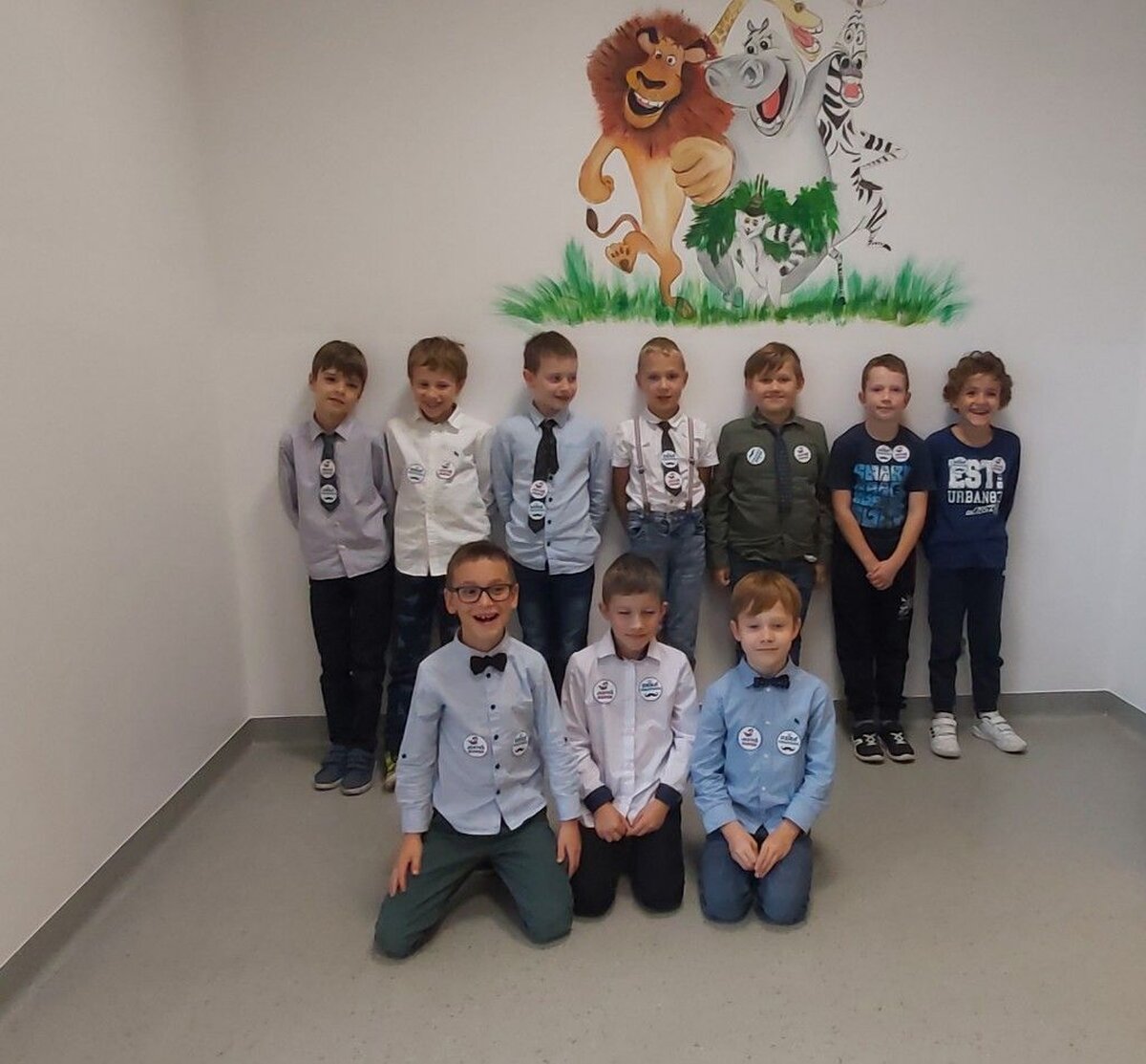 Dzień Chłopaka w szkole obchodziliśmy i przystojniaków podziwialiśmy, w koszule, krawaty i muchy przyszli ubrani, bo bardzo chcieli nie być pytani. Marzenia ich spełniliśmy i od pytania uwolniliśmy, a młodszym naszym dżentelmenom pochwałę w dziennik wpisaliśmy.