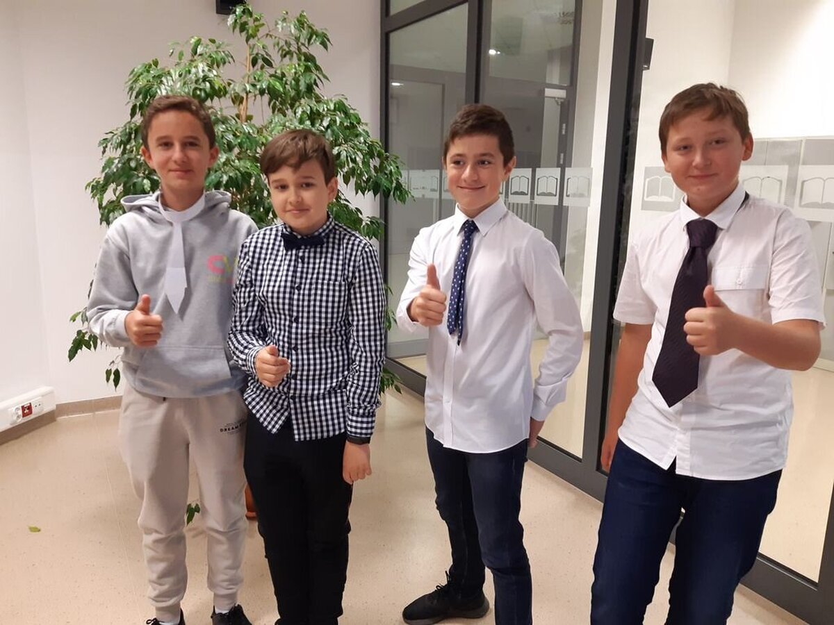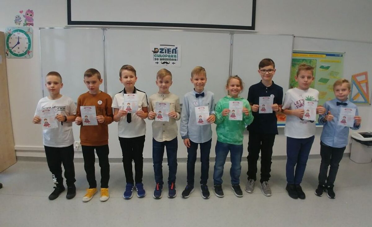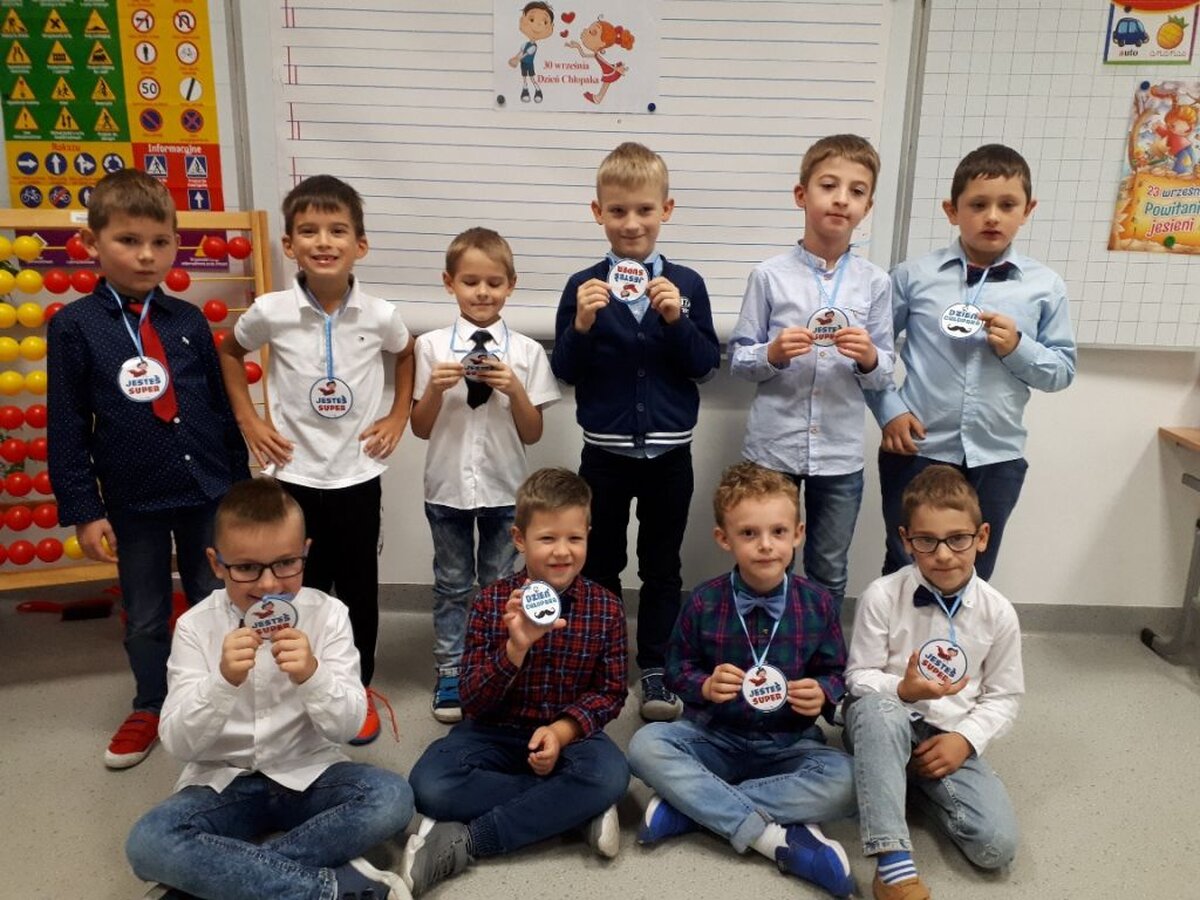 Dzień Chłopaka w szkole obchodziliśmy i przystojniaków podziwialiśmy, w koszule, krawaty i muchy przyszli ubrani, bo bardzo chcieli nie być pytani. Marzenia ich spełniliśmy i od pytania uwolniliśmy, a młodszym naszym dżentelmenom pochwałę w dziennik wpisaliśmy.