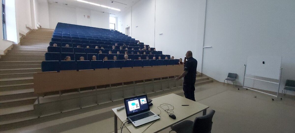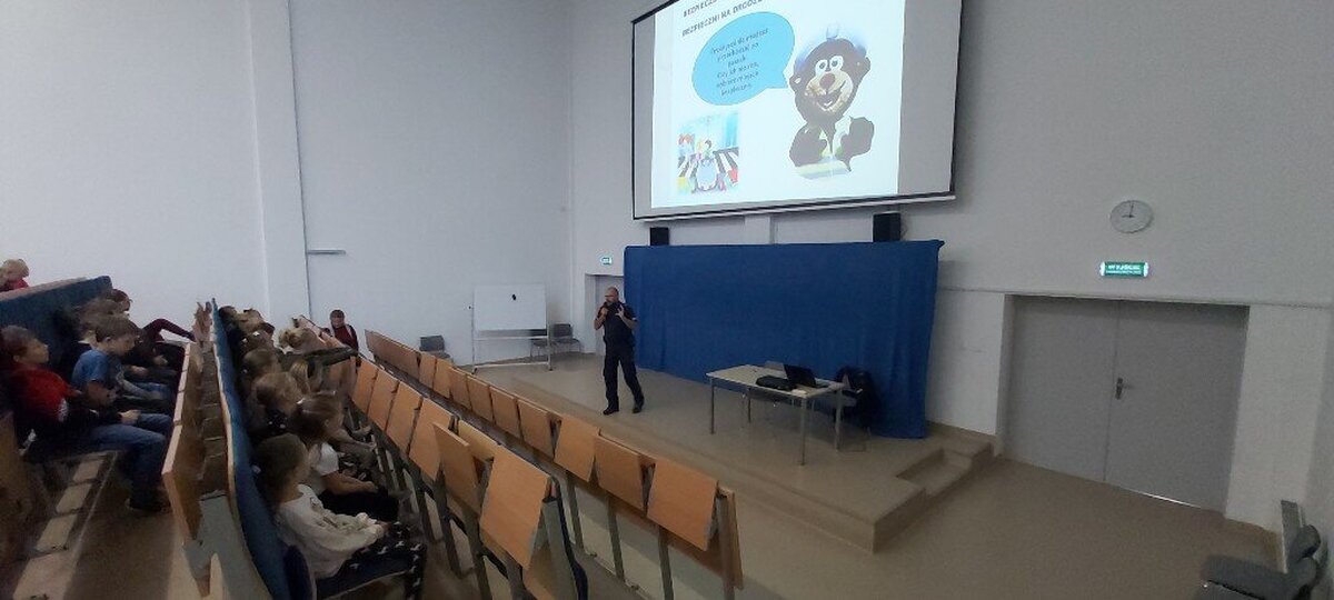 12 października 2021r. uczniowie klas pierwszych uczestniczyli w spotkaniu z dzielnicowym Komisariatu Policji II w Rzeszowie st. asp. Panem Albertem Gawłem. Policjant opowiedział o bezpieczeństwie na drodze, ale także o innych zagrożeniach czyhających na dzieci. Przestrzegał m.in. przed kontaktami z nieznajomymi, zarówno na co dzień, jak i w sieci. Na zakończenie chętni uczniowie mogli zadać Panu Albertowi pytania. To było bardzo ciekawe i pouczające spotkanie.
