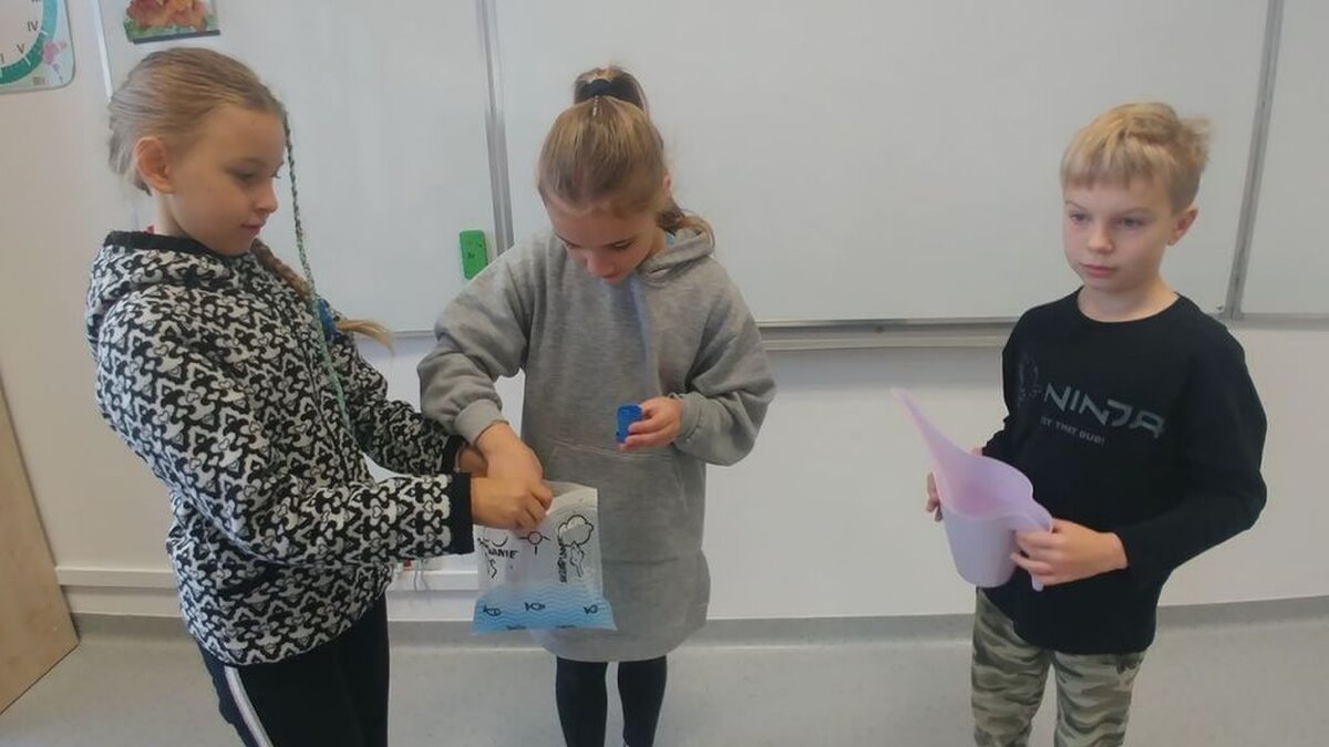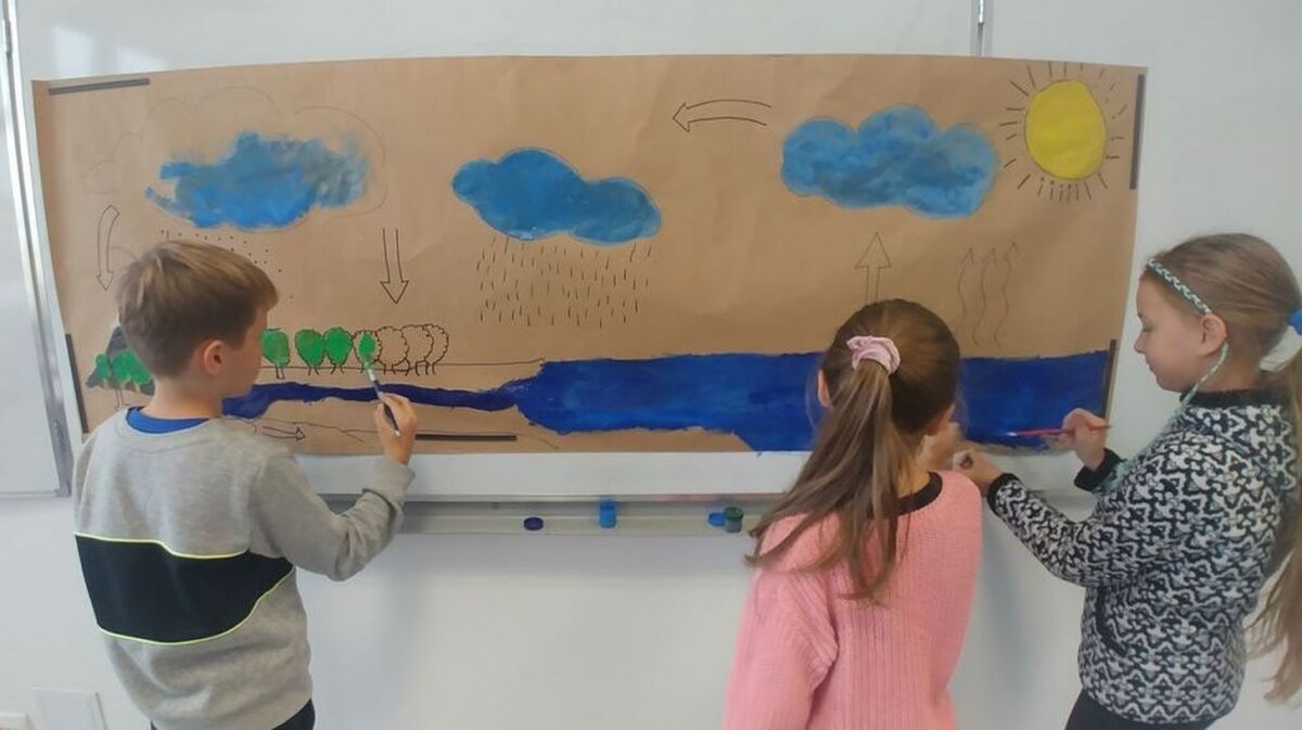 Uczniowie klasy 3b uczestniczyli w realizacji Ogólnopolskiego Projektu Ekologicznego pod hasłem „Z ekologią na ty”. Tematyka zajęć związana była z krążeniem wody w przyrodzie. Na wstępie uczniowie obejrzeli film pt. „Woda krąży-woda wraca”. Następnie przygotowali prosty model obiegu wody w przyrodzie, który obserwowali przez kilka dni. Dodatkowo zbadali jak na obieg wody wpływają różne czynniki. W kolejnej części wykonali interaktywną ilustrację dzięki, której utrwalili poznane wiadomości. Na podsumowanie zajęć wykonali plakat dotyczący treści zajęć.