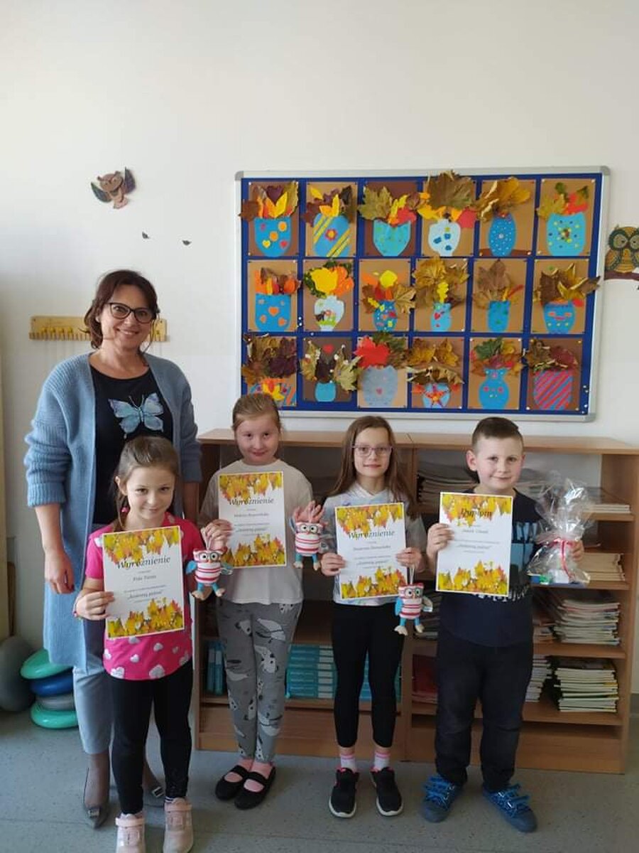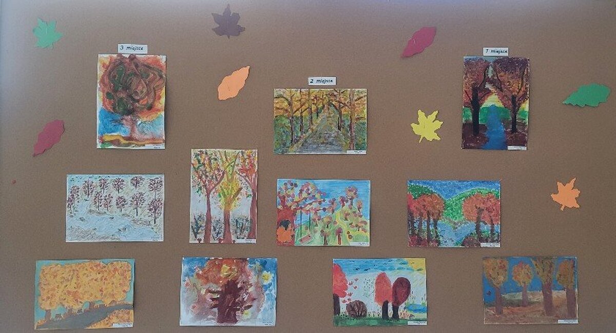 27 października 2021 roku odbyło się rozstrzygnięcie konkursu plastycznego „Jesienny pejzaż”, w którym wzięli udział uczniowie klas 1-3. Celem konkursu było kształtowanie wrażliwości na piękno przyrody, rozwijanie zainteresowań artystycznych uczniów oraz doskonalenie umiejętności malowania pastelami i farbami. Otrzymaliśmy piękne prace, pomysłowość oraz kreatywność uczestników konkursu była zachwycająca.