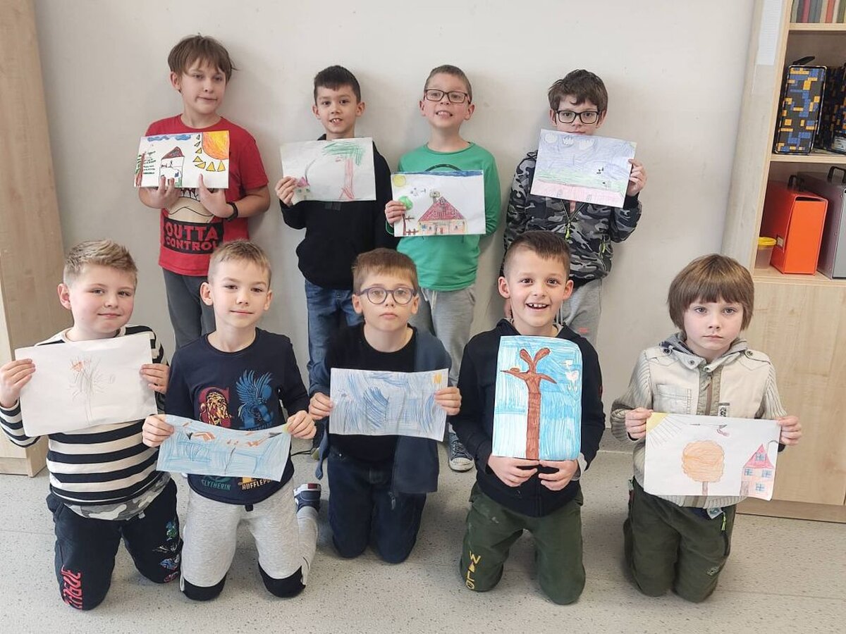 Na koniec zajęć dzieci wykonały prace plastyczne związane z opowiadaniem.