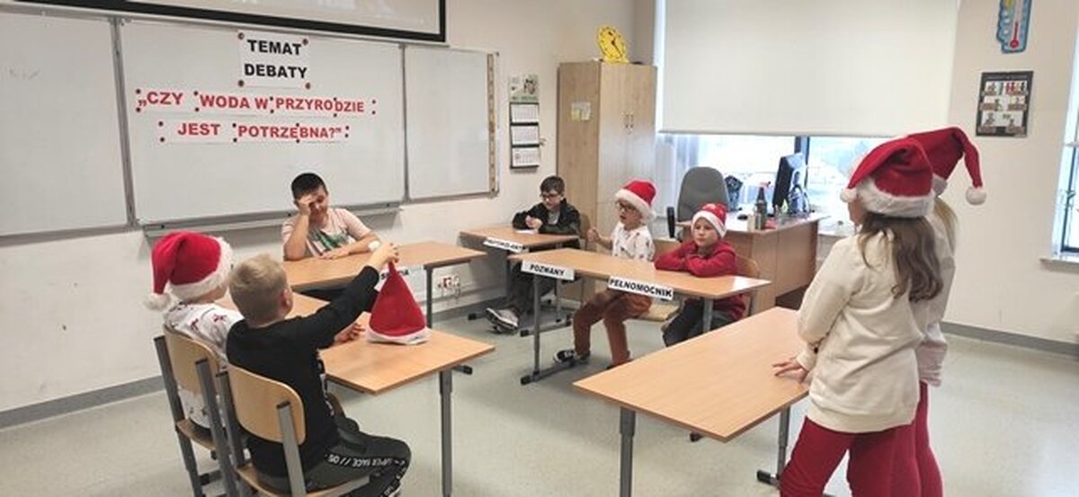 W ramach programu ekologicznego pod hasłem „Z ekologią na Ty” uczniowie klasy 3c uczestniczyli w debacie, na której dyskutowano o roli wody w przyrodzie. Po burzliwym przebiegu debaty, przedstawieniu wielu argumentów obydwie strony zgodnie przyznały, że woda odgrywa ogromną rolę w przyrodzie i jest niezbędna do procesów życiowych organizmów żywych i roślin.