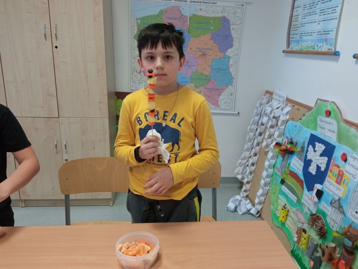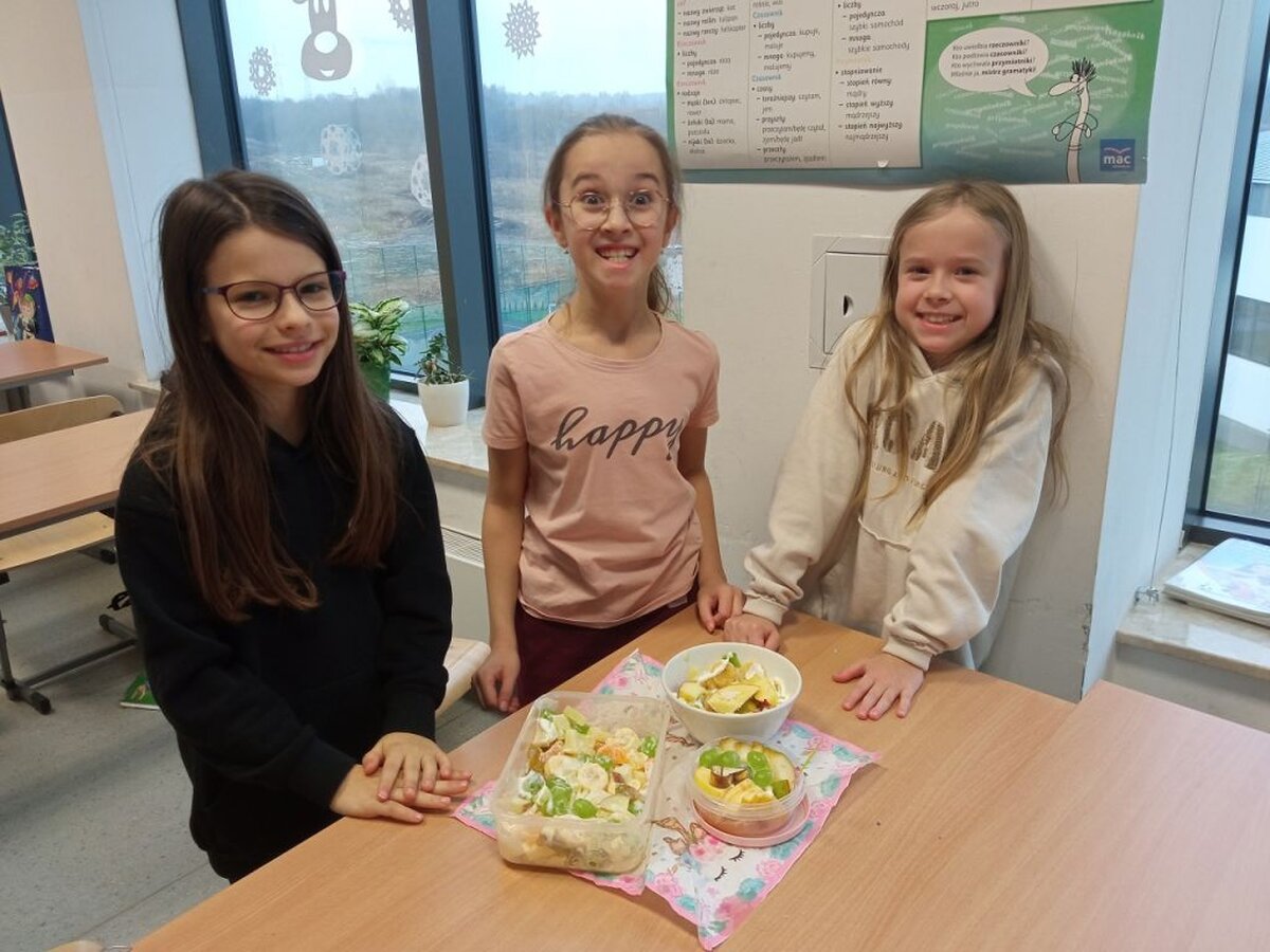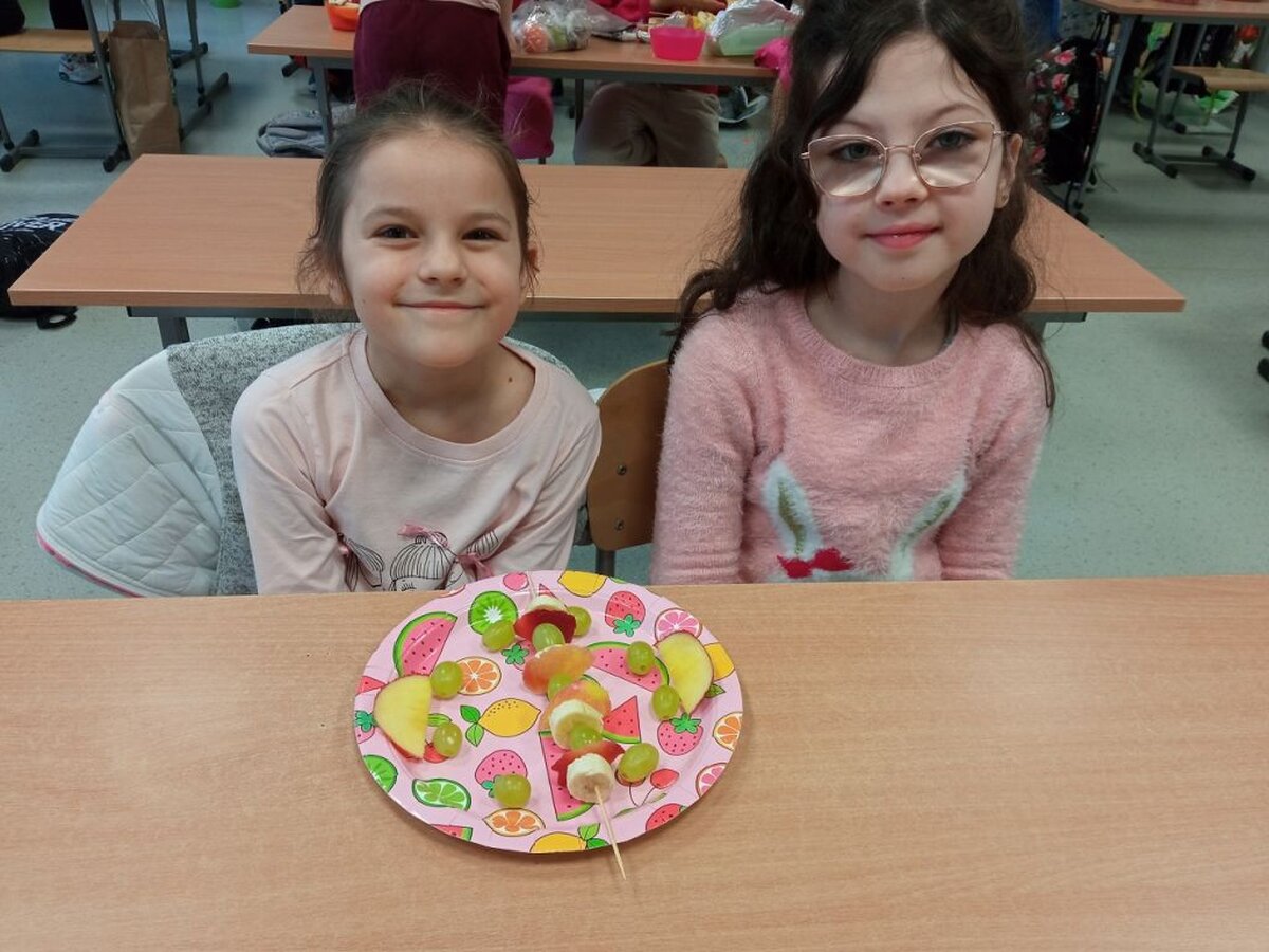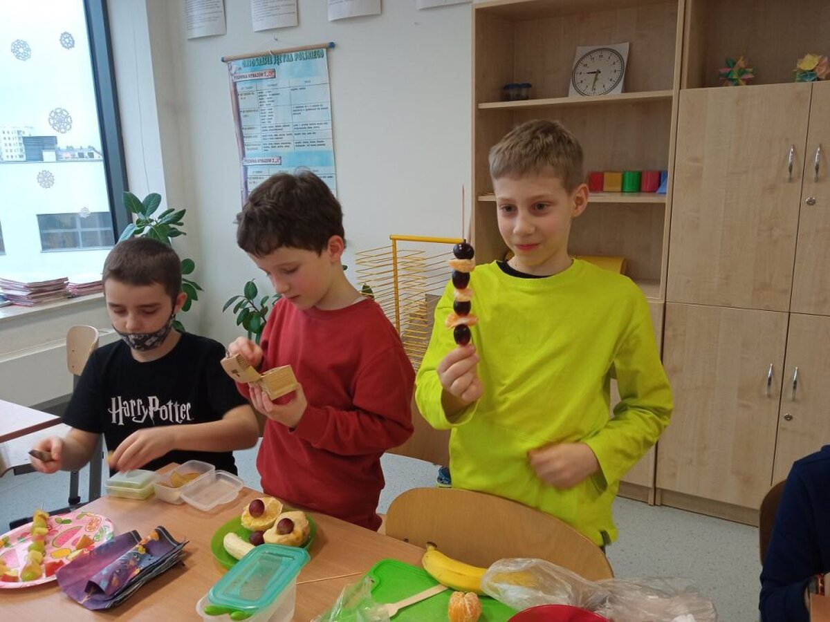 W ramach ogólnopolskiego projektu „Z ekologią na Ty” klasa 3e zorganizowała Dzień Zdrowego Śniadania. Uczniowie wykonali własnoręcznie zdrowe przekąski z owoców i warzyw w formie sałatek i szaszłyków. Dzięki lekcji uczniowie zwiększyli świadomość na temat zdrowego odżywiania oraz roli śniadania w codziennej diecie, jak również ćwiczyli samodzielność podczas przygotowywania posiłku. Na koniec lekcji dzieci ze smakiem zjadły zdrowe pyszności.