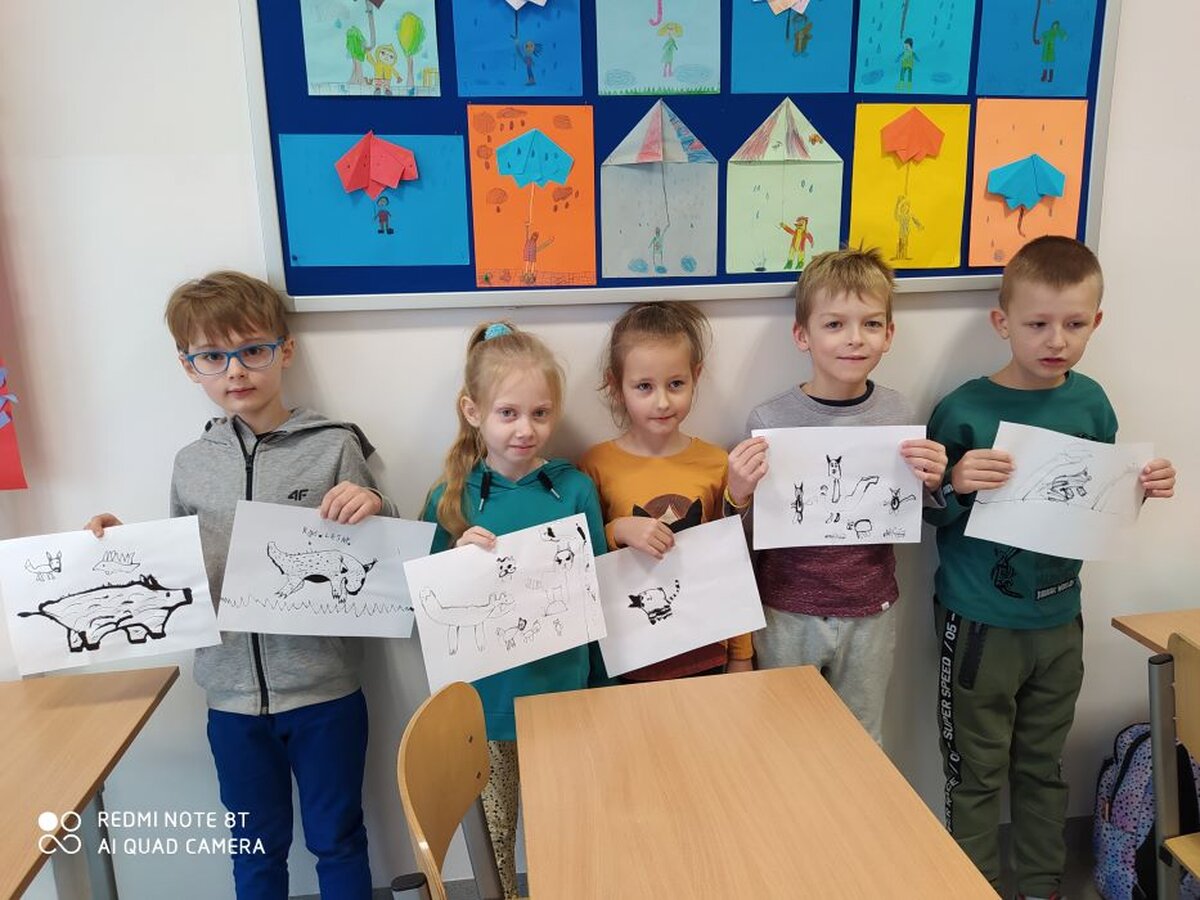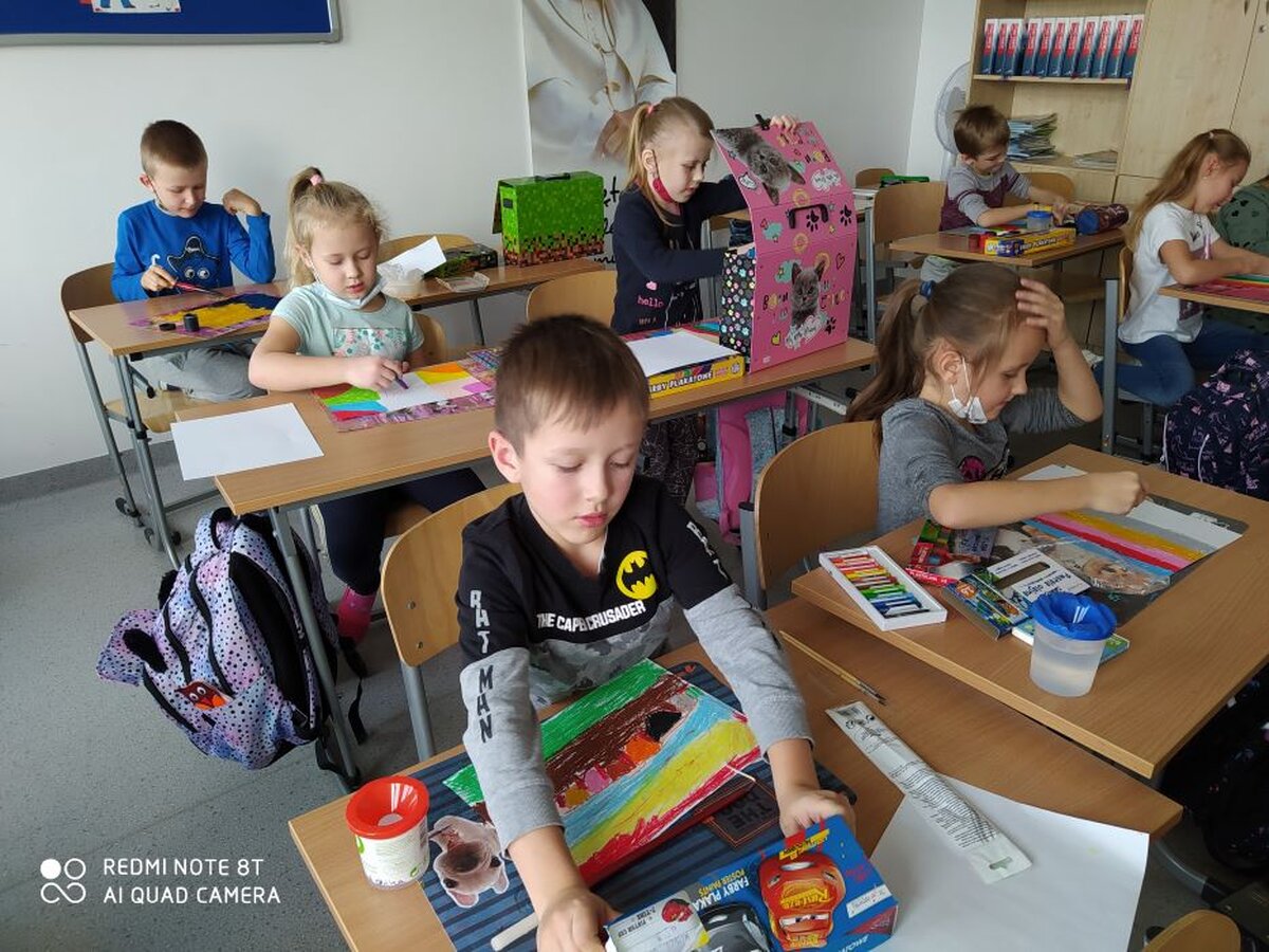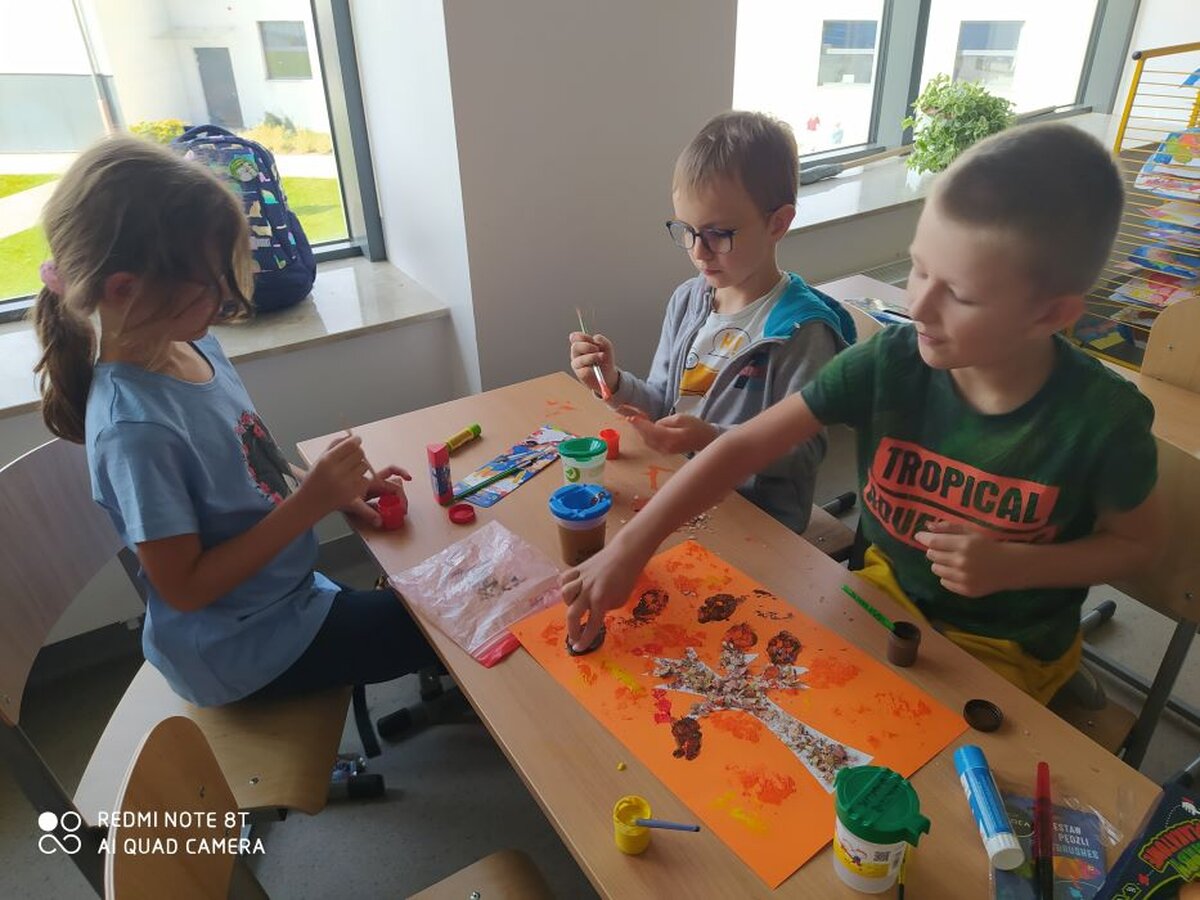 „Kolorowy świat małych artystów” to program plastyczny, w którym uczestniczą uczniowie klasy 1d w roku szkolnym 2021/2022 w formie dodatkowych zajęć pozalekcyjnych. Założeniem programu jest rozwijanie zainteresowań plastyczno-technicznych dzieci, ich zdolności oraz wyzwalanie ekspresji twórczej. Zajęcia te wpływają na ogólny rozwój osobowości ucznia, rozwijają jego wrażliwość i spostrzegawczość. Dają dziecku radość, wzmacniają poczucie własnej wartości., kształtują umiejętność współdziałania w grupie. Poprzez swoją różnorodność (klejenie, wycinanie, malowanie pastą do zębów, rysowanie tuszem, świecą, stemplowanie, wydrapywanie) poprawiają sprawność manualną. W ramach programu w pierwszym semestrze uczniowie przygotowali następujące prace: „Jesienne drzewa” , „Zwierzęta leśne”, „Zakładkę do książki”, „Kukiełki”, „Świat figur i linii”, „Świąteczne ozdoby doniczkowe” oraz „Zimowy pejzaż”.