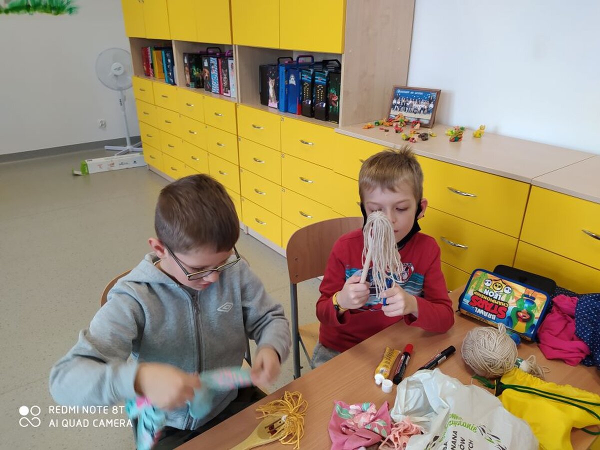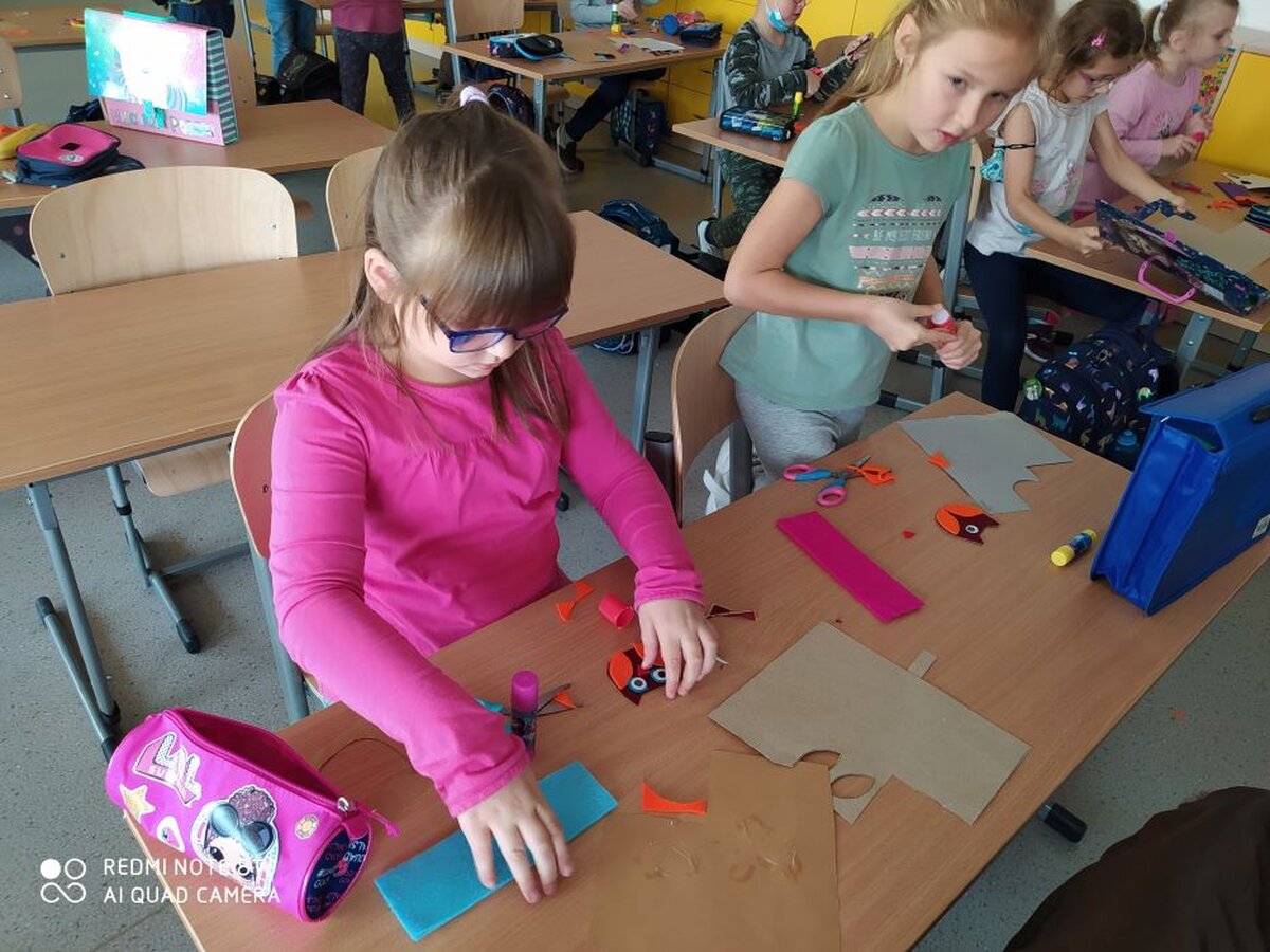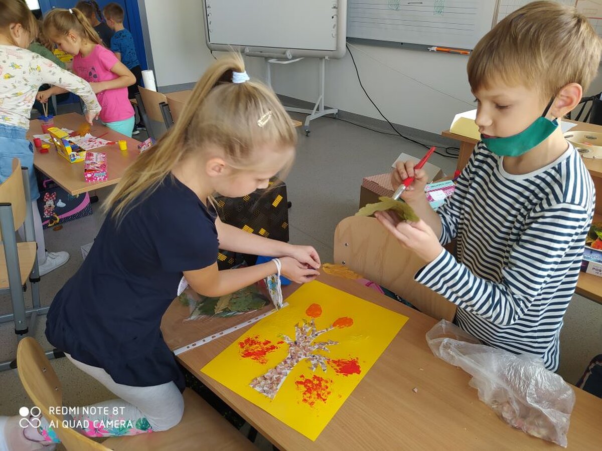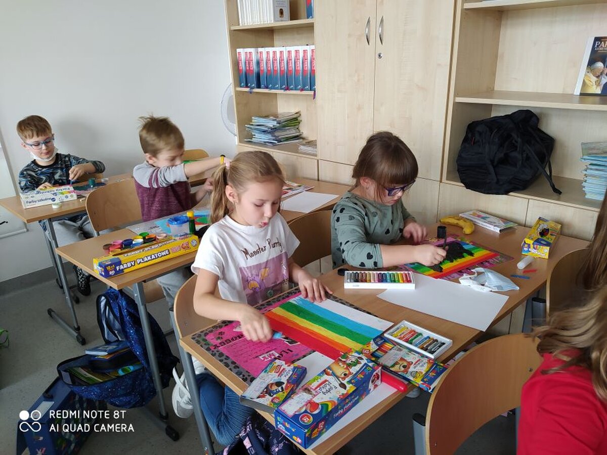 „Kolorowy świat małych artystów” to program plastyczny, w którym uczestniczą uczniowie klasy 1d w roku szkolnym 2021/2022 w formie dodatkowych zajęć pozalekcyjnych. Założeniem programu jest rozwijanie zainteresowań plastyczno-technicznych dzieci, ich zdolności oraz wyzwalanie ekspresji twórczej. Zajęcia te wpływają na ogólny rozwój osobowości ucznia, rozwijają jego wrażliwość i spostrzegawczość. Dają dziecku radość, wzmacniają poczucie własnej wartości., kształtują umiejętność współdziałania w grupie. Poprzez swoją różnorodność (klejenie, wycinanie, malowanie pastą do zębów, rysowanie tuszem, świecą, stemplowanie, wydrapywanie) poprawiają sprawność manualną. W ramach programu w pierwszym semestrze uczniowie przygotowali następujące prace: „Jesienne drzewa” , „Zwierzęta leśne”, „Zakładkę do książki”, „Kukiełki”, „Świat figur i linii”, „Świąteczne ozdoby doniczkowe” oraz „Zimowy pejzaż”.