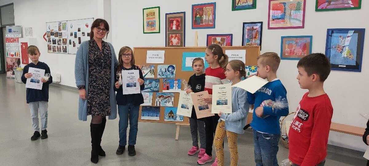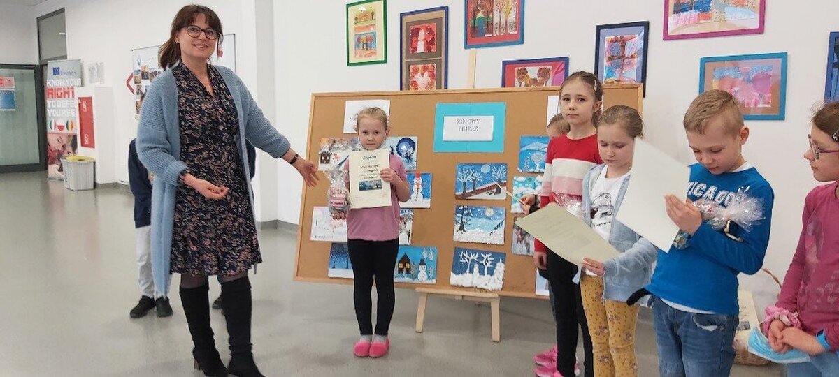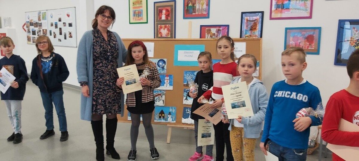 W dniu 10 lutego 2022r. odbyło się rozdanie nagród oraz dyplomów w szkolnym konkursie „Zimowy pejzaż”. Dziękujemy wszystkim uczestnikom za liczny udział w konkursie, a osobom nagrodzonym serdecznie gratulujemy i życzymy powodzenia w dalszym rozwijaniu swoich pasji. Zachęcamy wszystkich do obejrzenia wystawy pokonkursowej.