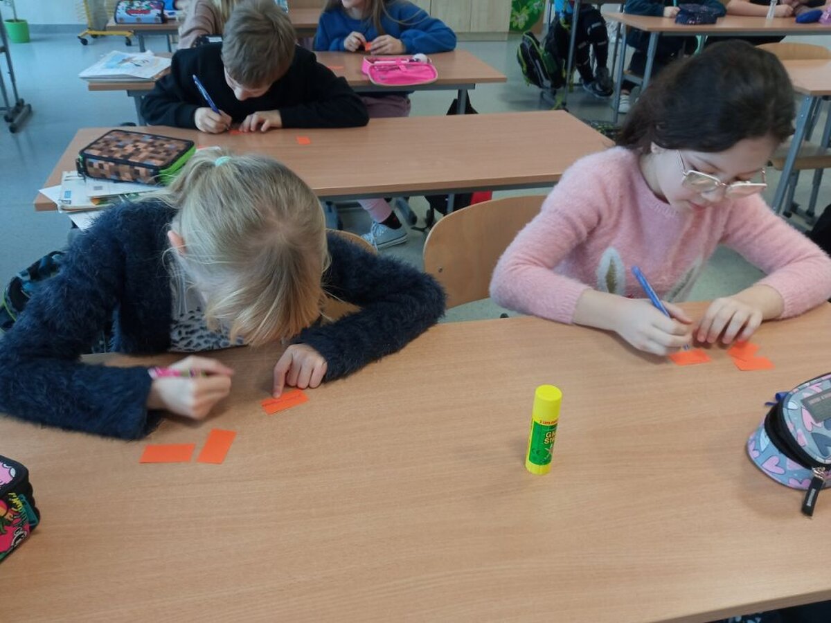 Bajka o małym kanczylu stała się punktem wyjścia do rozmowy o bogactwie i sile płynącej z różnorodności, poczuciu własnej wartości oraz szacunku do innych. Następnie uczniowie otrzymali karteczki – cegiełki, na których wpisywali swoje umiejętności i mocne strony. W dalszej części zajęć uczniowie naklejali cegiełki na kontur domu, który symbolizował klasę szkolną. Zadanie to miało na celu uzmysłowić dzieciom, że każdy wnosi coś od siebie do klasy, coś wyjątkowego i niepowtarzalnego. Każdy jest ważny i daje coś innym. Dzięki temu mamy razem wiele umiejętności i zawsze wspólnie możemy znaleźć rozwiązanie w trudnych sytuacjach. Na podsumowanie zajęć wspólnie zaśpiewaliśmy piosenkę „Lubię”, której tekst opowiada o podobieństwach i różnicach między ludźmi, zaś mottem kończącym lekcję było hasło: „Każdy z nas jest inny, ale tak samo wyjątkowy!”