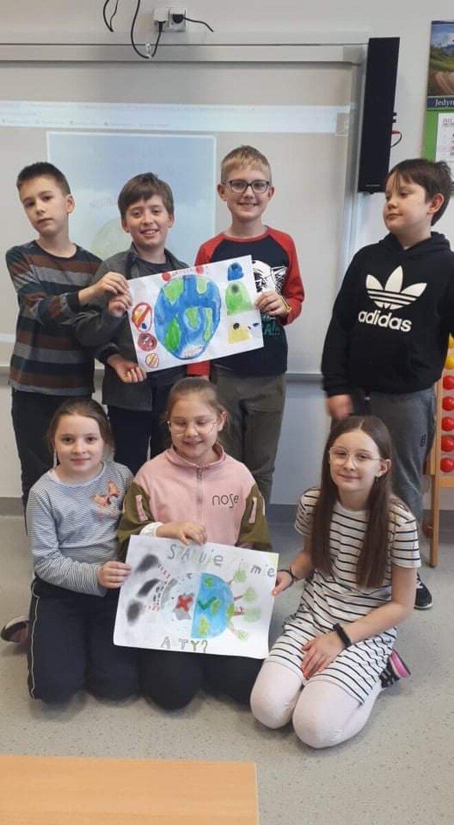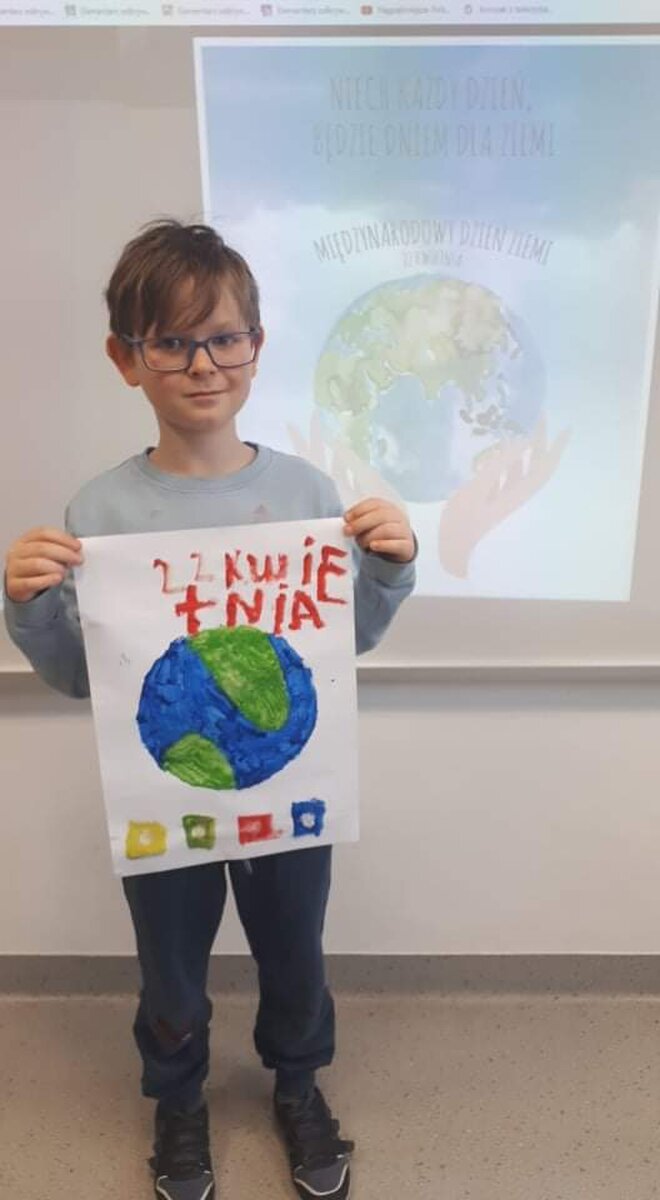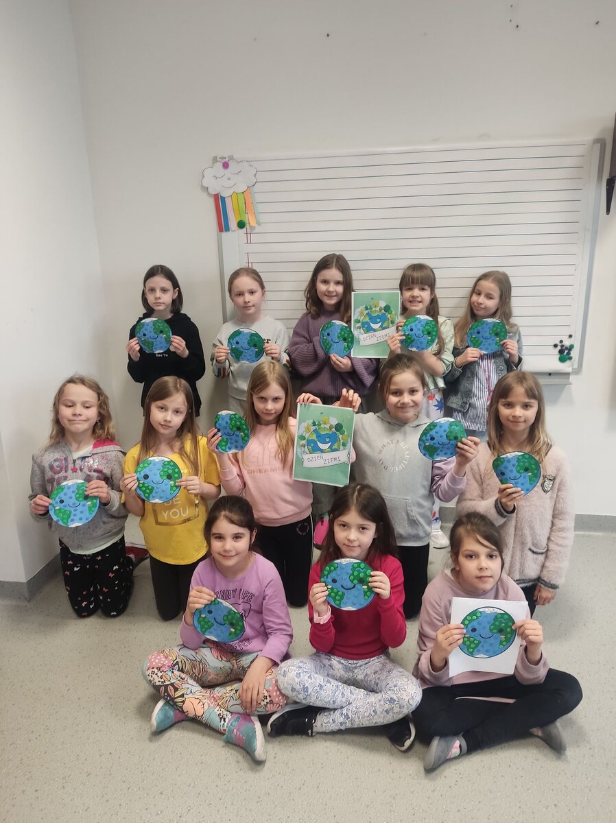 22 kwietnia obchodziliśmy Dzień Ziemi, nazywany także Międzynarodowym Dniem Ziemi, to coroczne wydarzenie obchodzone w celu promowania ochrony środowiska, poszerzania świadomości ekologicznej i inspirowania do życia w zgodzie z naturą. Coraz więcej osób zwraca uwagę na wpływ naszych wyborów i codziennych zachowań na środowisko. Jak wszyscy doskonale wiemy, Ziemia jest naszym domem o który należy dbać. Tego dnia podczas zajęć uczniowie opowiadali jak sami na co dzień stosują zachowania proekologiczne, mające na celu dbanie o Ziemię. Wyrazem tego zostały wykonane prace plastyczne oraz plakaty promujące ochronę środowiska.