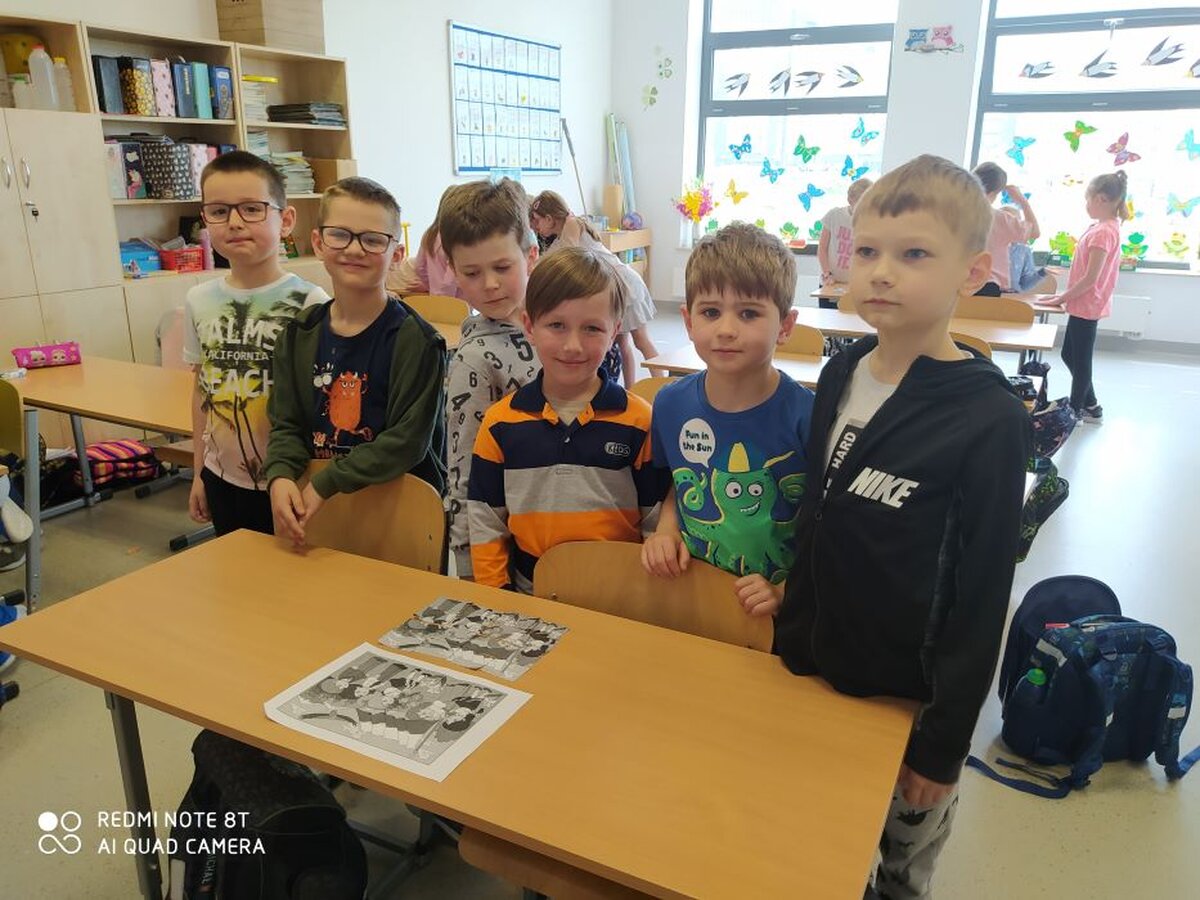 „Czapka, lama i kotomierz” to bajka, która wprowadza dzieci w świat rówieśnika z dysleksją rozwojową, pomaga poznać i zaakceptować inność. 6 maja 2022 r. uczniowie klasy 1d w ramach cyklu „Bajki bez barier” poznali historię Tomka, który nie mógł nauczyć się czytać i robił mnóstwo błędów w pisaniu. Kochał książki i nienawidził ich jednocześnie. Książka „Czapka, lama i kotomierz” prezentuje sylwetki sławnych ludzi, którym dysleksja nie przeszkodziła w osiągnięciu sukcesów naukowych, czy artystycznych. Po zapoznaniu się z książką, uczniowie wzięli udział w zabawach usprawniających funkcje znaczące dla opanowania umiejętności czytania i pisania ( układali puzzle, wyszukiwali różnice między obrazkami).