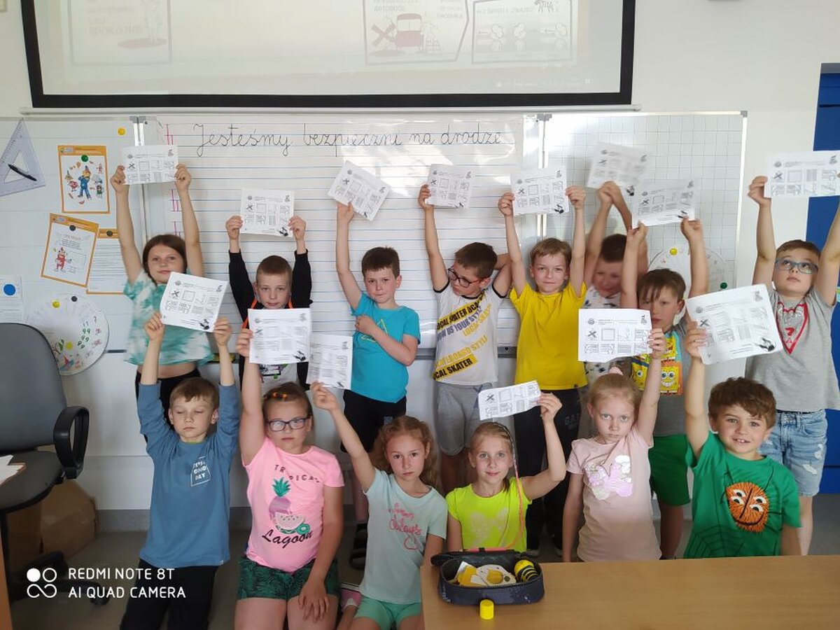 W ramach realizacji projektu „Akademia Bezpiecznego Puchatka” uczniowie klasy 1d poznali Puchatka i jego 5 przyjaciół, którzy mają za zadanie dbać o bezpieczeństwo wszystkich dzieci, zwłaszcza pierwszoklasistów. Podczas kilku lekcji uczniowie utrwalili zasady bezpiecznego zachowania się w szkole, na wycieczce, w różnych porach roku. Poznali także numery alarmowe. Dowiedzieli się, z czego składa się droga i jakie są zasady bezpiecznego zachowania się na niej. Oglądali filmy: „Jesteśmy bezpieczni w szkole i na wycieczce”, „Bezpieczeństwo na drodze”, „Bezpieczeństwo w domu”. Wysłuchali opowiadania o dzielnym Piotrusiu i jego piesku. Zostali zapoznani z podstawowymi czynnościami związanymi z pierwszą pomocą oraz instrukcją postępowania przy zgłaszaniu niebezpiecznej sytuacji. Na zakończenie uzupełnili karty pracy i wykonali koło fortuny.