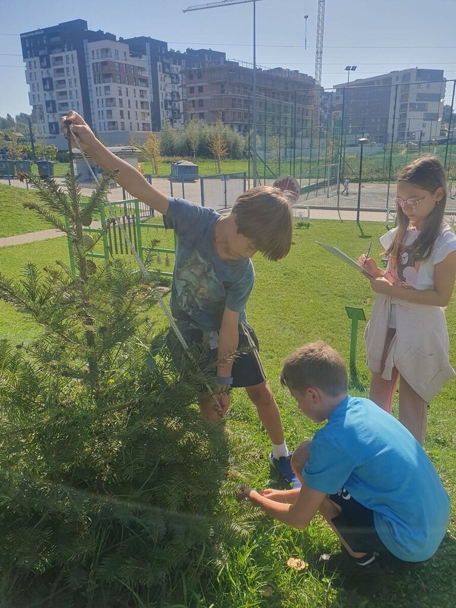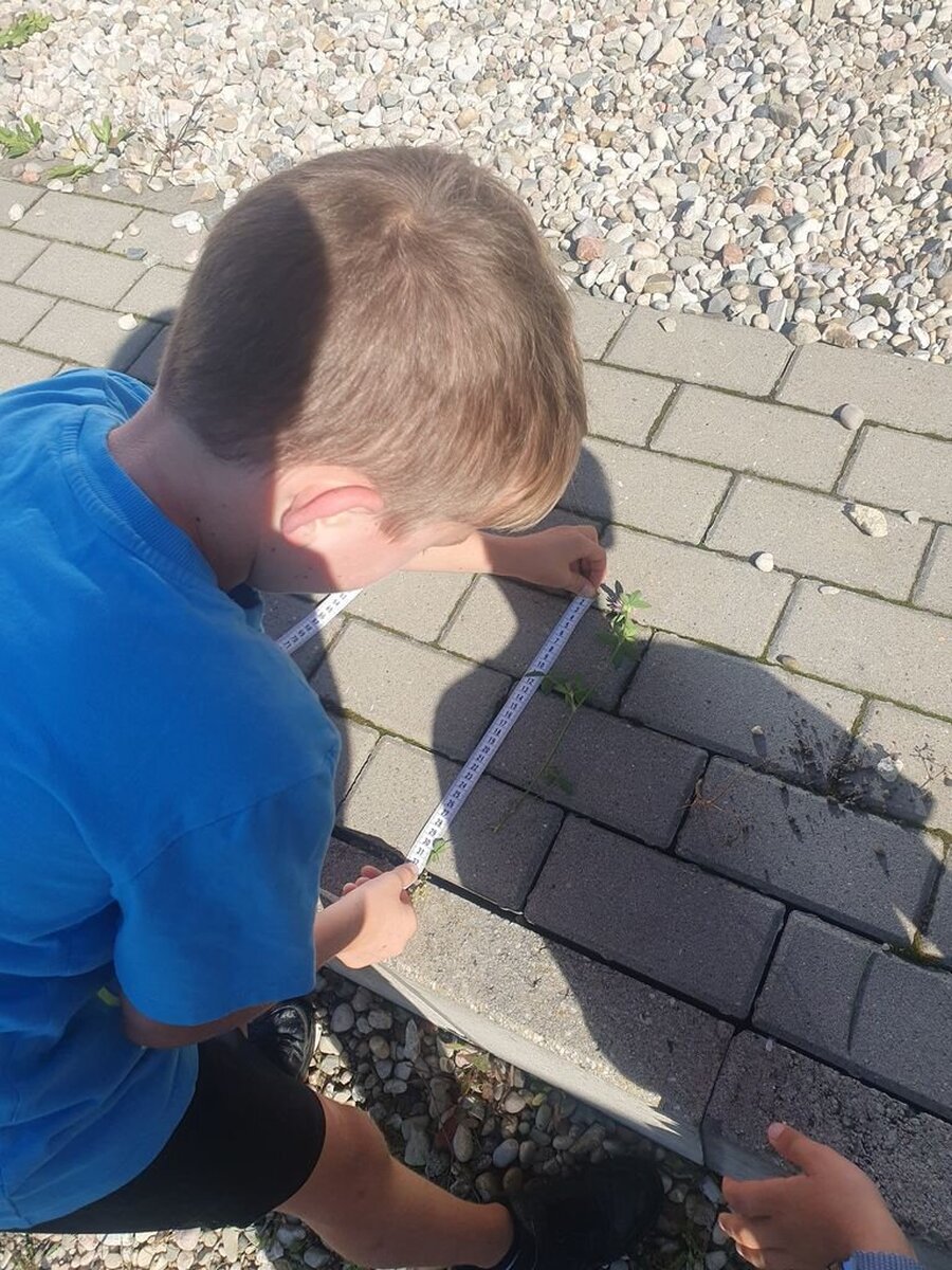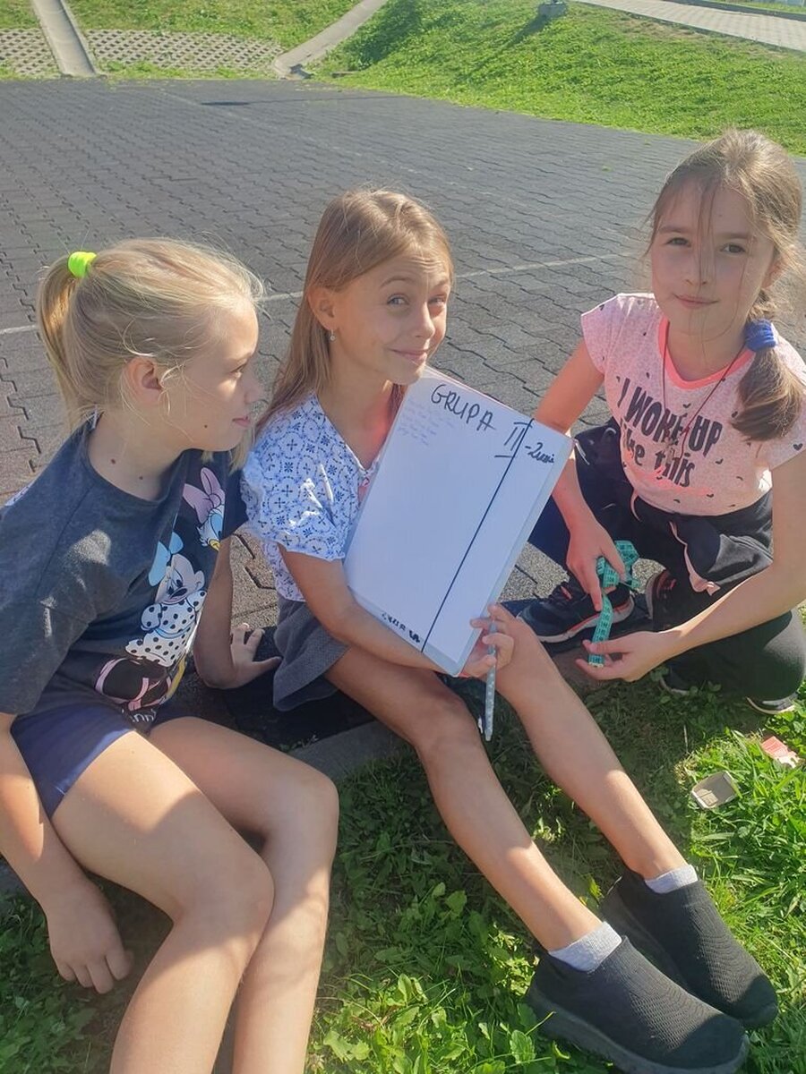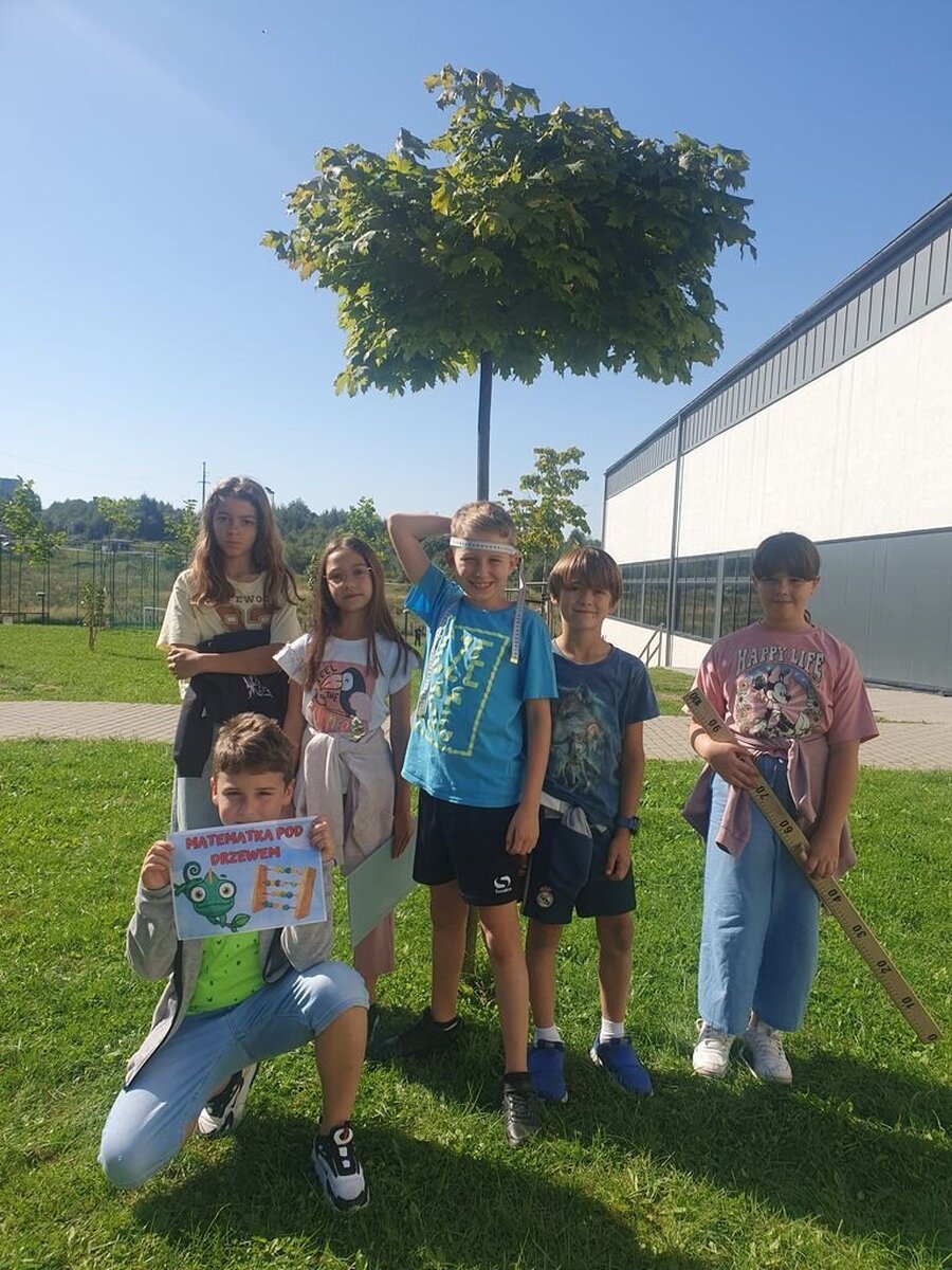 Klasa 3b zrealizowała zadanie pt. „Matematyka pod drzewem” - zadanie polegało na zabawach z miarą, dzięki czemu odkrywaliśmy praktyczną stronę matematyki. Pracując w małych grupach mieliśmy okazję mierzyć liście, trawy, krzewy, małe drzewka, kwiaty, patyczki oraz wiele innych przedmiotów w naszym otoczeniu. Dzięki temu doświadczeniu zrozumieliśmy, jak matematyka może być stosowana w praktyce. Poznawaliśmy różne jednostki miar, ćwiczyliśmy precyzję i dokładność w pomiarach oraz analizowaliśmy wyniki. Podczas wykonywania zadań towarzyszyła nam sylwetka kameleona.