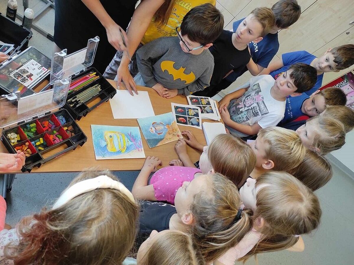 Uczniowie z zaangażowaniem uczestniczyli w zajęciach pokazowych, na których wykonali piękne prace plastyczne.