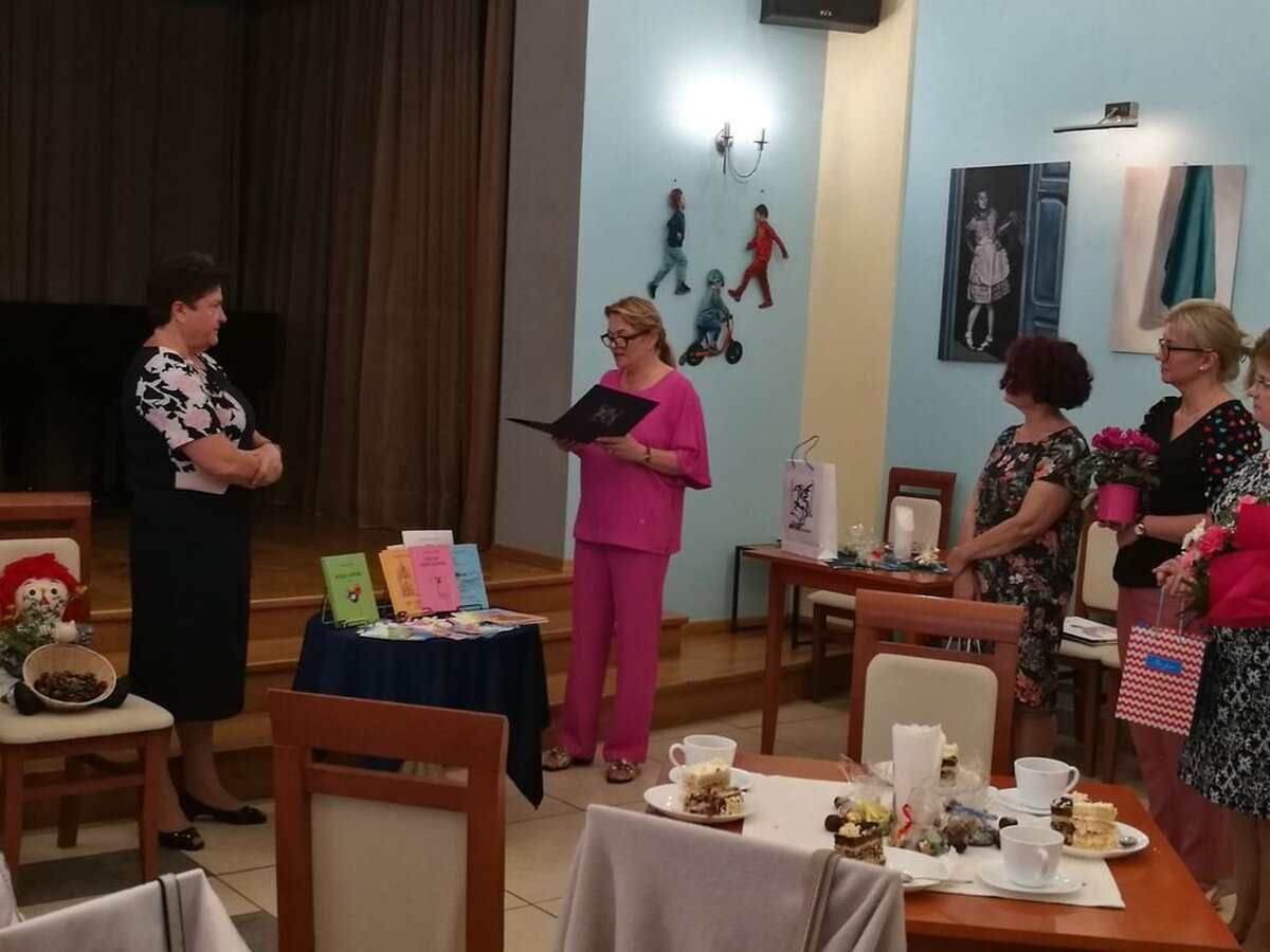 W czwartek 28 września w Wojewódzkim Domu Kultury odbył się jubileusz 50-lecia pracy twórczej pani Stanisławy Bełch, pisarki która często gości w naszej szkole opowiadając o napisanych przez siebie książkach. W czasie tej uroczystości Malwina Dziedzic z klasy 3e recytowała jeden z wierszy pani Stanisławy. Została też poproszona o pomoc w rozdawaniu zgromadzonym gościom przygotowanych przez autorkę zakładek. Malwina jako przedstawicielka szkoły wręczyła pani pisarce obrazek wykonany przez naszych uczniów, do którego dołączyliśmy podziękowania i życzenia wielu twórczych pomysłów.