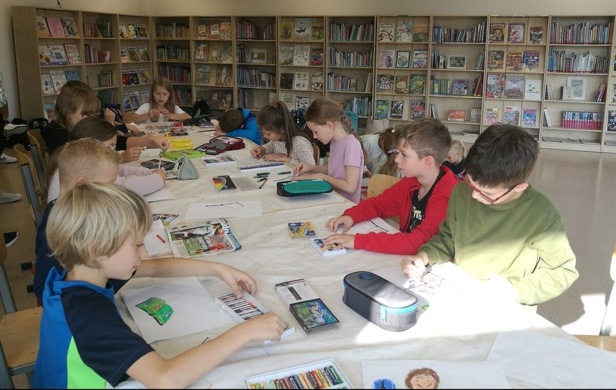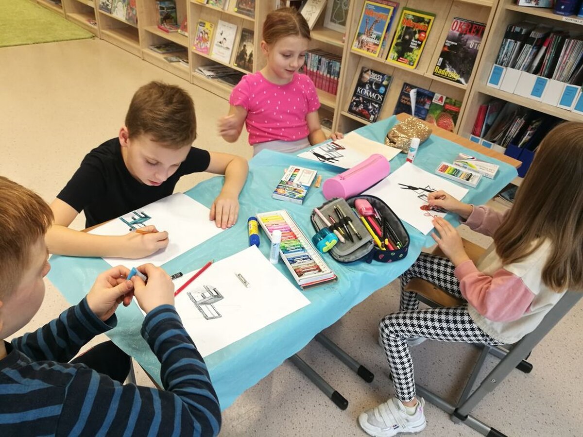 „Tu kwitnie wyobraźnia” – tak brzmiało tegoroczne hasło Ogólnopolskiego Miesiąca Bibliotek Szkolnych obchodzonego w październiku. Z tej okazji w naszej szkole odbywały się różne zajęcia czytelnicze, plastyczne i z wykorzystaniem teatrzyku kamishibai rozwijające wyobraźnię, a wnętrze biblioteki nieco się zmieniło.