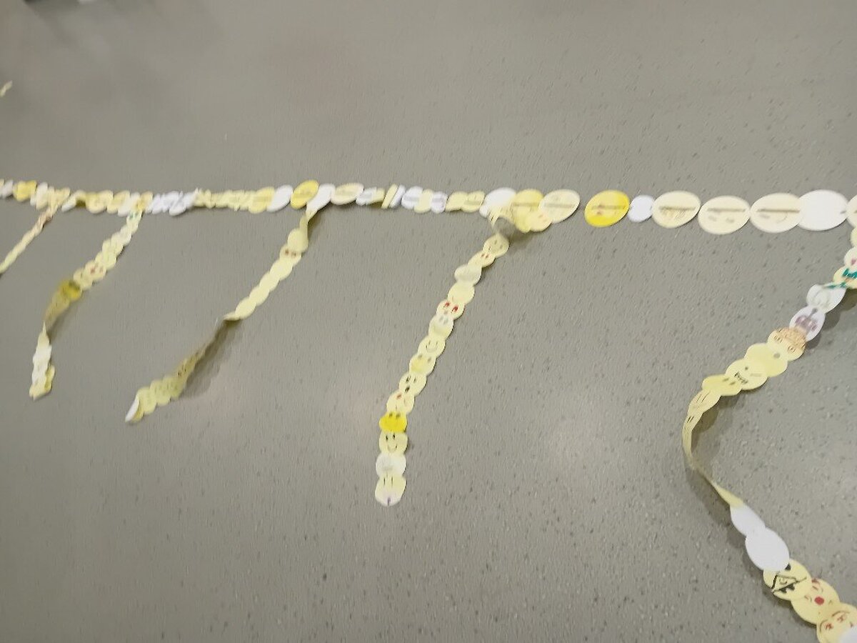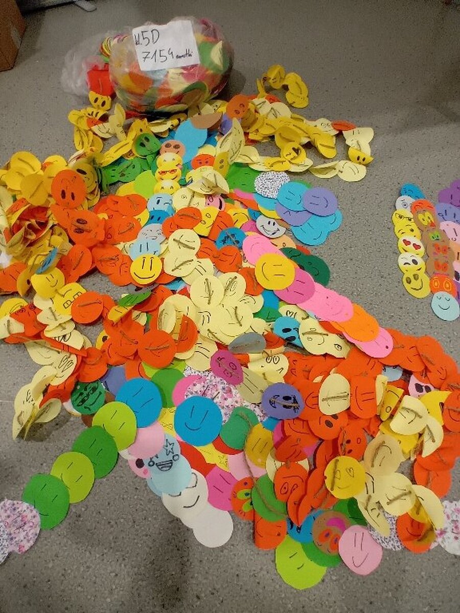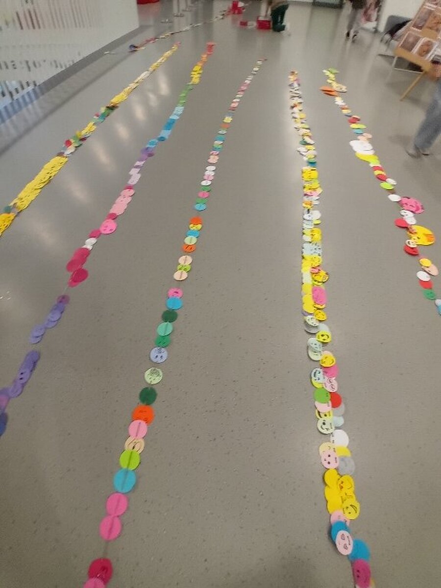 Samorząd Szkolny przygotował z okazji tego ważnego dnia akcję „ Łańcuch Uśmiechu”, polegała ona na wykonaniu przez poszczególne klasy łańcucha z emotek.