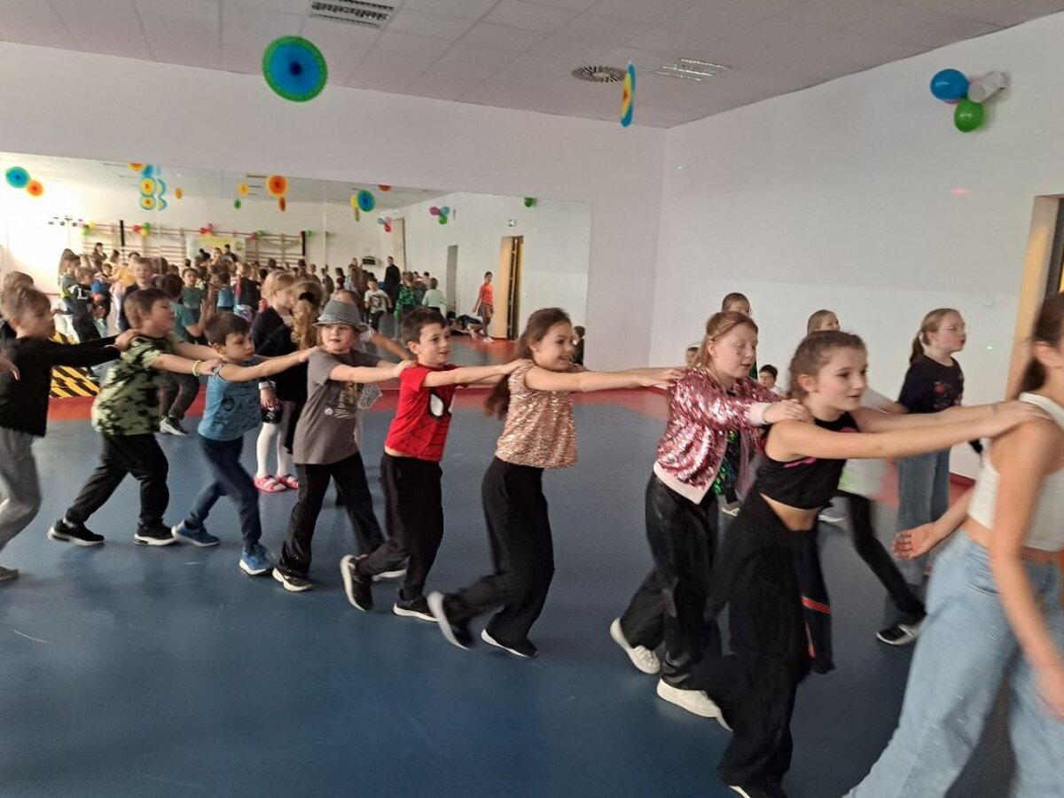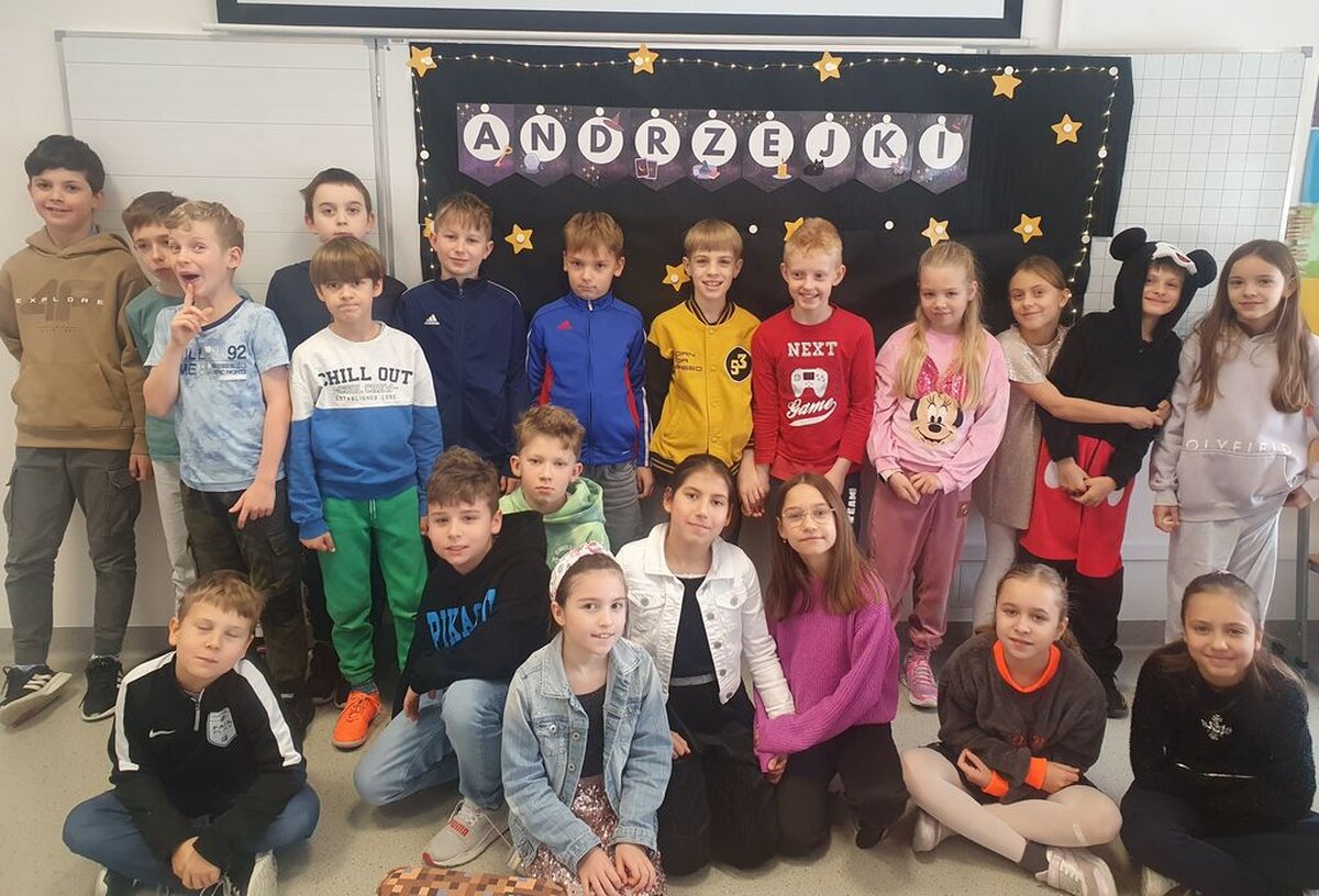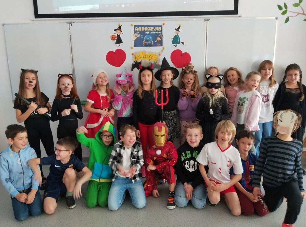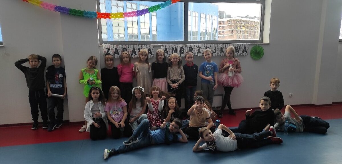 W dniu 29.11 w klasach 1-3 odbyły się zabawy andrzejkowe. Uczniowie wraz z animatorami odbyli podróż poprzez wszystkie kontynenty, poznając przeróżne zabawy i tańce z najdalszych zakątków świata. Pociągiem zbudowanym z własnych rąk dzieci przemierzały dzikie prerie poznając muzykę country czy słoneczny Madagaskar „wyginając śmiało ciało”. Uczniowie odwiedzili również Grecję i zatańczyli Zorbę. Podróż zakończyła się w Zakopanem. Podczas zabaw nie zabrakło ulubionych piosenek, konkursów oraz żartów. Na koniec prowadzący zrobili dzieciom niespodziankę – po całej sali rozprowadzony został ciężki dym, wyglądający jak ogromna chmura. Zrobiło to na wszystkich niesamowite wrażenie.