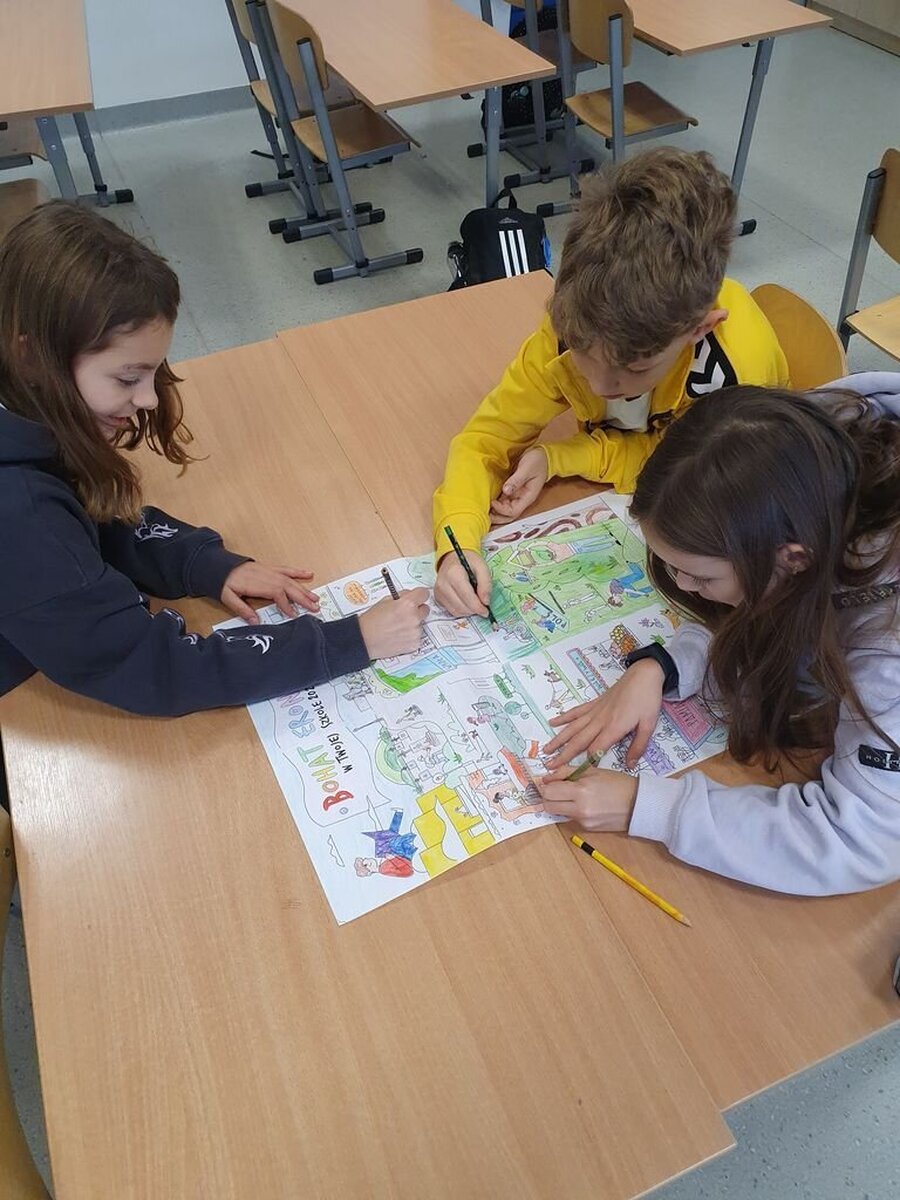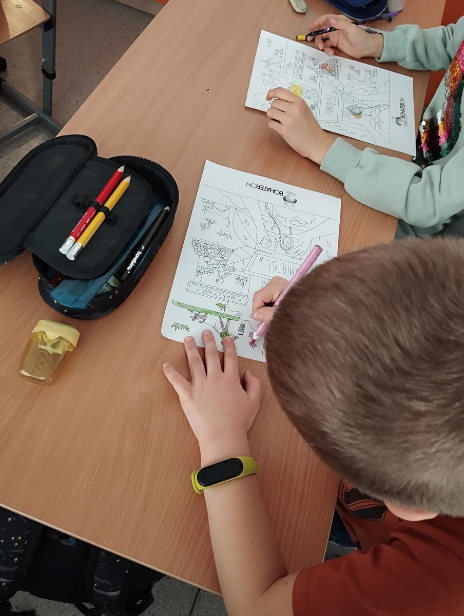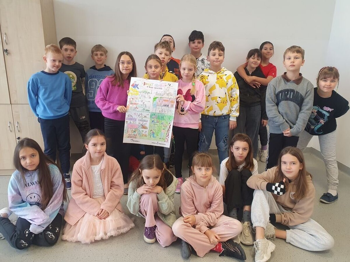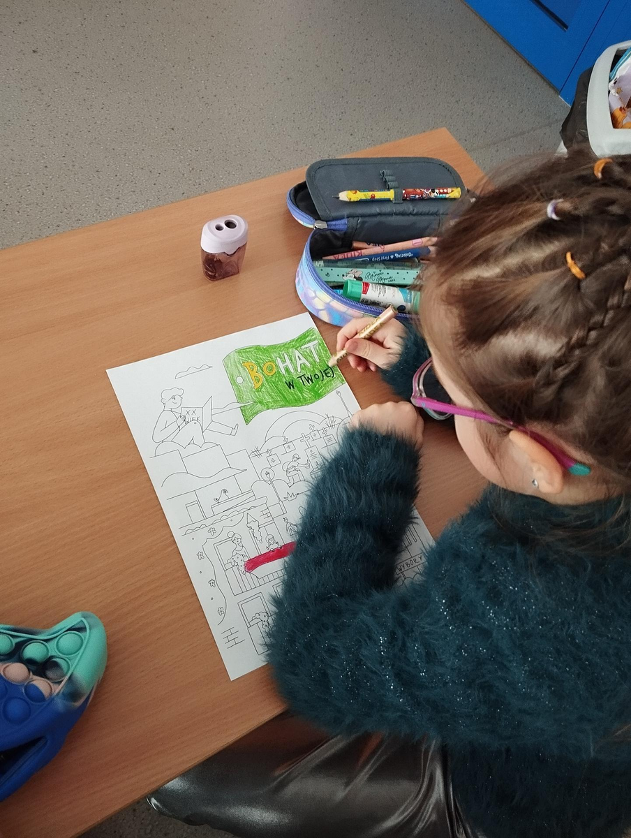 Nasza szkoła przystąpiła do projektu BohaterON w Twojej Szkole. Jest to ogólnopolska kampania mająca na celu upamiętnienie i uhonorowanie uczestników Powstania Warszawskiego oraz promocję historii Polski XX wieku. Zajęcia rozpoczęły się od obejrzenia filmu pt. „Jak zostałem bohaterem”. Jest to opowiadanie Elizy Piotrowskiej, w którym pierwszoosobowym narratorem jest ciekawy świata 8-letni Leon mieszkający w Warszawie. Za pośrednictwem obrazowego i humorystycznego języka najmłodsi uczniowie dowiedzieli się, jak można zostać bohaterem, nawet, gdy nie ma wojny i jest się dzieckiem. Następnie każdy uczeń otrzymał fragment kolorowanki na podstawie tegorocznego plakatu akcji BohaterON w Twojej Szkole. Plakat przedstawiał kilkanaście sytuacji – przykładów zachowań dzieci i dorosłych, którzy kochają swój kraj i o niego dbają.