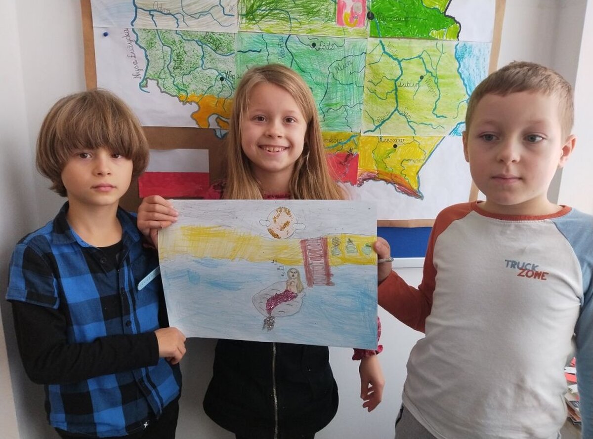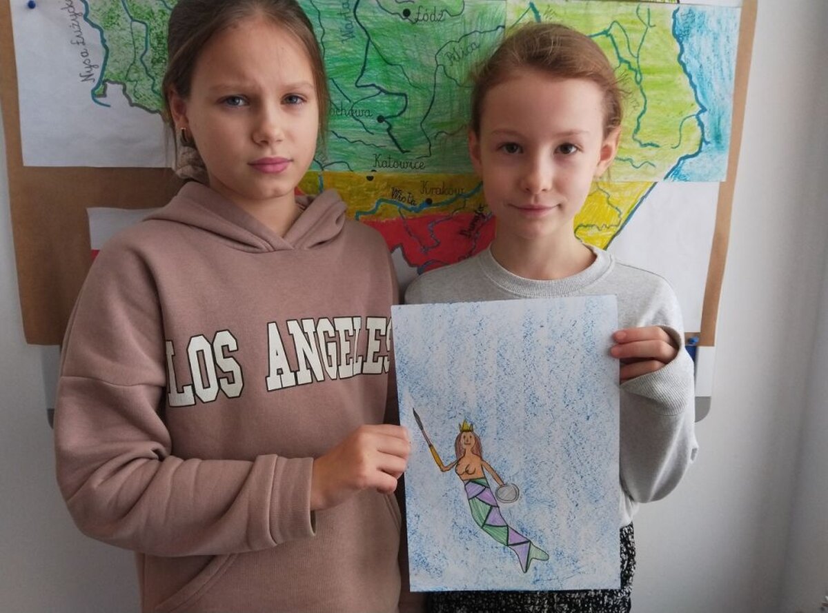 Podczas drugich zajęć z innowacji, uczniowie z klasy 2a i 2c poznali legendy związane z naszą stolicą – Warszawą. Wysłuchali legendy „O Warsie i Sawie” oraz „O warszawskiej syrence”. Wspólnie z nauczycielem przeanalizowali treść legend. Poznali również główne zabytki oraz ważne miejsca w Warszawie. Wysłuchali także piosenki; „O warszawskiej syrence”. Na koniec stworzyli prace plastyczne techniką collage - indywidualnie lub w grupach. Był to herb syrenki lub ilustracja do legendy.