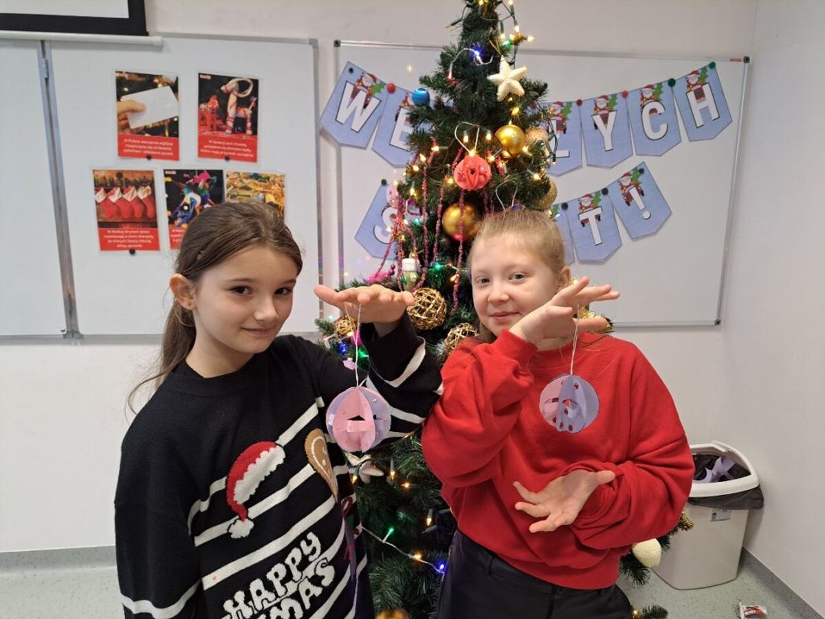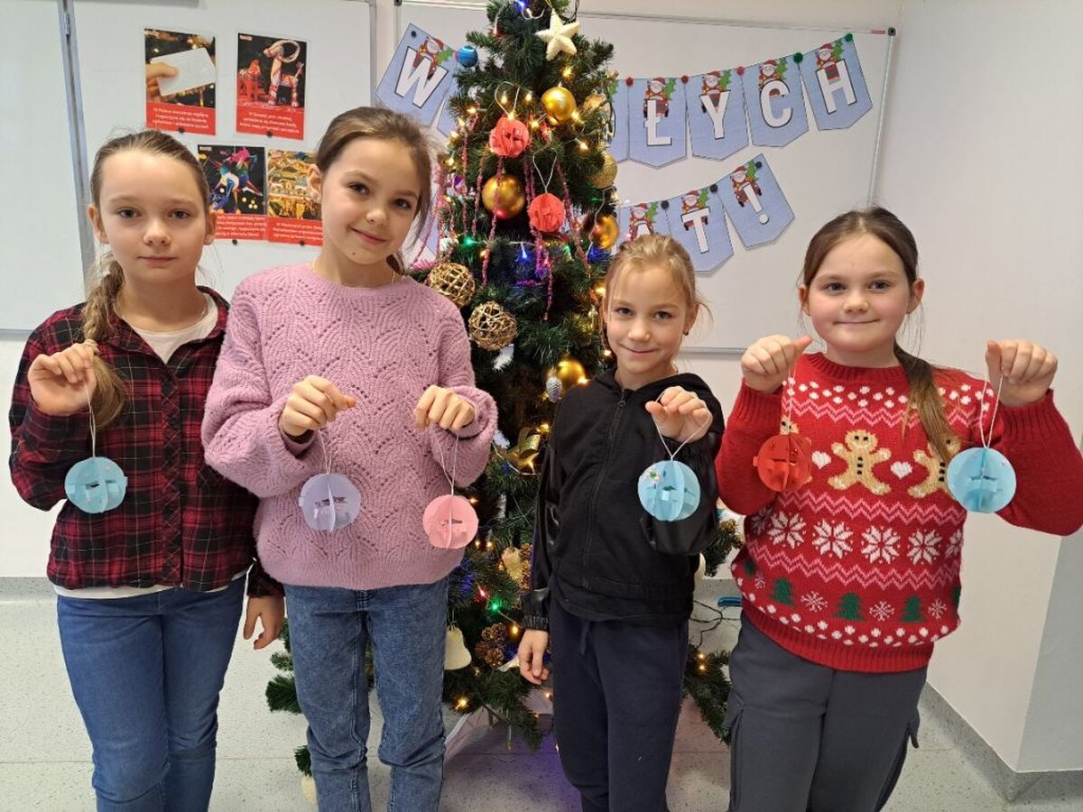 Zwieńczeniem zajęć było tworzenie świątecznych ozdób i wspólne ubieranie choinki, które sprawiło dzieciom wiele radości.
