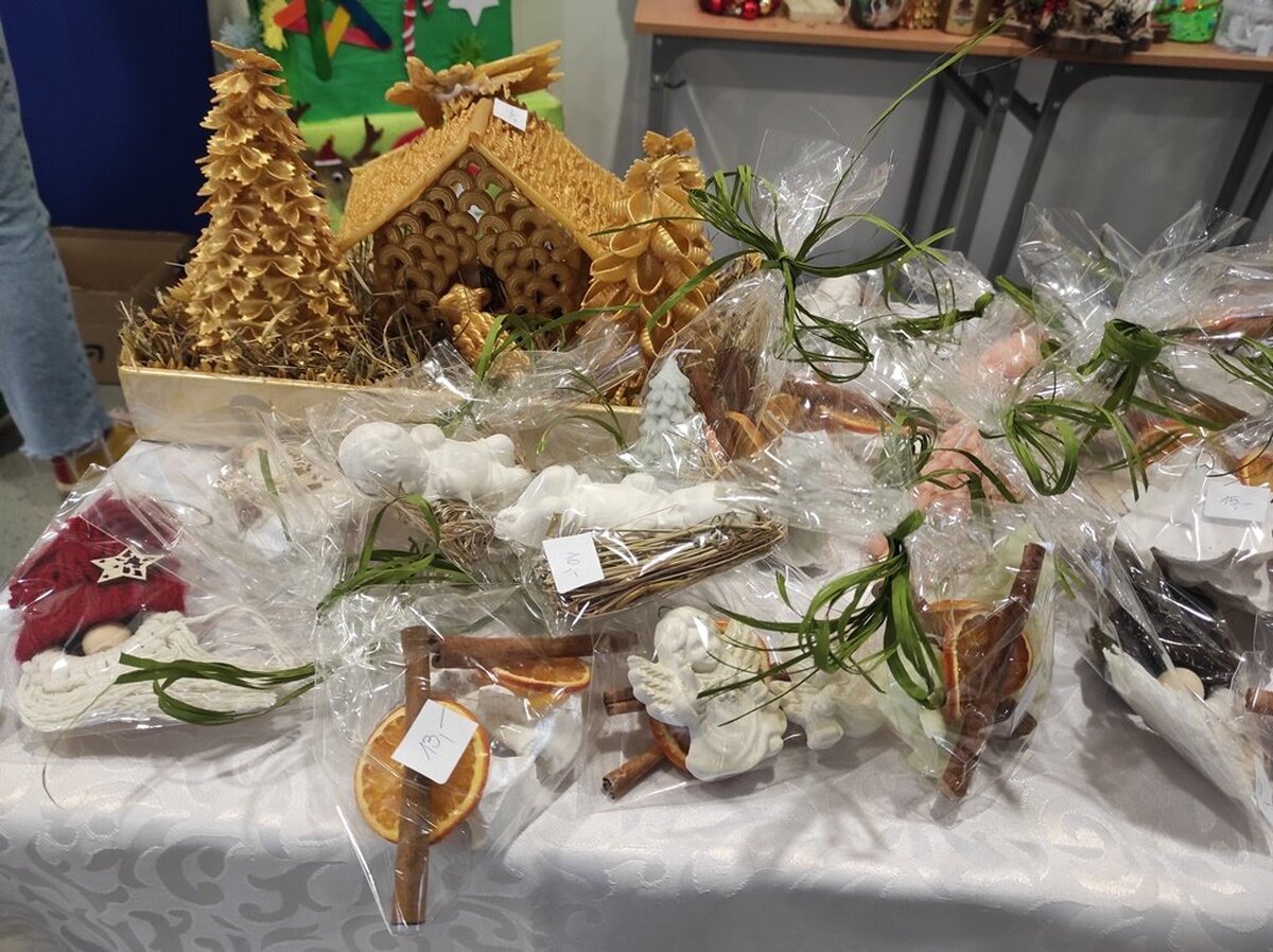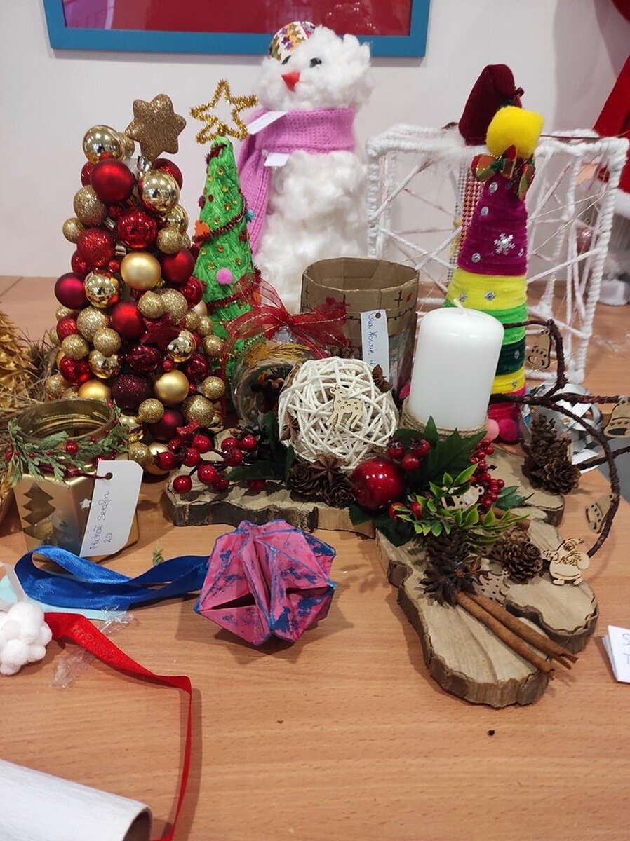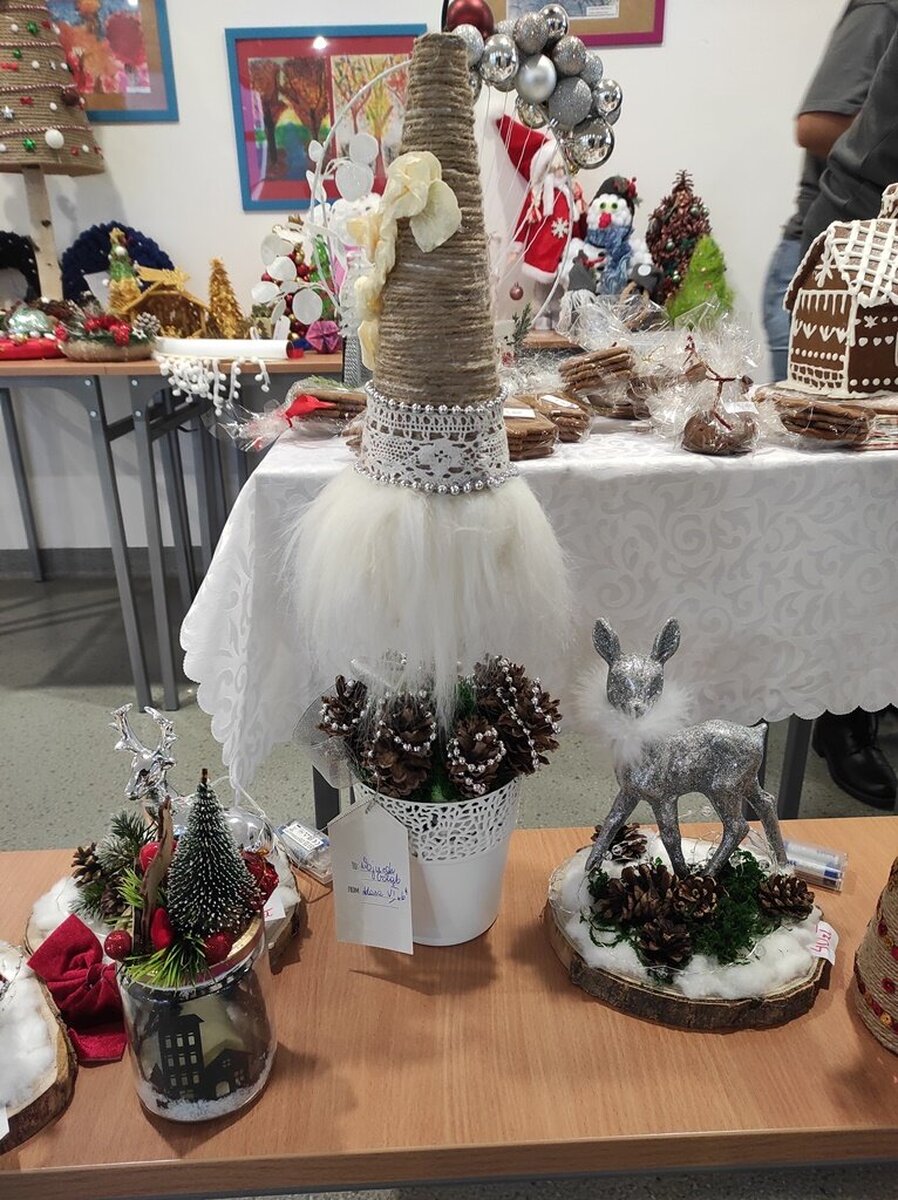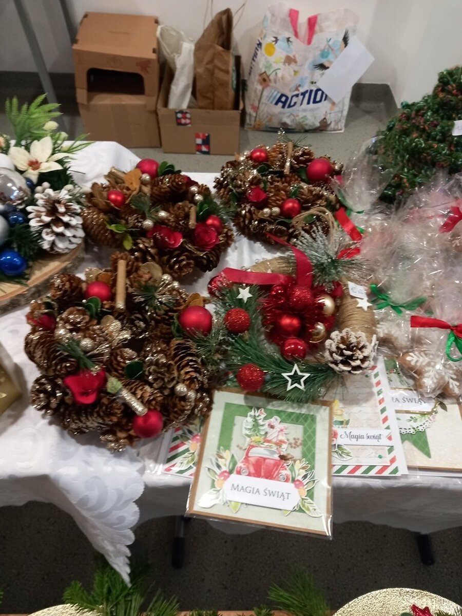 Przed świętami Bożego Narodzenia w naszej szkole zorganizowano kiermasz świąteczny. Znalazło się na nim świąteczne rękodzieło takie jak: aniołki, choinki, bombki, gwiazdki, stroiki, kartki świąteczne i wiele innych niezwykłych prac. Były to wyjątkowe dekoracje, które przystroją choinkę, świąteczny stół czy mieszkanie. Kolorowe i błyszczące ozdoby wykonane były pod okiem wychowawców świetlicy szkolnej i zachęcały do oglądania i zakupu.