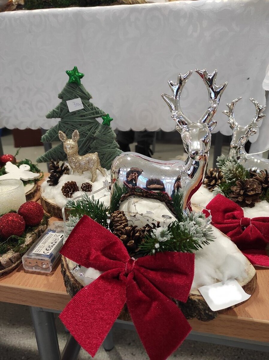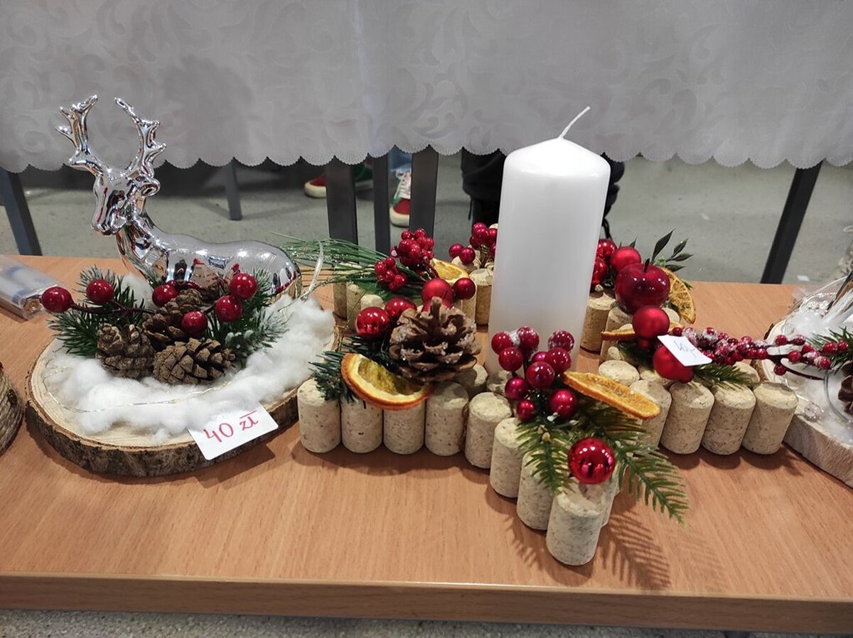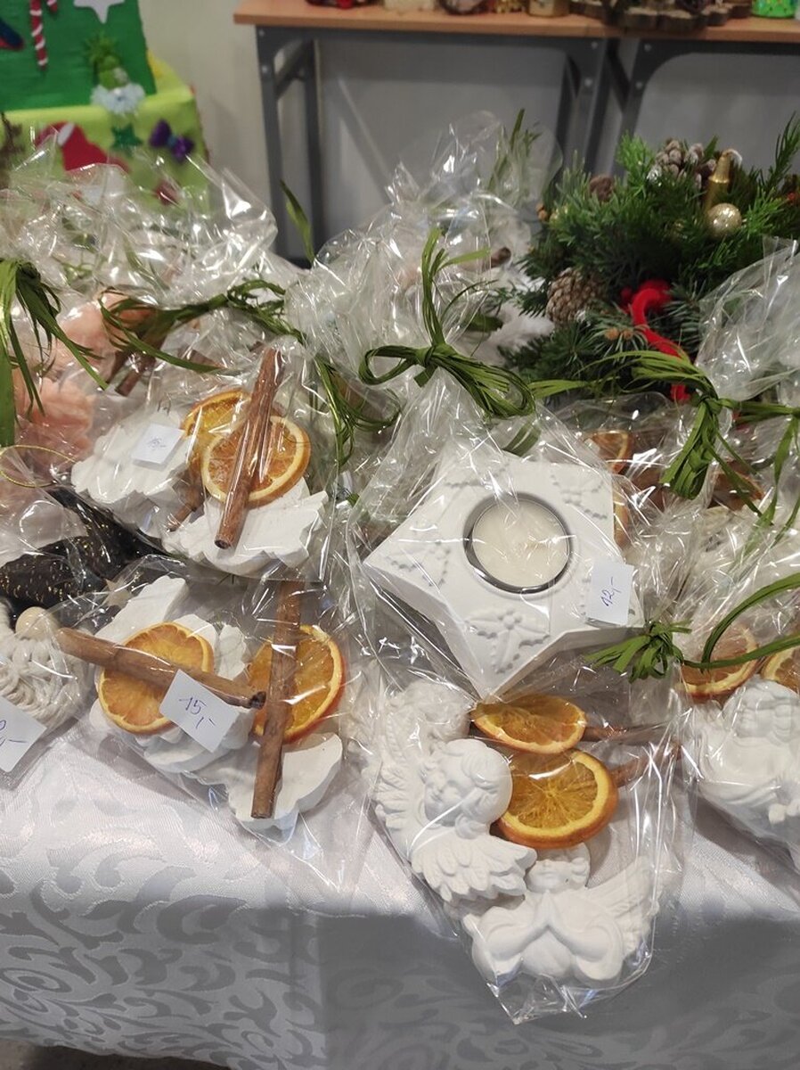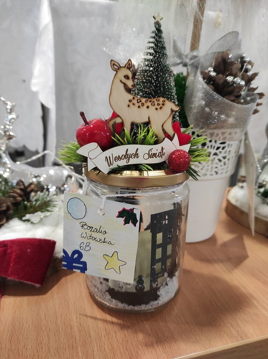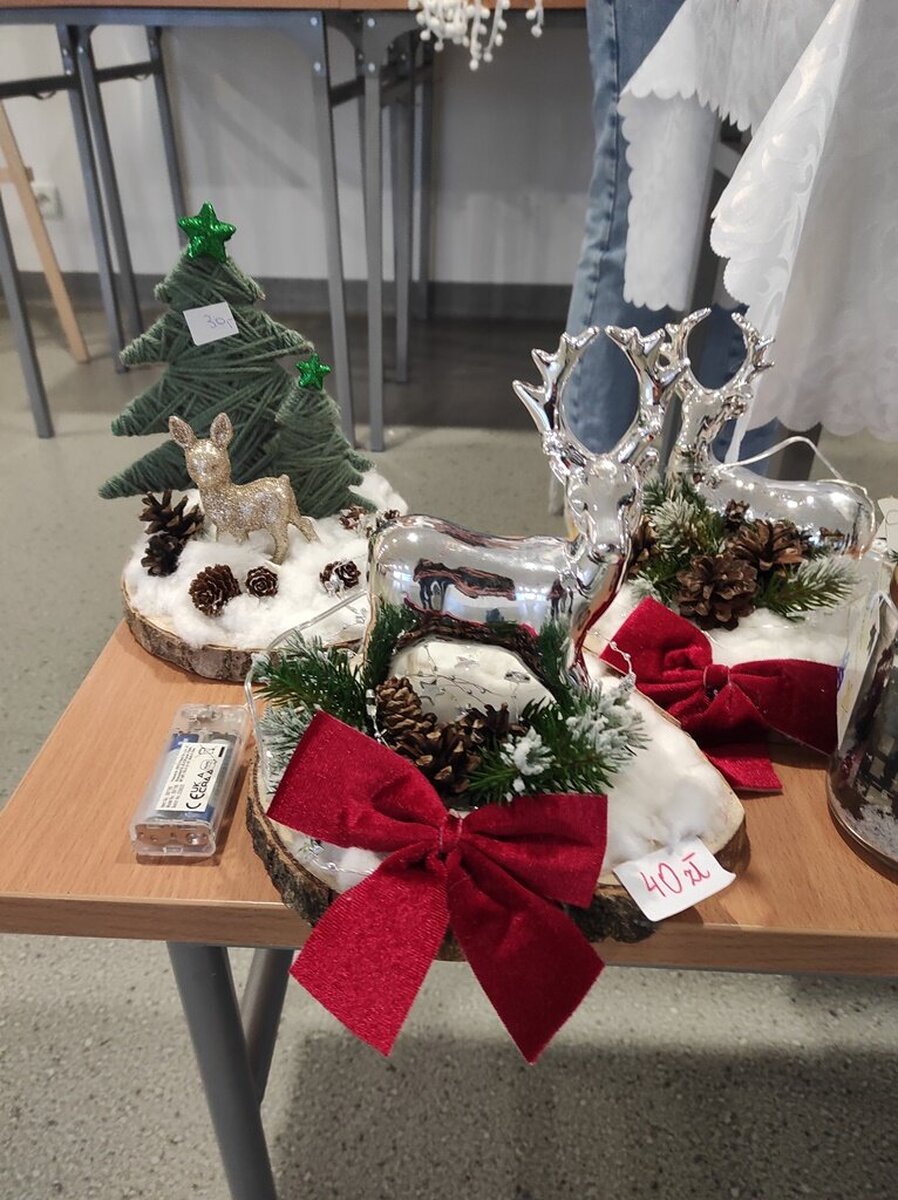 Przed świętami Bożego Narodzenia w naszej szkole zorganizowano kiermasz świąteczny. Znalazło się na nim świąteczne rękodzieło takie jak: aniołki, choinki, bombki, gwiazdki, stroiki, kartki świąteczne i wiele innych niezwykłych prac. Były to wyjątkowe dekoracje, które przystroją choinkę, świąteczny stół czy mieszkanie. Kolorowe i błyszczące ozdoby wykonane były pod okiem wychowawców świetlicy szkolnej i zachęcały do oglądania i zakupu.