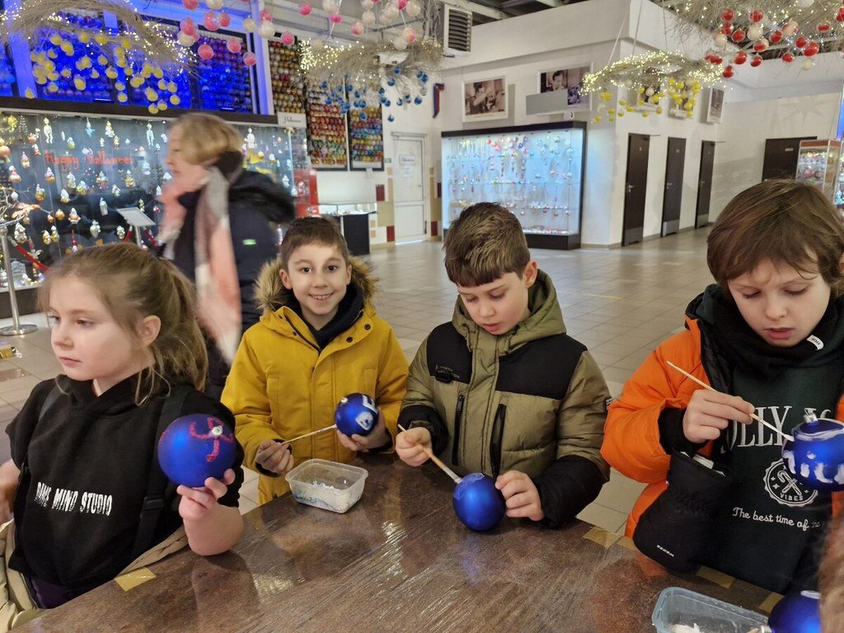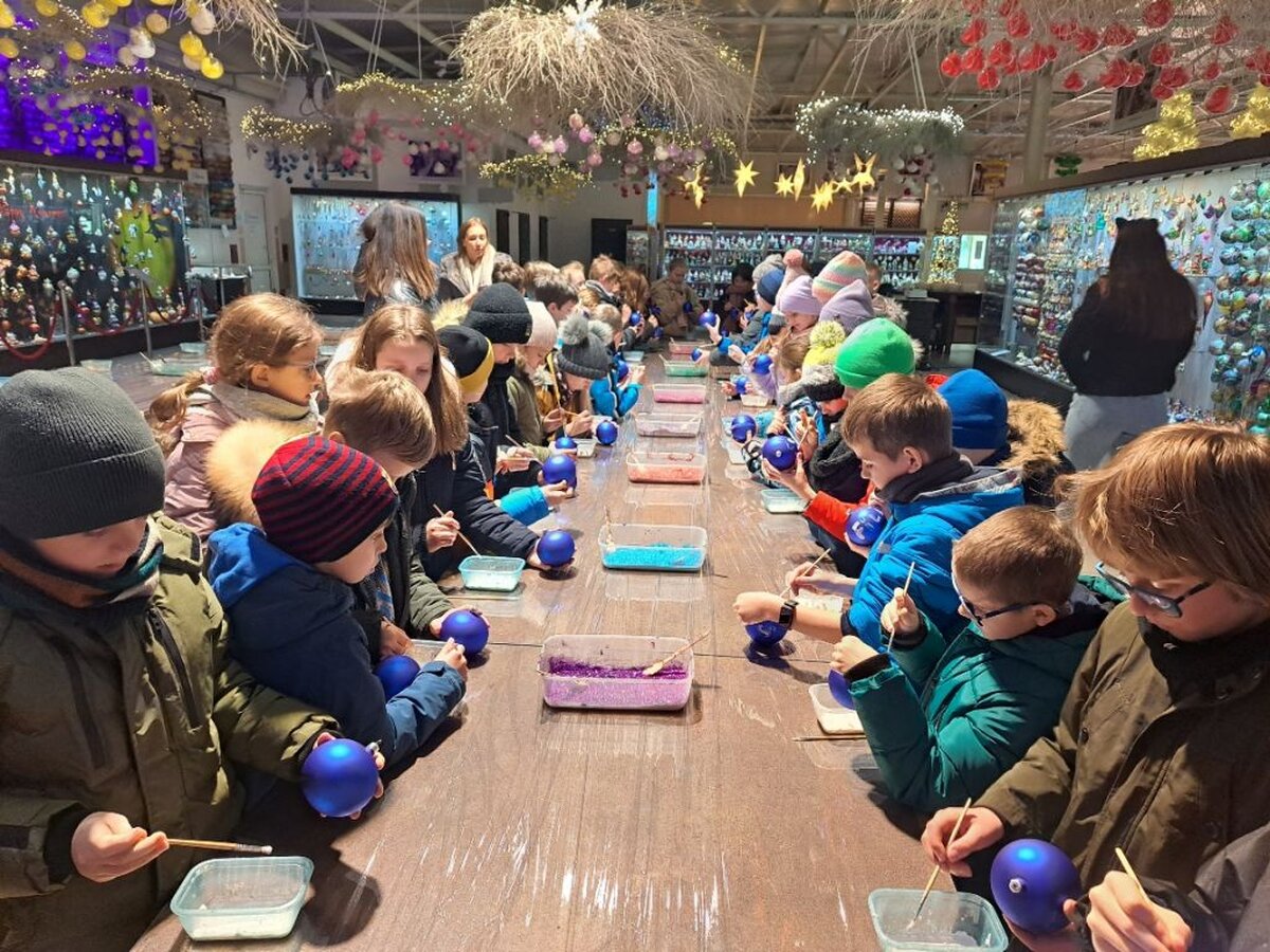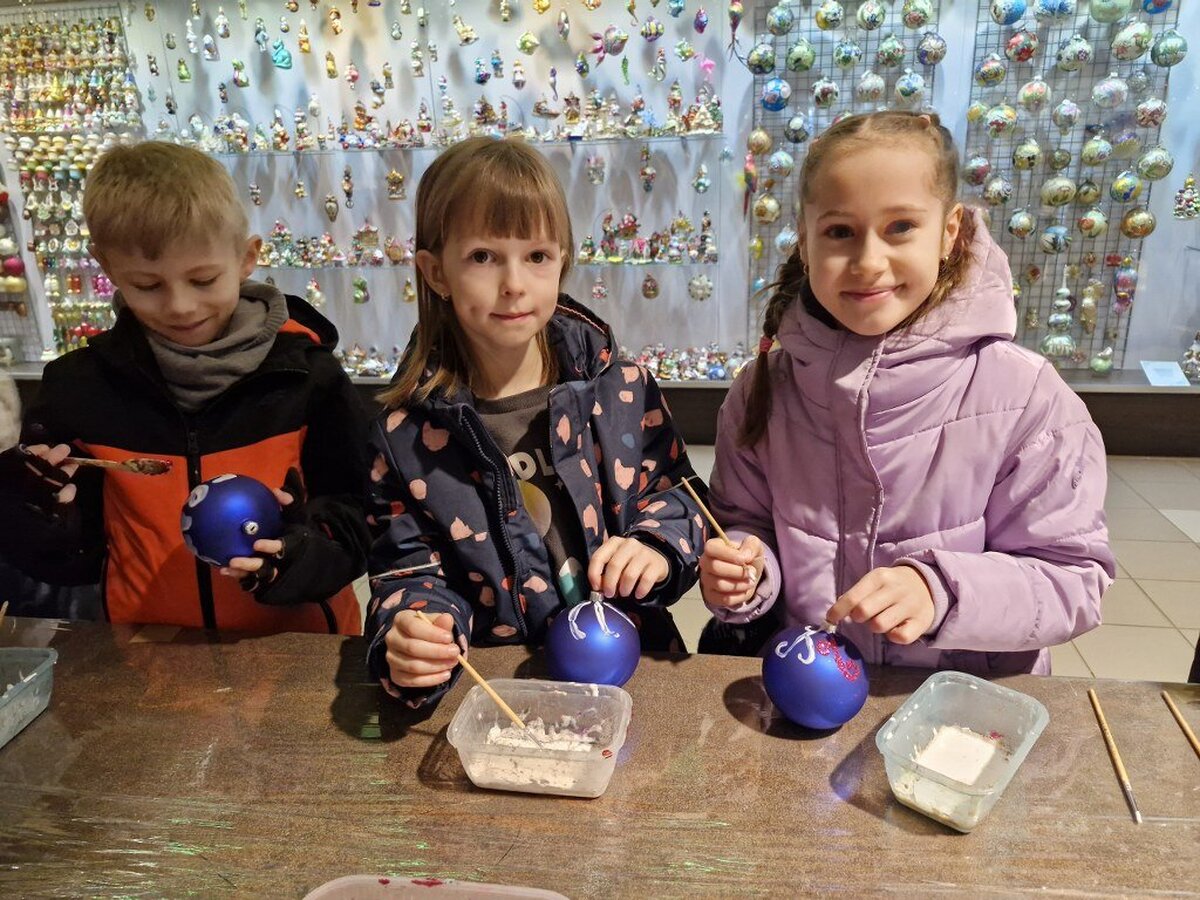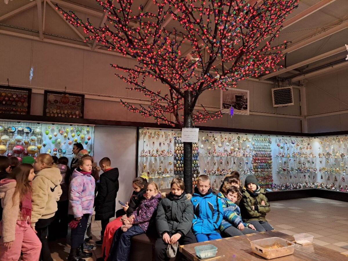 Pod opieką pani przewodnik uczniowie oglądali stanowiska z choinkami i bombkami z różnych części świata i epok (styl amerykański, wiktoriański, francuski, norweski, staropolski). Obejrzeli również cały proces wyrobu ozdób choinkowych, w czasie którego pracownik fabryki nad palnikiem ogniowym rozgrzewał szkło a następnie wydmuchiwał okrągłe bańki.