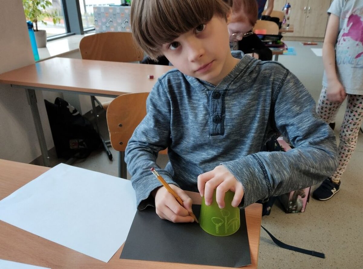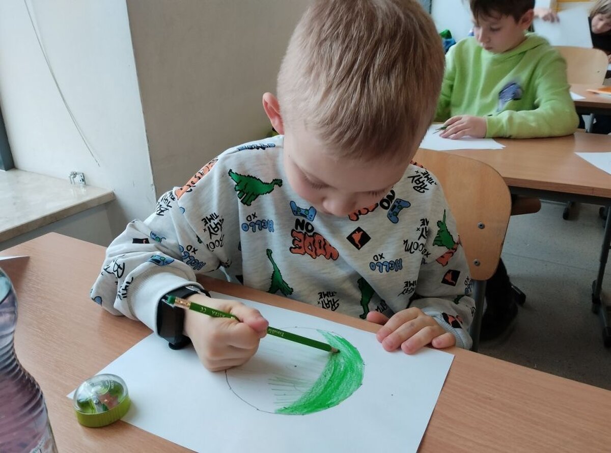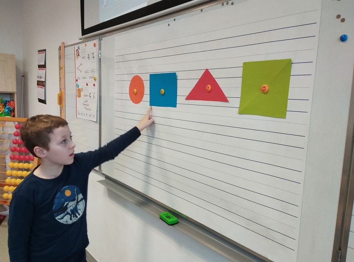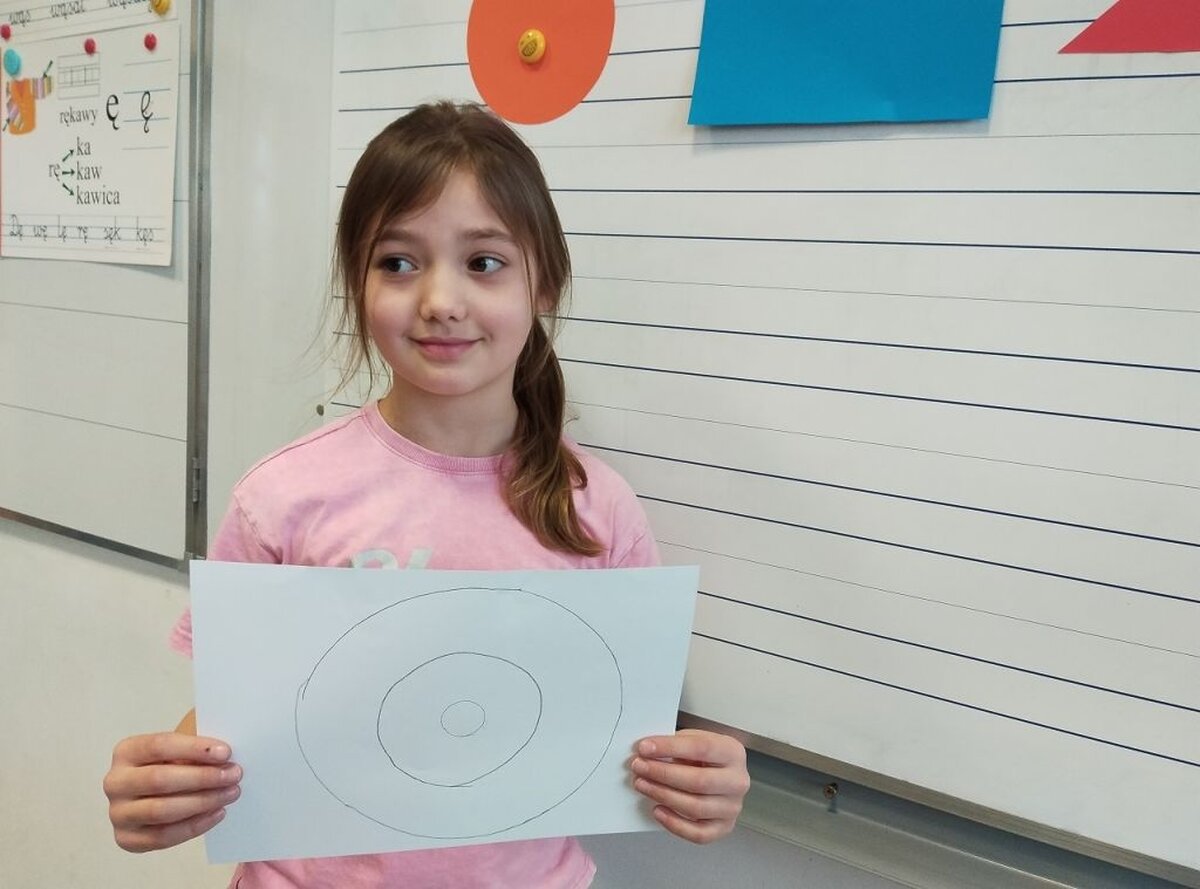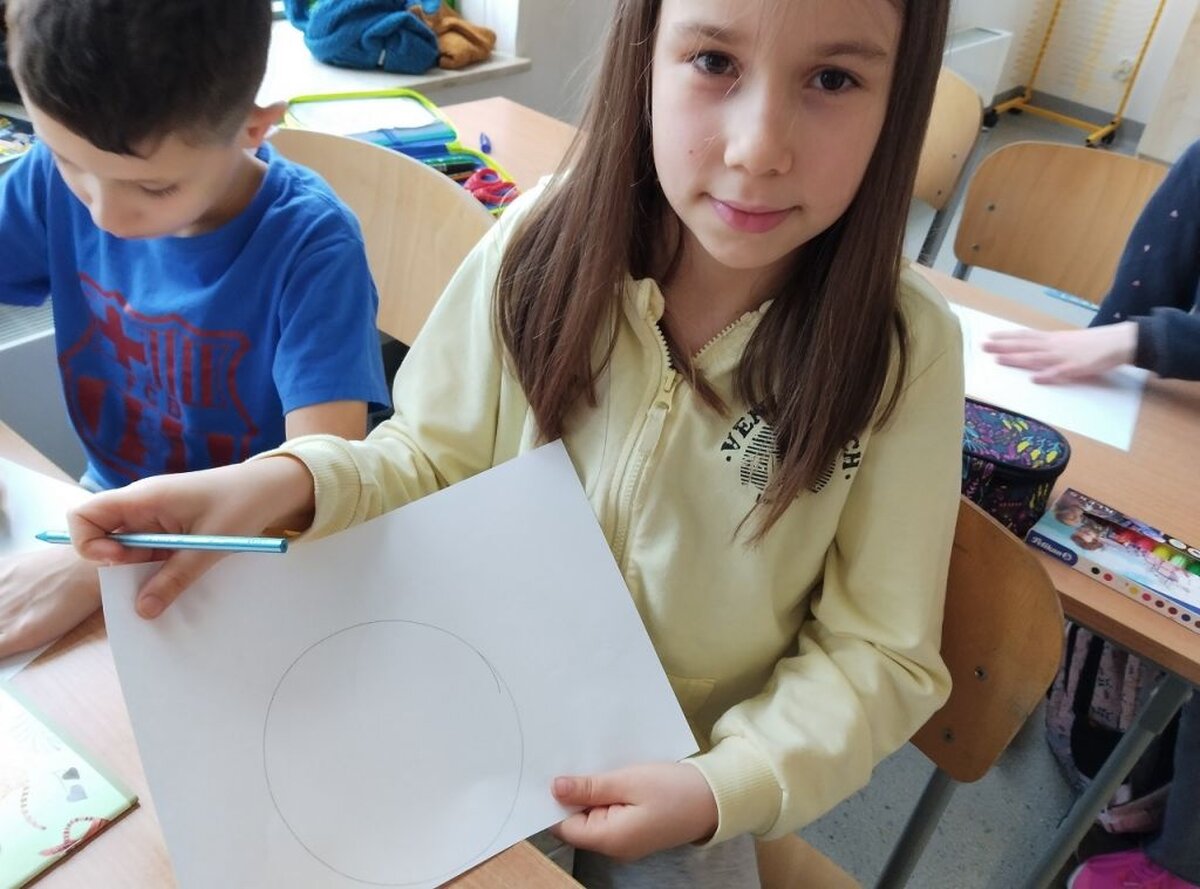 Uczniowie klasy 2a w ramach realizacji ogólnopolskiego projektu edukacyjnego „Inspiruję do nauki” uczestniczyli w zajęciach pt.: „Jak narysować koło?” Na początku zajęć uczniowie przypomnieli nazwy i wygląd figur geometrycznych, porównywali je między sobą. Poszukiwali figur geometrycznych w przedmiotach z otoczenia oraz w znakach drogowych, tym samym utrwalając wiadomości na temat bezpieczeństwa na drodze. Poznali sposoby rysowania koła, bez użycia cyrkla, ale za to przy pomocy wykałaczki, kubka, a nawet tylko własnej dłoni. Niektórym dzieciom znakomicie udało się narysować równe koło. W ostatniej części zajęć, uczniowie wykonali pracę plastyczną – wyklejankę – origami z kół.