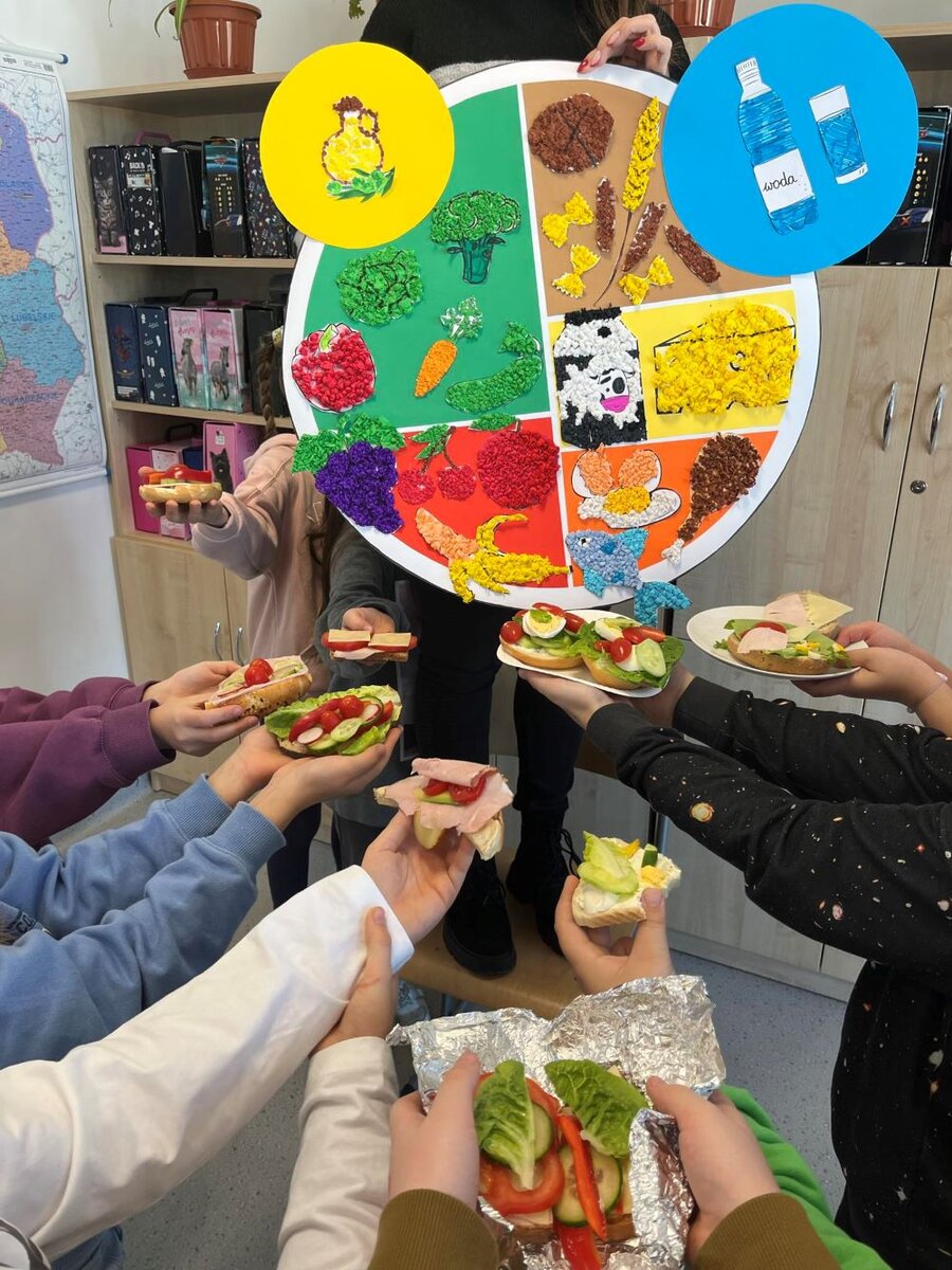 Uczniowie naszej szkoły wzięli udział w ogólnopolskim konkursie w ramach „Szkolnych przygód Gangu Mocniaków”. Zadanie polegało na przygotowaniu pracy zbiorowej w formie plakatu przedstawiającego talerz zdrowego żywienia, czyli 5 grup produktów potrzebnych do kompletnego i zbilansowanego odżywiania. Z kolei część praktyczna polegała na wspólnym przygotowaniu posiłku z zachowaniem zasad talerza zdrowego żywienia.