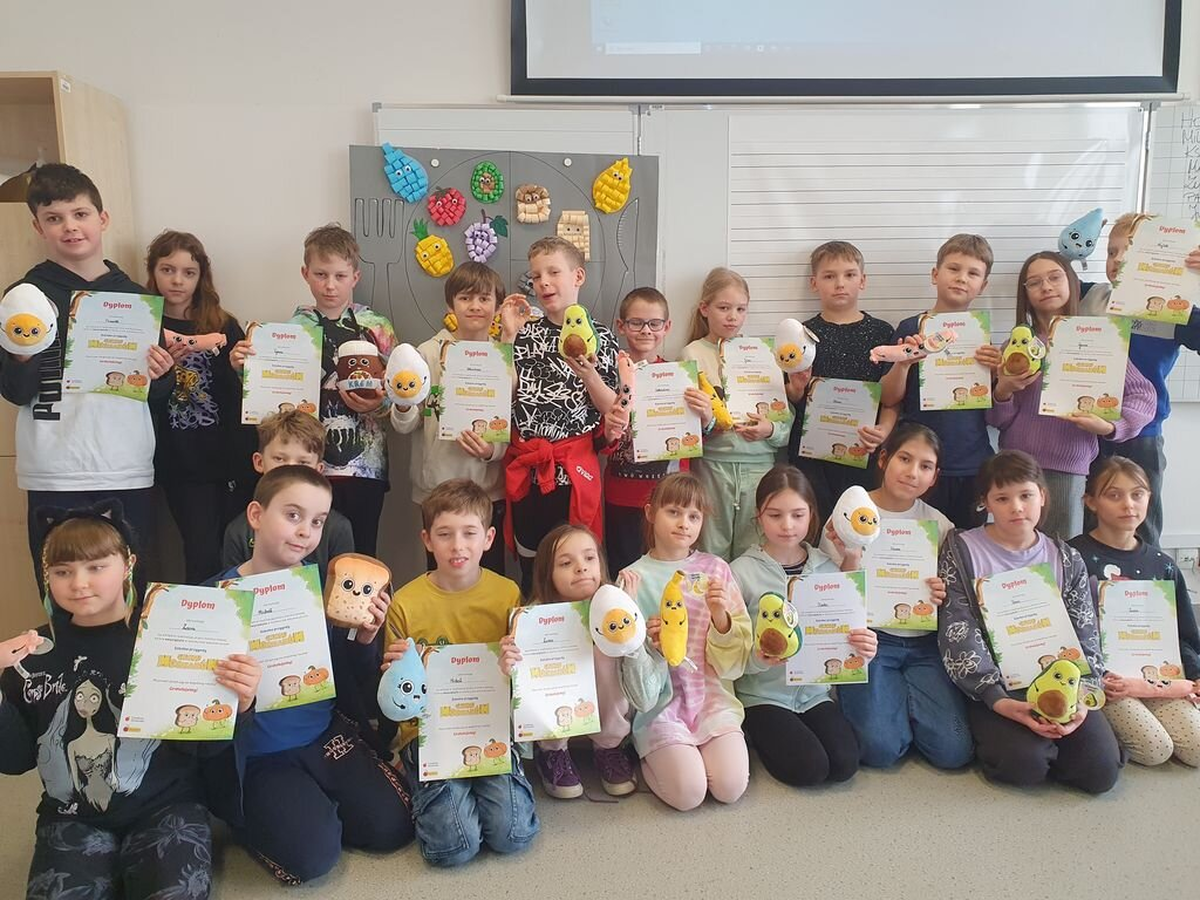 Wykonaliśmy wspólnie pracę, przygotowaliśmy „zdrowe” kanapki, wysłaliśmy zdjęcia i udało nam się znaleźć w gronie nagrodzonych klas :) Każdy uczeń nagrodzonej klasy otrzymał pamiątkowy dyplom i pluszaka „mocniaka”.
