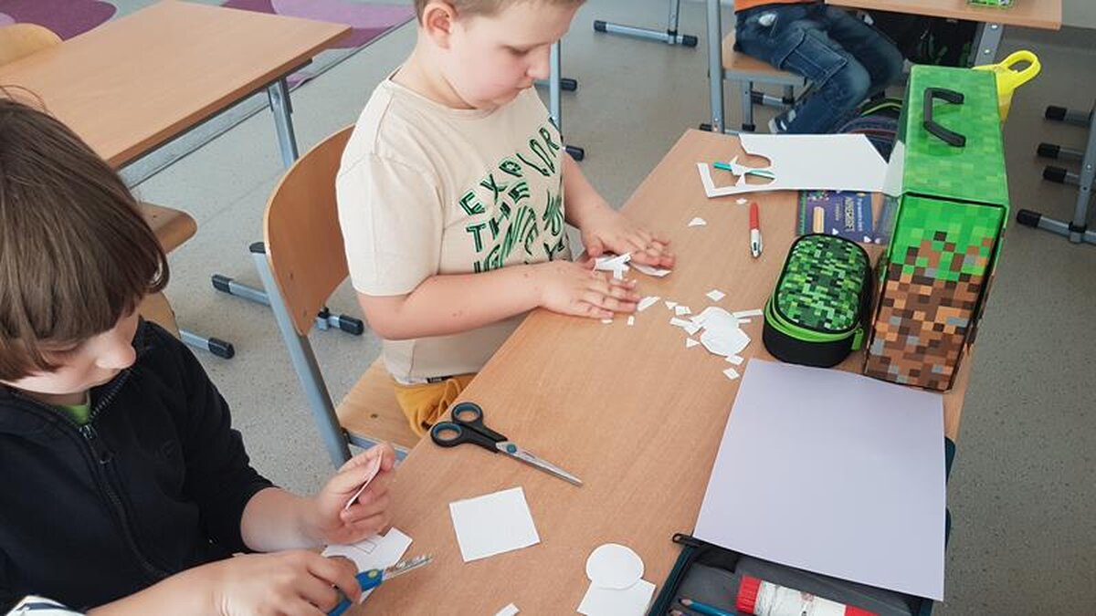 26.04.2024r. w klasie 1c w ramach realizacji programu „Inspiruję do nauki” zrealizowany został temat z zakresu edukacji matematycznej –„Jak z trójkątów zaprojektować strój sportowy”.