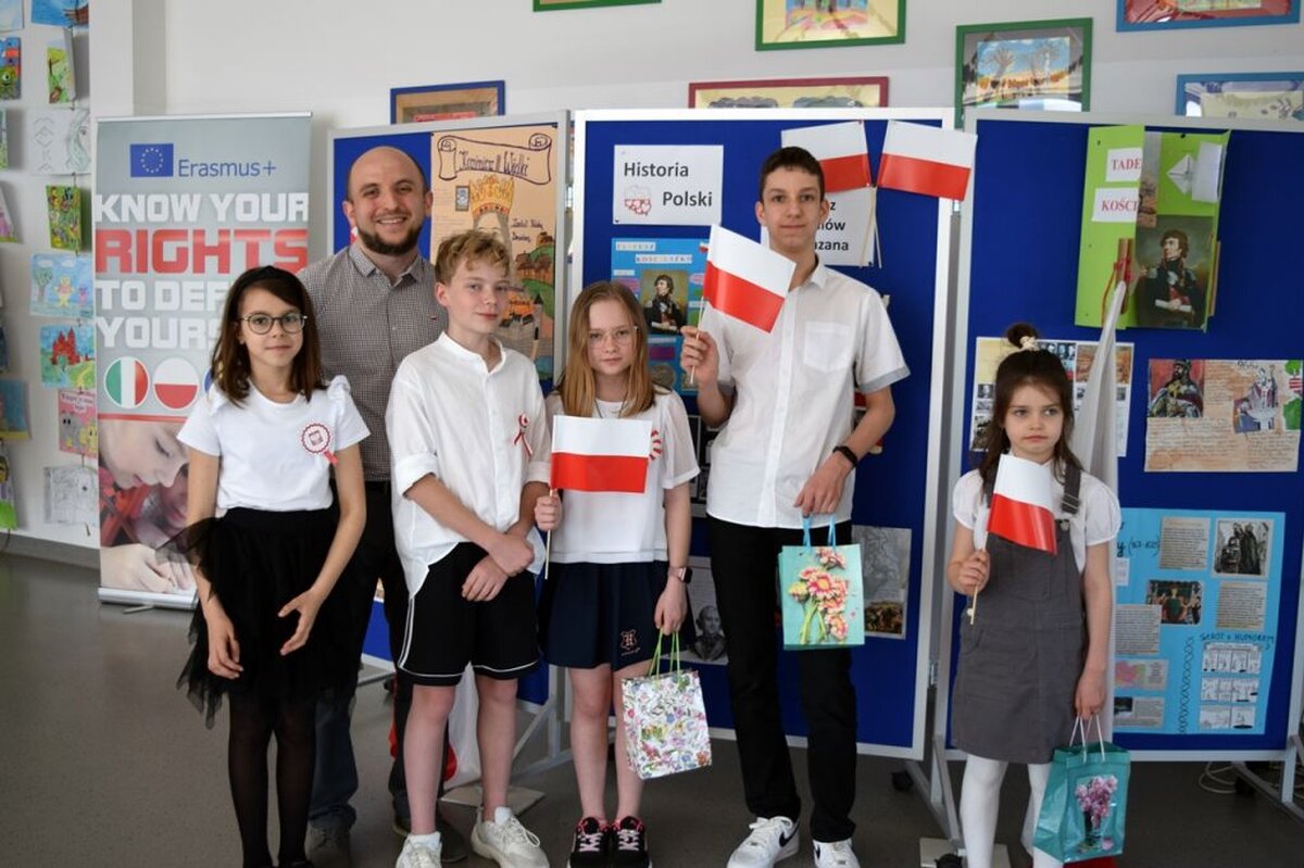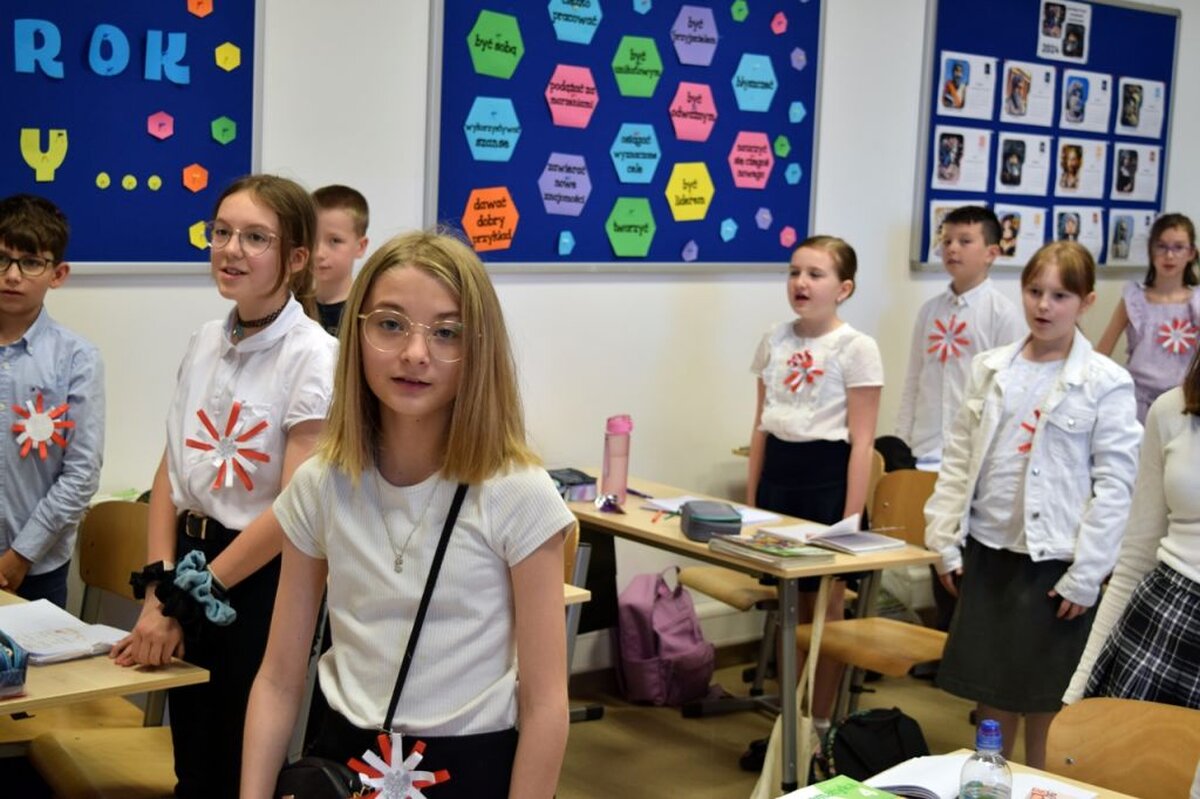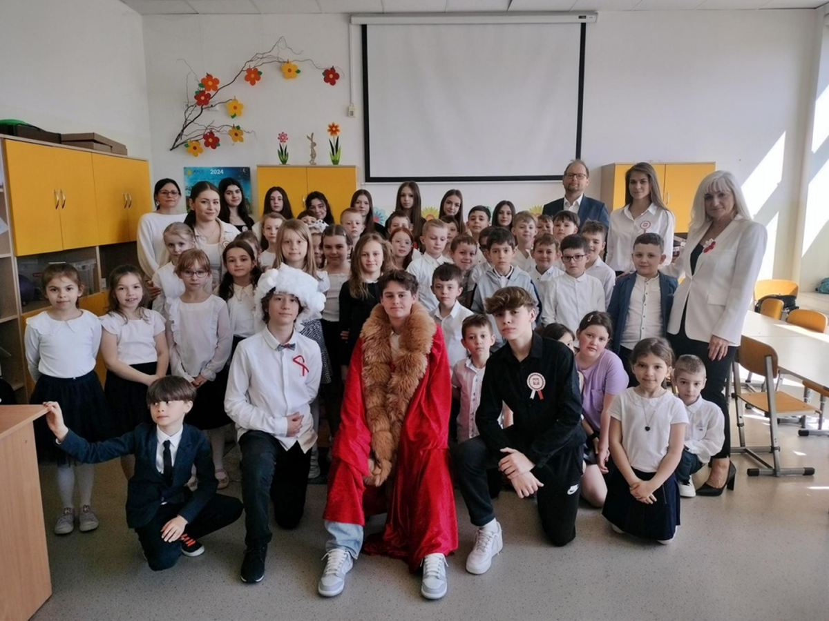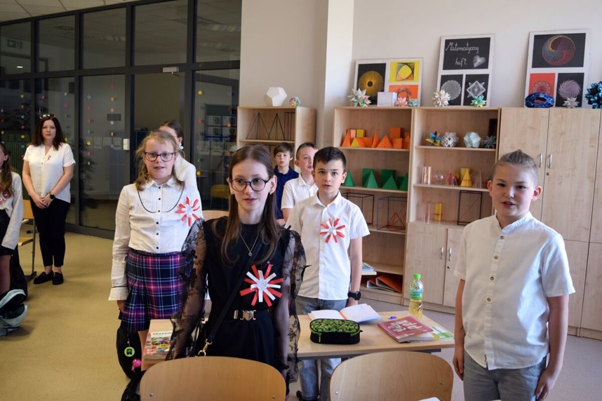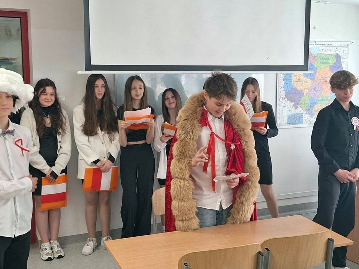W ten dzień nie zabrakło gratulacji dla zwycięzców w konkursie literackim, który był poświęcony Aleksandrowi Fredrze. Oczy uczniów cieszyła wystawa prac dotyczących ważnych postaci z narodowej historii, zaś uszy szereg pieśni patriotycznych, które można było posłuchać w głównym holu szkoły. Oczywiście wśród utworów muzycznych nie zabrakło również tego najważniejszego - Mazurka Dąbrowskiego. Hymn cała społeczność szkolna odśpiewała dokładnie o godz. 12.00.