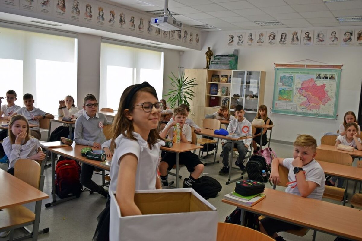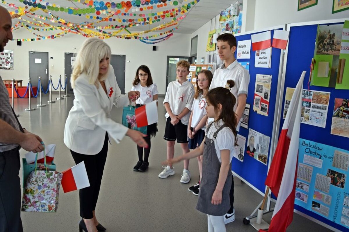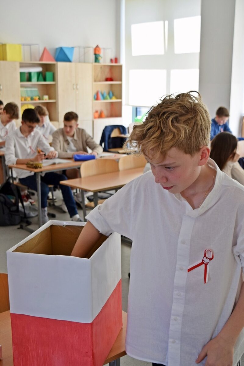 Sporym zainteresowaniem cieszył konkurs - „Skrzynka biało-czerwonych odpowiedzi”. W sumie wzięło w nim udział blisko 150 uczniów. Znakomicie spisali się siódmoklasiści, którzy przygotowali „żywy pokaz historii” przedstawiając genezę pierwszej w Europie konstytucji. Uczniowie pamiętali również o 20 rocznicy wejścia Polski do Unii Europejskiej.