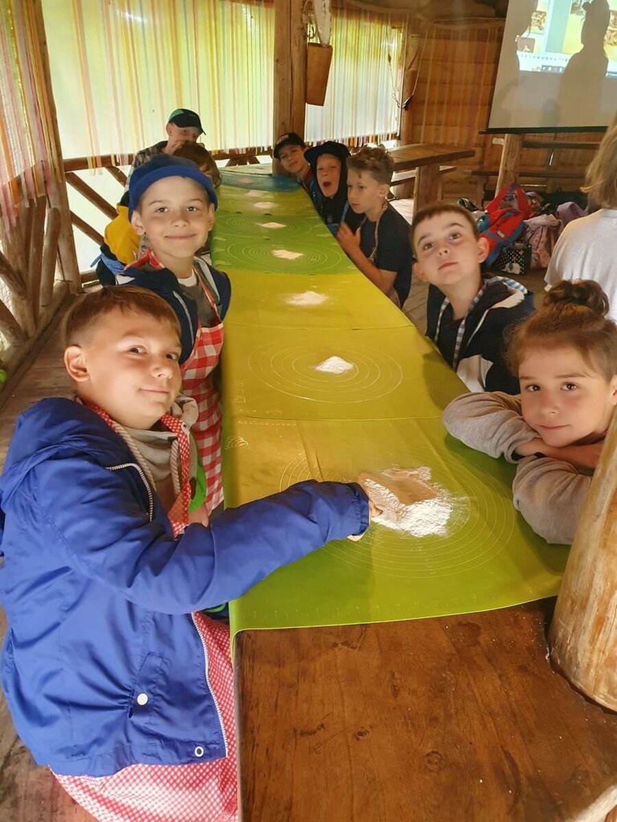Dnia 4 czerwca klasy 3b i 3f udały się na wycieczkę do Siedliska Janczar w Pstrągowej. Swoją wizytę rozpoczęliśmy od udziału w warsztatach kulinarnych, połączonych z pokazem tradycyjnego wypieku chleba pt. „Od ziarna do chleba”. Dzieci samodzielnie przygotowały chlebki, które na zakończenie po upieczeniu zabrały do swoich domów.