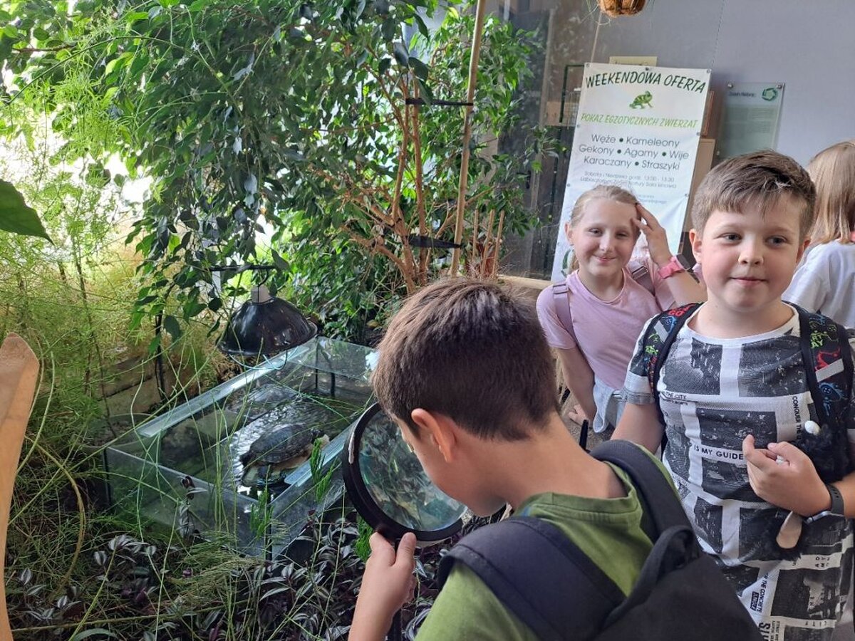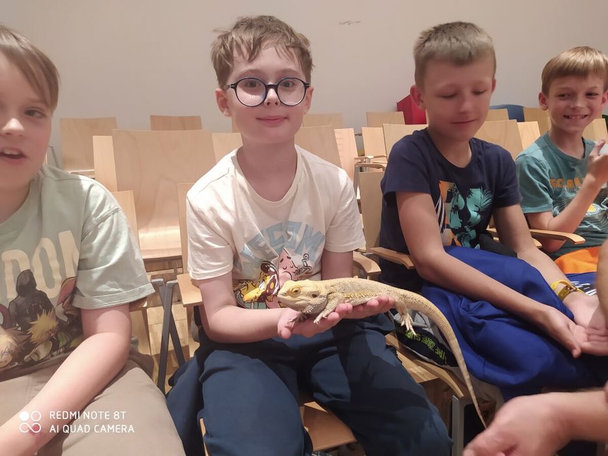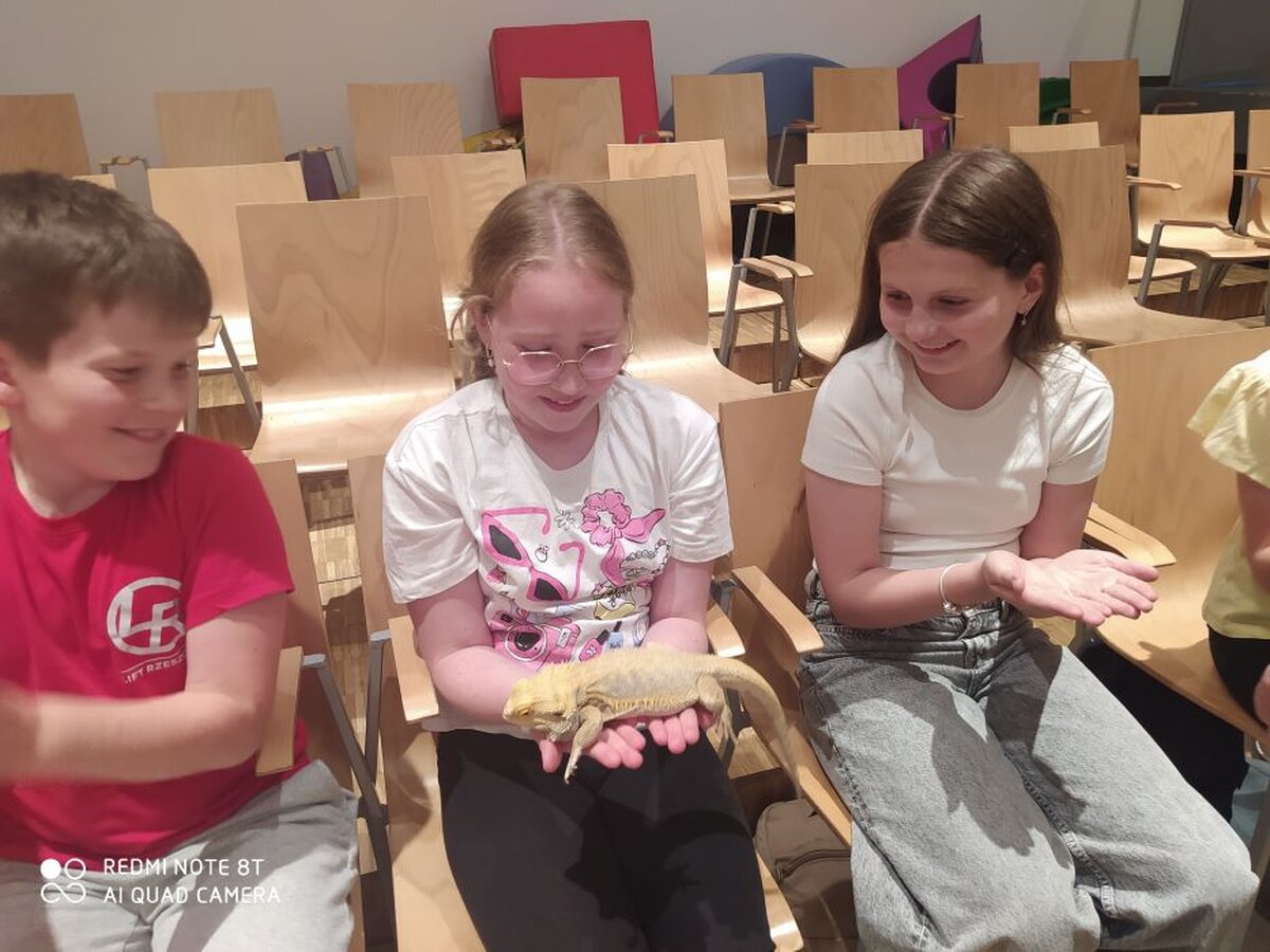Następnie uczniowie odwiedzili laboratorium „Zoom Natury”, w którym mogli zobaczyć gigantyczne akwaria, terraria i insektaria, projektory 3D oraz profil glebowy. Tutaj odbyli też interaktywną podróż do wnętrza Ziemi. Dzieci uczestniczyły również w spotkaniu z egzotycznymi zwierzętami, które na żywo prezentował ich opiekun. Wszyscy mieli okazję trzymać na rękach jaszczurkę i węża.