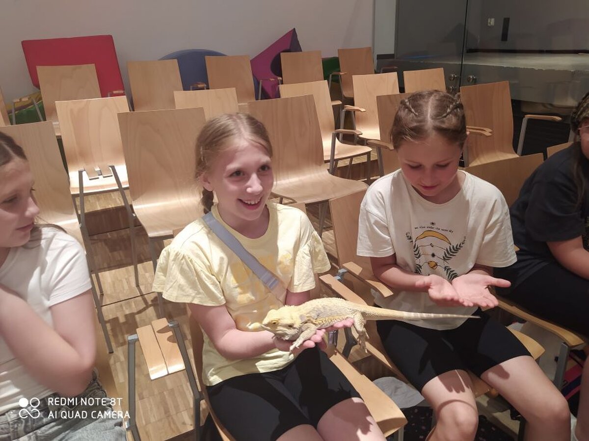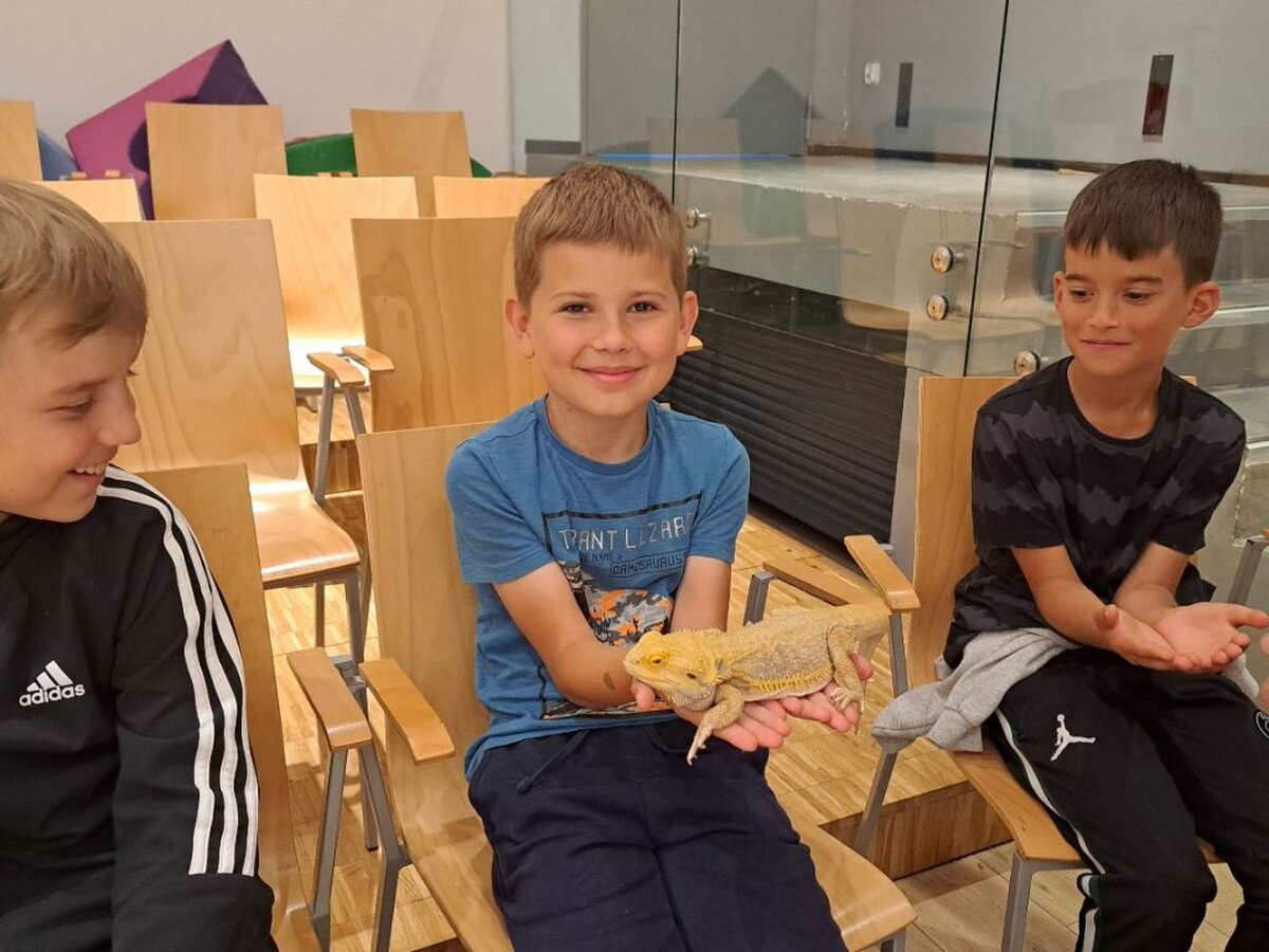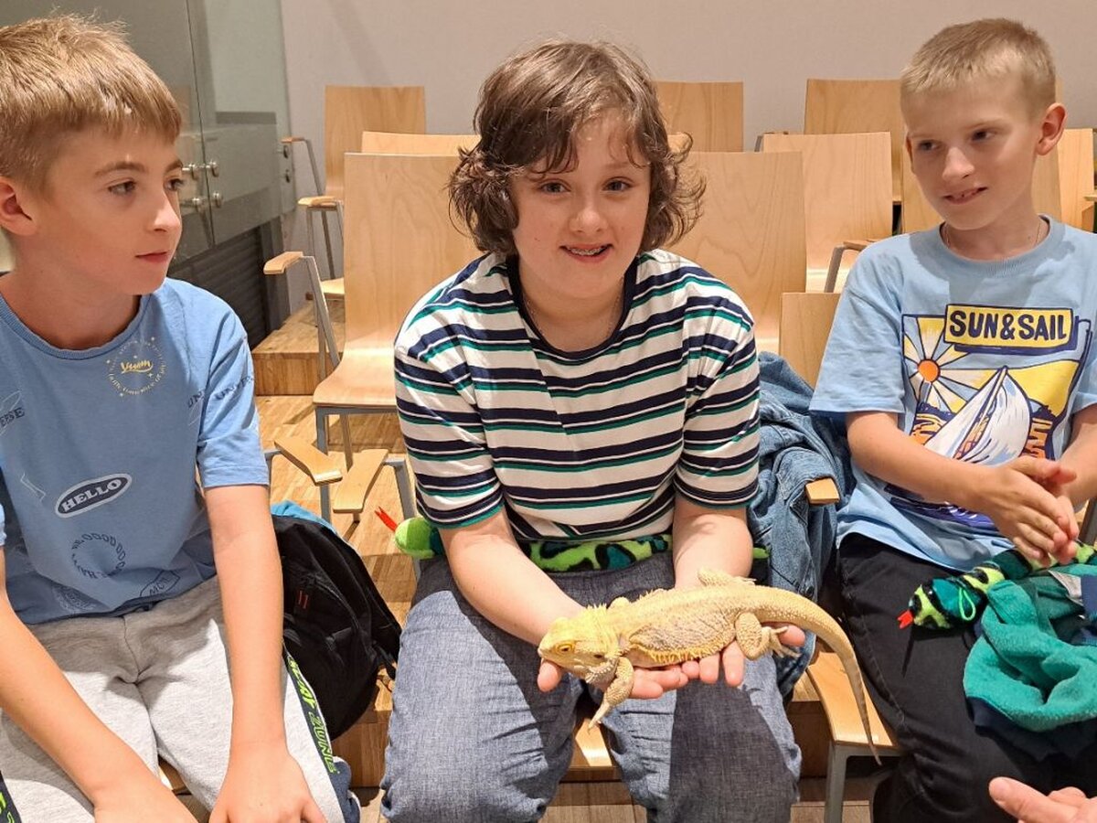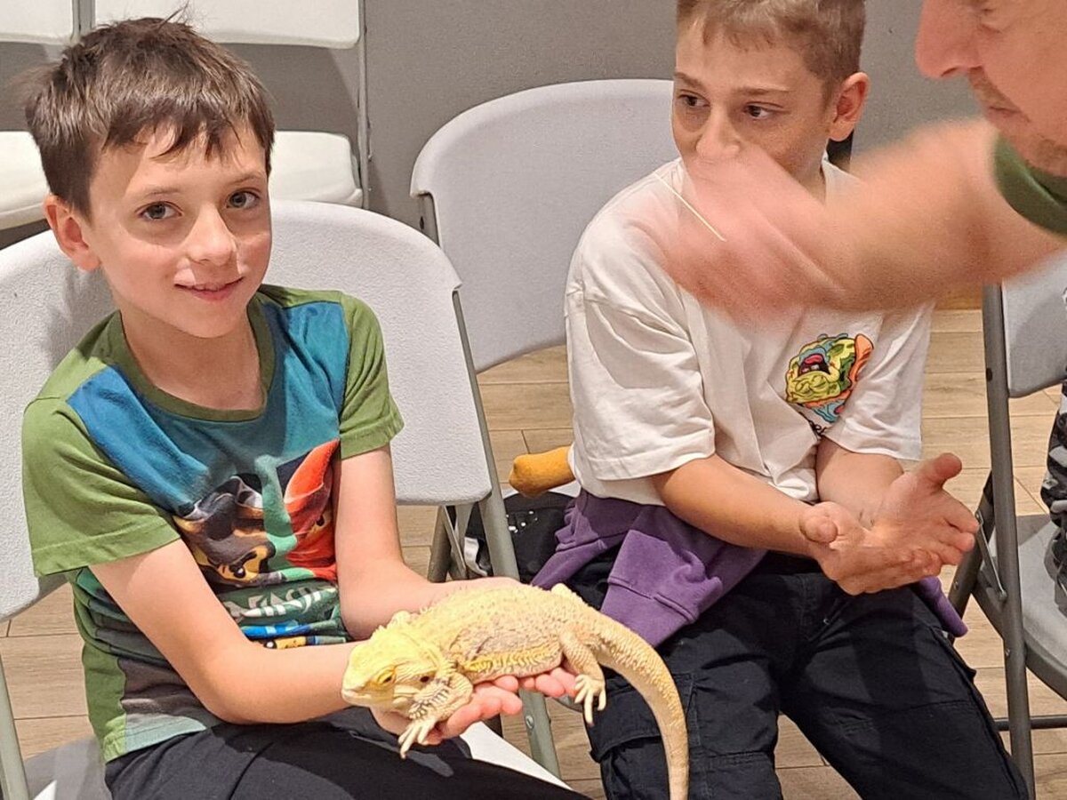 Następnie uczniowie odwiedzili laboratorium „Zoom Natury”, w którym mogli zobaczyć gigantyczne akwaria, terraria i insektaria, projektory 3D oraz profil glebowy. Tutaj odbyli też interaktywną podróż do wnętrza Ziemi. Dzieci uczestniczyły również w spotkaniu z egzotycznymi zwierzętami, które na żywo prezentował ich opiekun. Wszyscy mieli okazję trzymać na rękach jaszczurkę i węża.