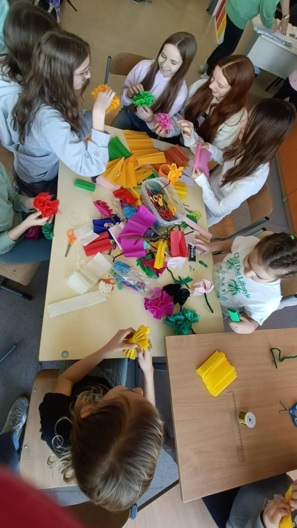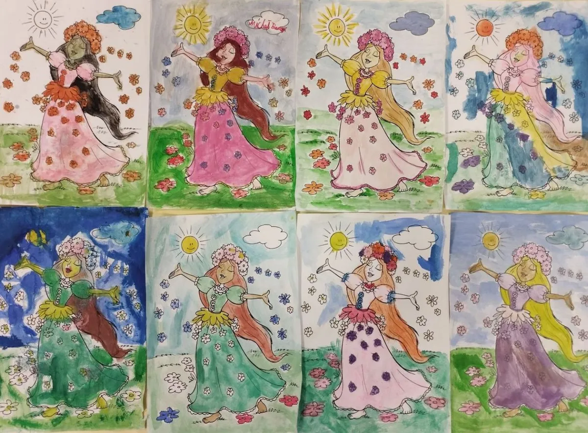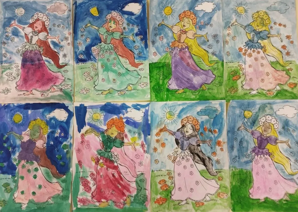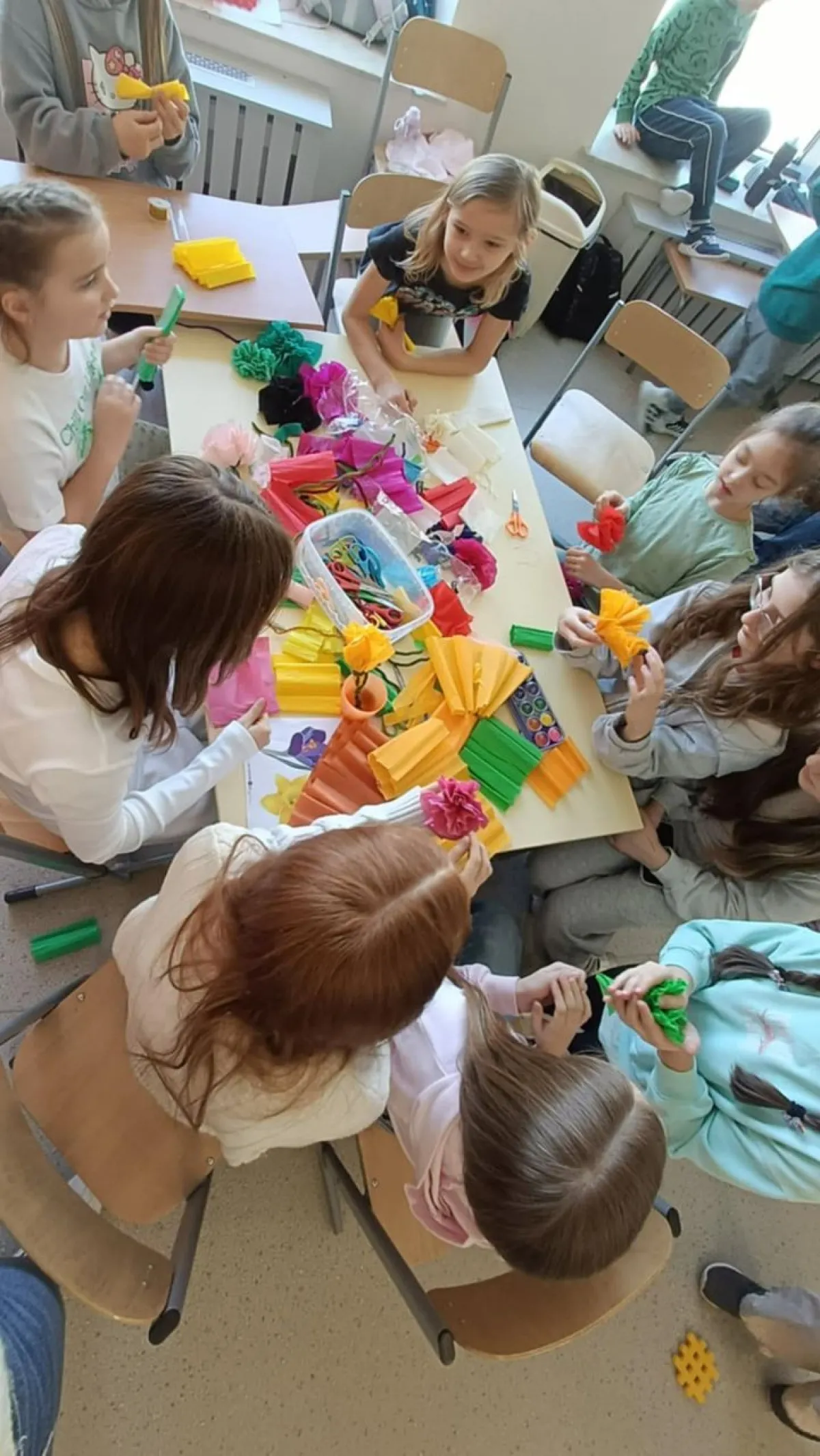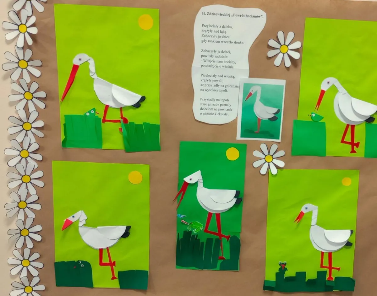 Literatura polska obfituje w piękne utwory o tematyce wiosennej, dlatego czytaliśmy wiersze i opowiadania, m.in. „”Przyjście wiosny” J. Brzechwy, „Wiosna w lesie” H. Zdzitowieckiej, „Ptasie radio” J. Tuwima. Pozostając w radosnym, wiosennym klimacie stworzyliśmy ciekawe prace plastyczne. Były to: portret Pani Wiosny, wykonany dowolną techniką, świat roślin i zwierząt oraz wiosenny bukiet, łąka lub pejzaż. Za każdym razem przekonywaliśmy się, że kreatywność naszych uczniów nie ma granic????