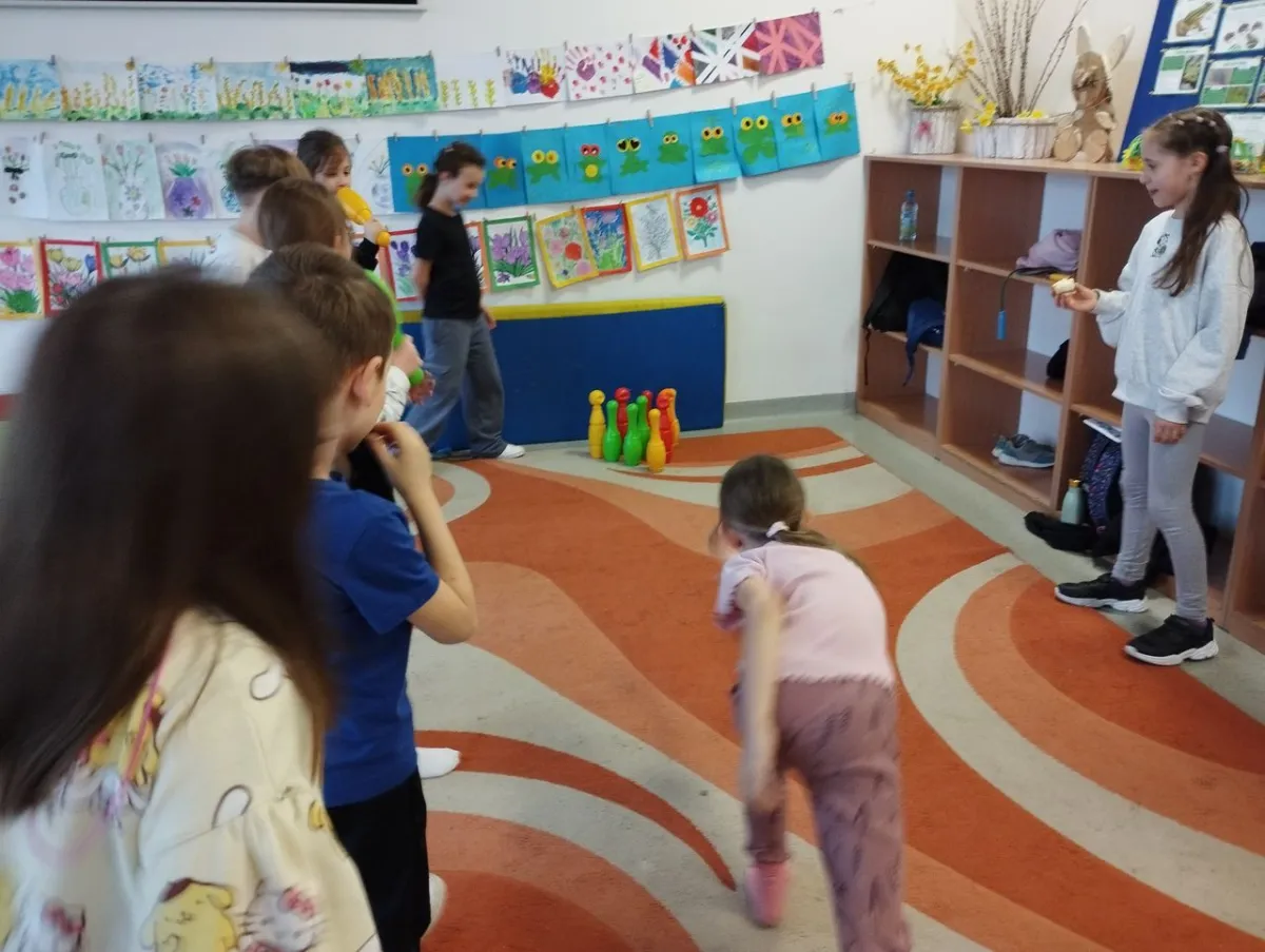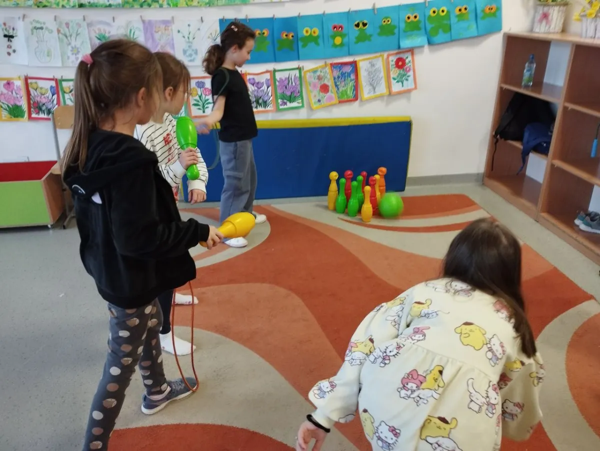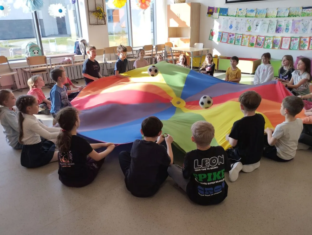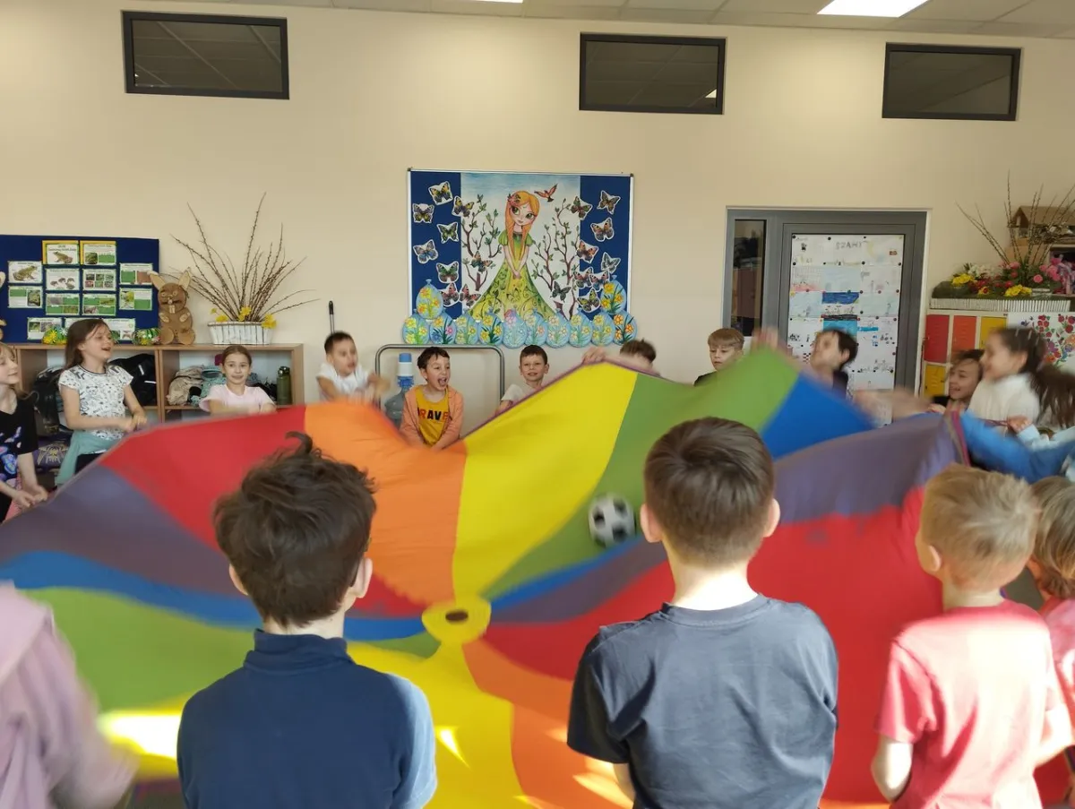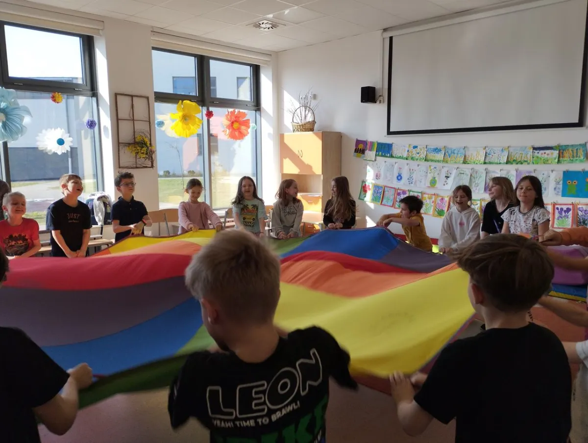 Oprócz tego rozwiązywaliśmy rebusy i krzyżówki, bawiliśmy się w wiosenne kodowanie oraz w kalambury. Gdy pozwalała na to pogoda, korzystaliśmy też z zabaw na świeżym powietrzu oraz bawiliśmy się w zabawy integracyjne z wykorzystaniem piłki i chusty animacyjnej.