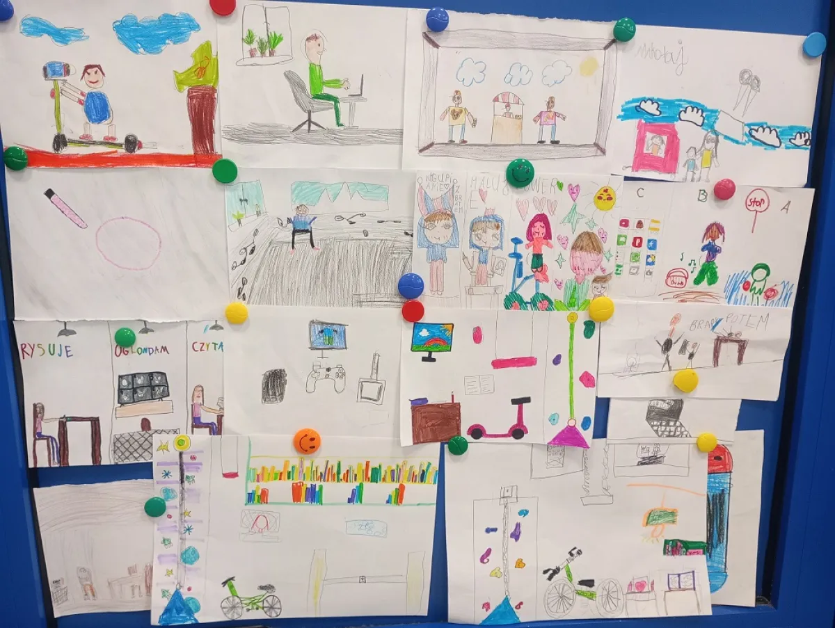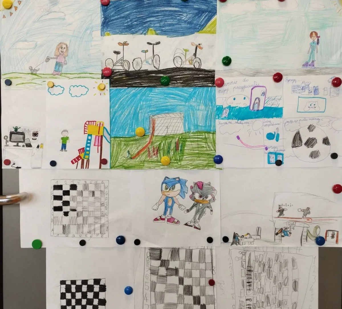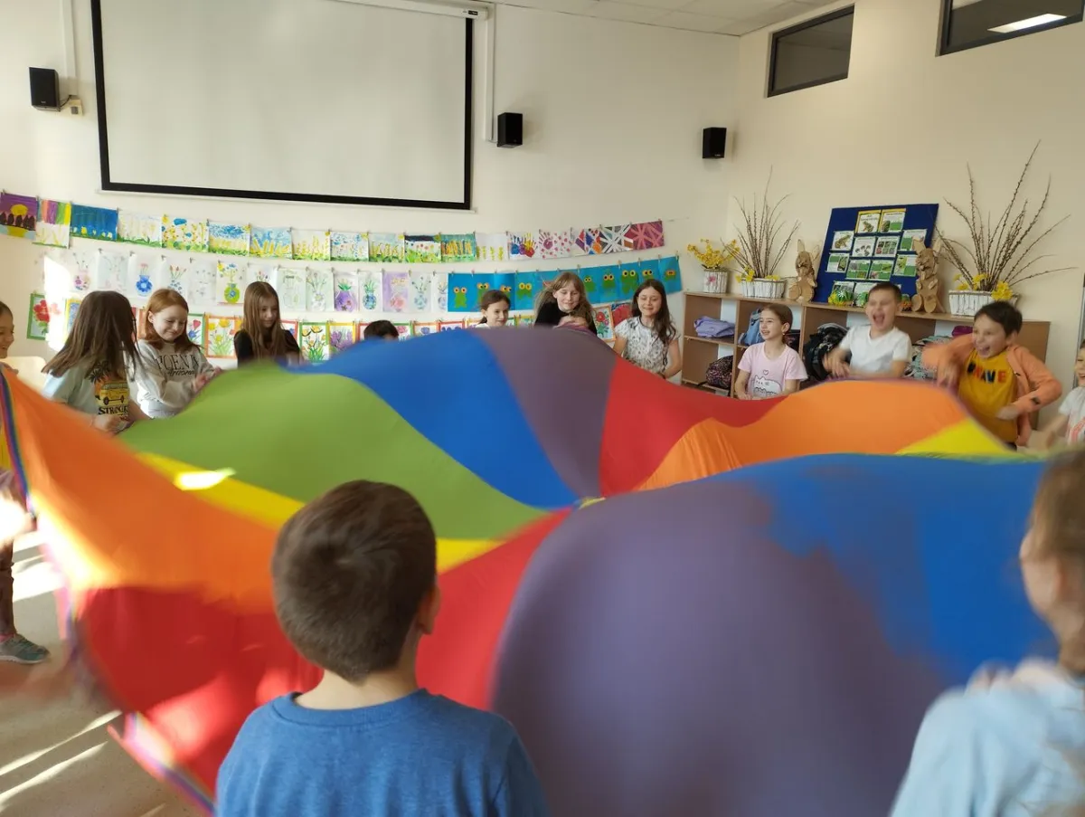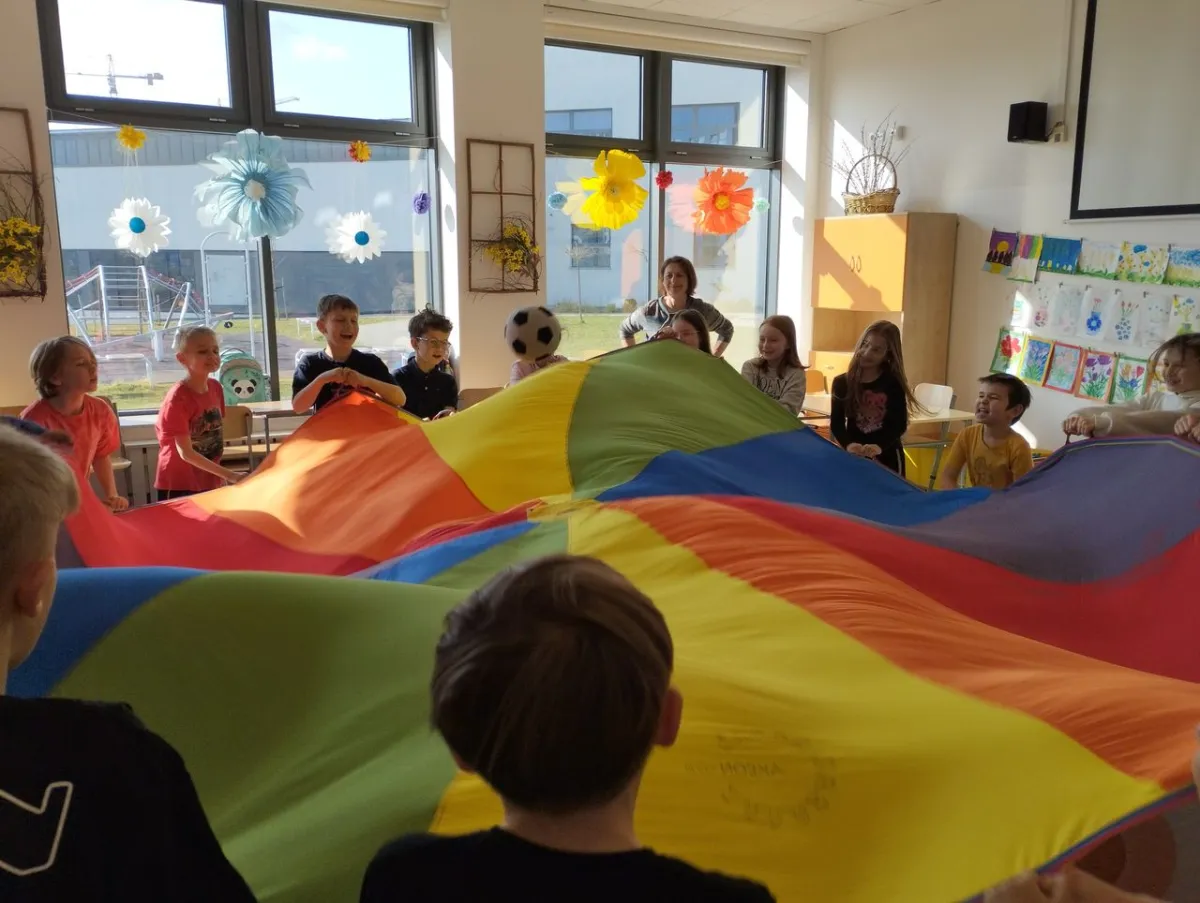 Oprócz tego rozwiązywaliśmy rebusy i krzyżówki, bawiliśmy się w wiosenne kodowanie oraz w kalambury. Gdy pozwalała na to pogoda, korzystaliśmy też z zabaw na świeżym powietrzu oraz bawiliśmy się w zabawy integracyjne z wykorzystaniem piłki i chusty animacyjnej.