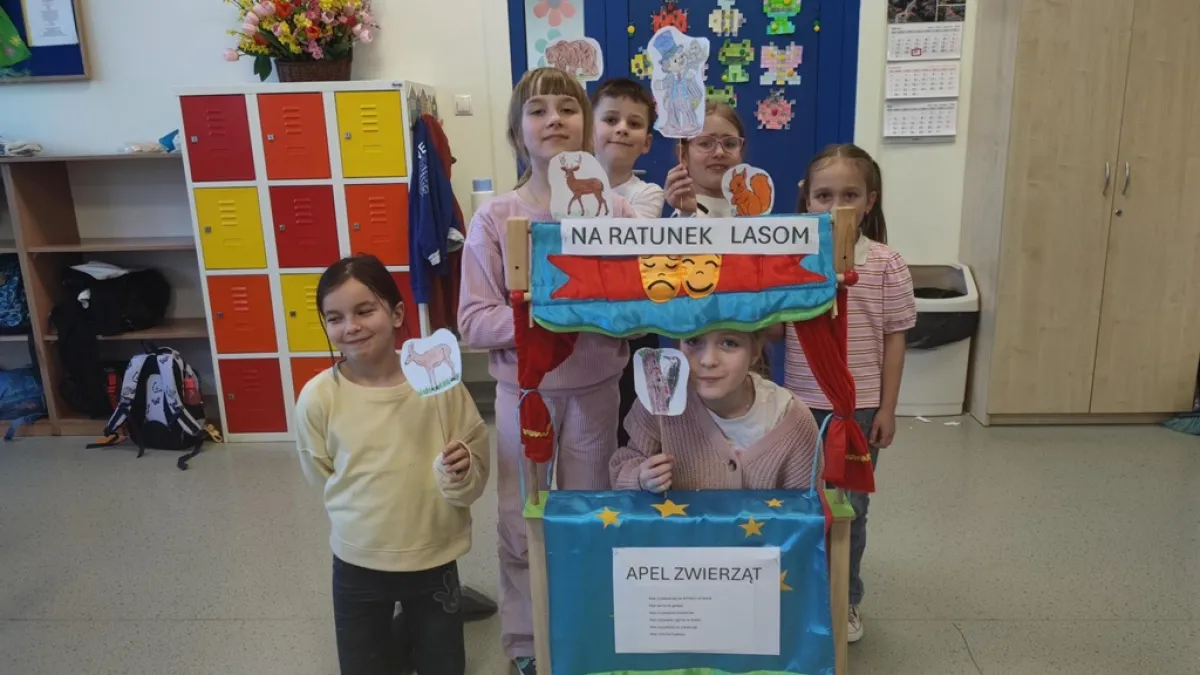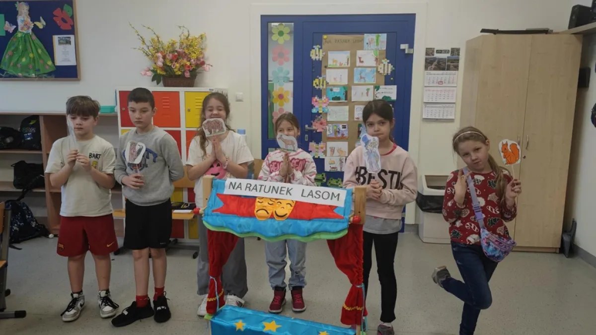 Z okazji Międzynarodowego Dnia Teatru dzieci ze świetlicy przygotowały dla swoich koleżanek i kolegów teatrzyk pt. Na ratunek lasom. Był to występ o tematyce ekologicznej zawierający ważny apel do ludzi aby dbali o lasy, które są cennym bogactwem roślin i zwierząt. Występujące z kukiełkami dzieci doskonale odegrały swoje role. Teatrzyk z dużym zainteresowaniem obejrzeli uczniowie z klas 1d,2c,2d,2e, 3c,3f przebywający w świetlicy szkolnej.