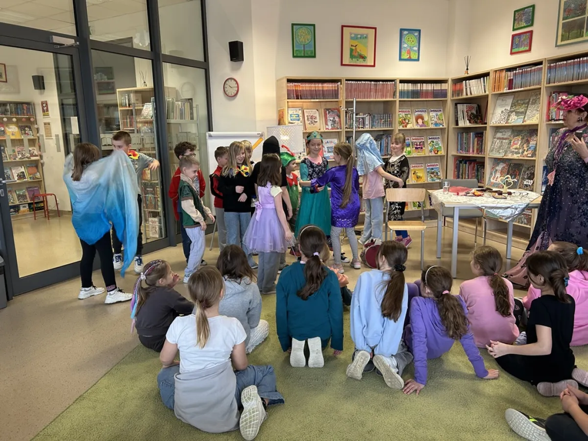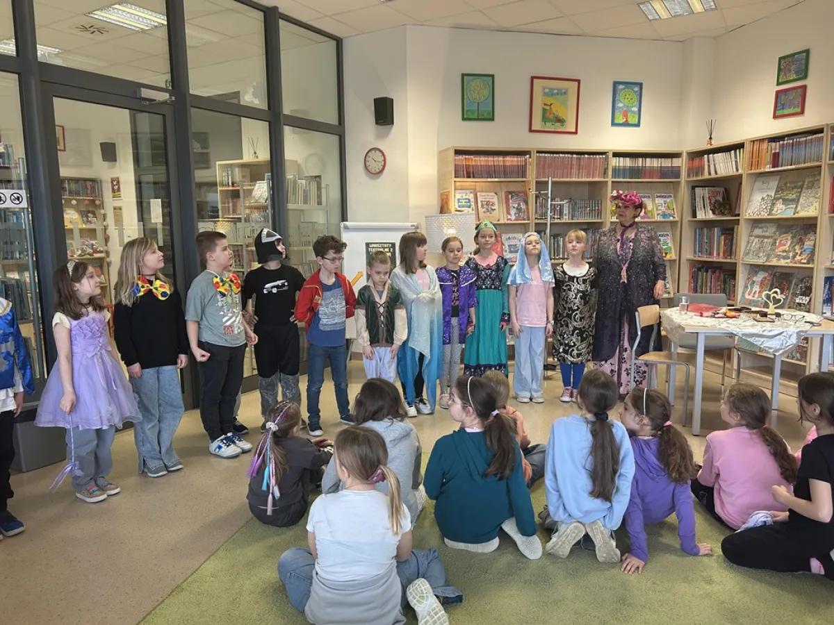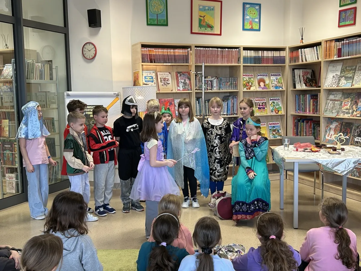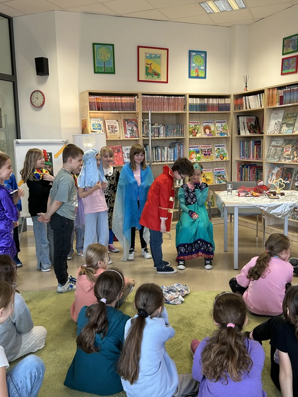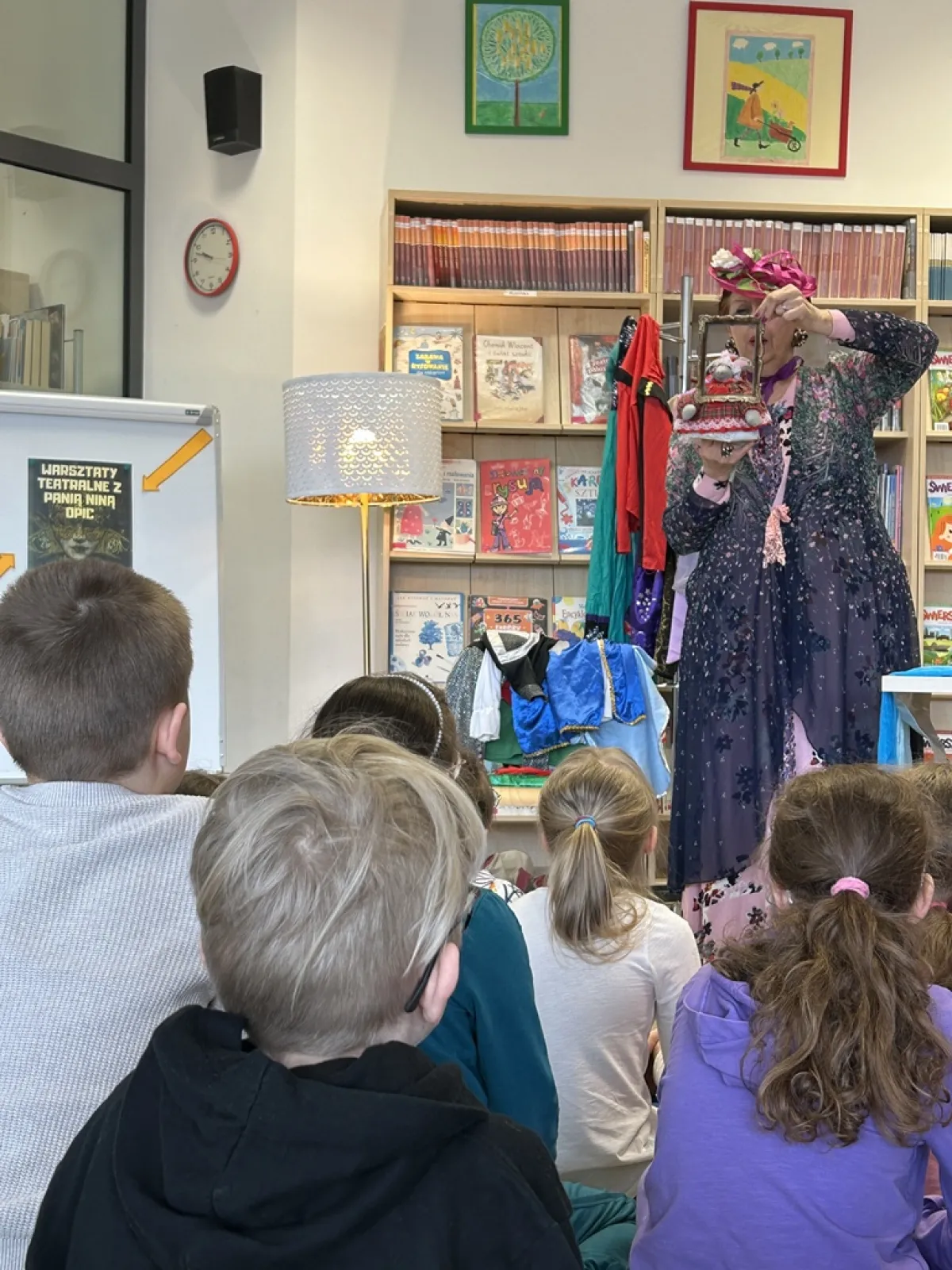 W dniu 27 marca w czytelni szkolnej biblioteki odbyły się warsztaty teatralne z rzeszowską pisarką, poetką oraz autorką wielu scenariuszy teatralnych i aktorką w jednej osobie czyli Panią Niną Opic. Spotkanie to nie było przypadkowe, ponieważ łączyło się z obchodami Międzynarodowego Dnia Teatru. Uczniowie klas drugich mieli możliwość wzięcia udziału w tworzeniu teatru „na żywo”, odegrali też scenki, wcielając się w różne postacie a ułatwiały im to kostiumy, które na potrzeby teatrzyku otrzymali od naszego wspaniałego gościa. Oprócz odgrywania scenek, dzieci dowiedziały się mnóstwo ciekawych informacji na temat historii teatru oraz osób, które pracują w tej instytucji kultury.