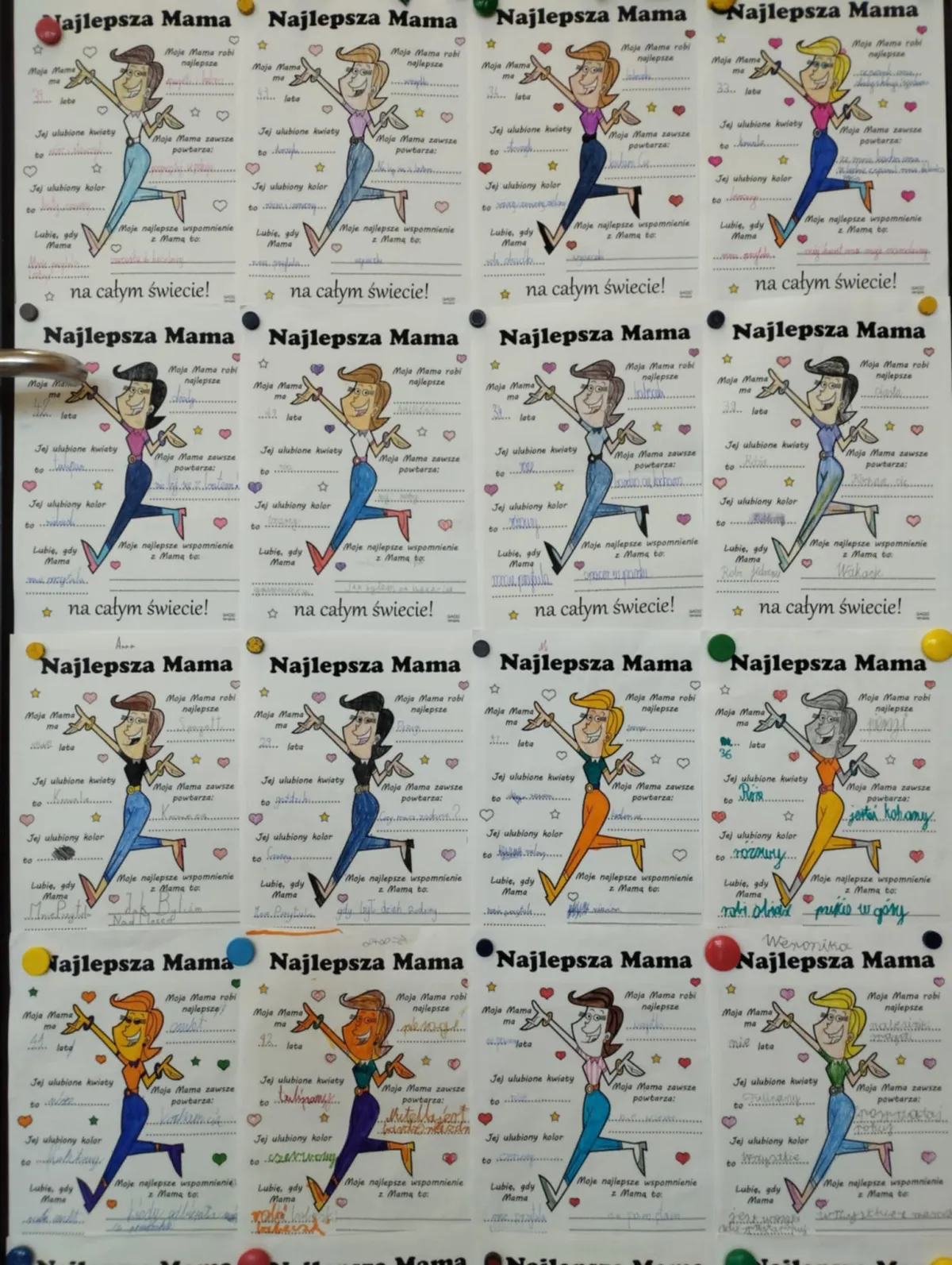W ostatnim tygodniu maja nasze zajęcia miały szczególny charakter, ponieważ obchodziliśmy dwa bardzo ważne święta. Dzień Mamy oraz długo wyczekiwany dzień dziecka. Wykonaliśmy upominki dla mamy i taty. Stworzyliśmy portret mamy oraz taty. Słuchaliśmy piosenek o mamie oraz tacie. Czytaliśmy wiersze poświęcone tematyce związanych z dniem mamy. Odbyła się pogadanka dotycząca Konwencji praw dziecka - co to jest? I dlaczego została uchwalona? Narysowaliśmy swój autoportret –„ jakim dzieckiem jestem „? Słuchaliśmy piosenki Majki Jeżowskiej „Wszystkie dzieci nasze są” podjęliśmy próby nauki oraz odśpiewania wspólnie.