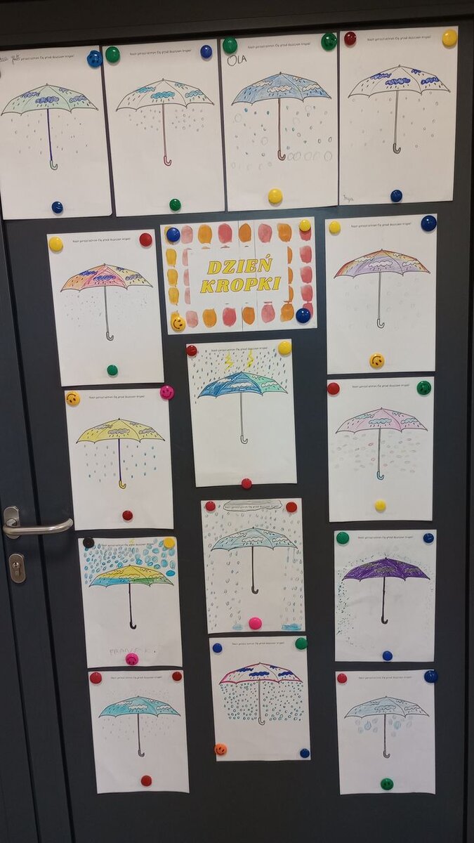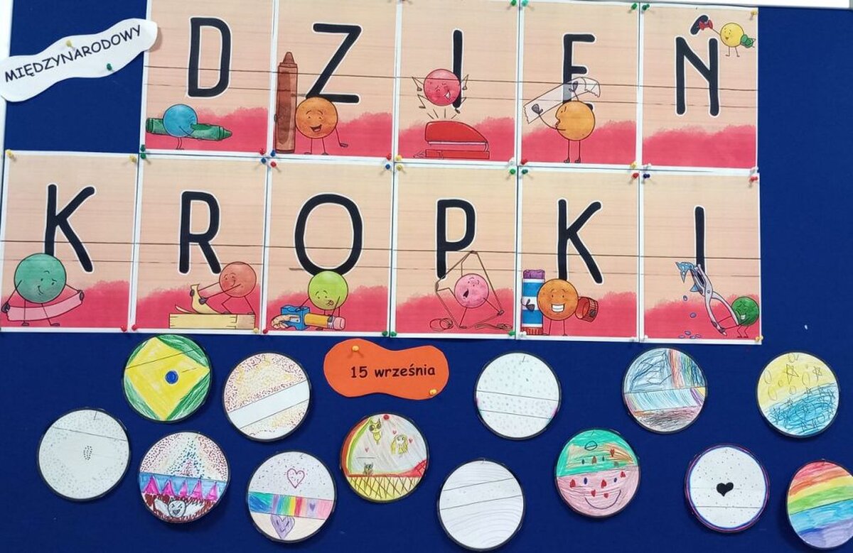 Międzynarodowy Dzień Kropki, to coraz bardziej popularne święto kreatywności, odwagi i zabawy, które obchodzimy 15 września. Tego dnia dzieci uczęszczające do świetlicy szkolnej miały okazję poznać historię powstania tego święta, opowiadały ochoczo o swoich odkrytych talentach oraz uczestniczyły w licznych zabawach ruchowych z wiązanych z omawianym tematem. Na koniec zajęć uczniowie wykonali pracę plastyczną.