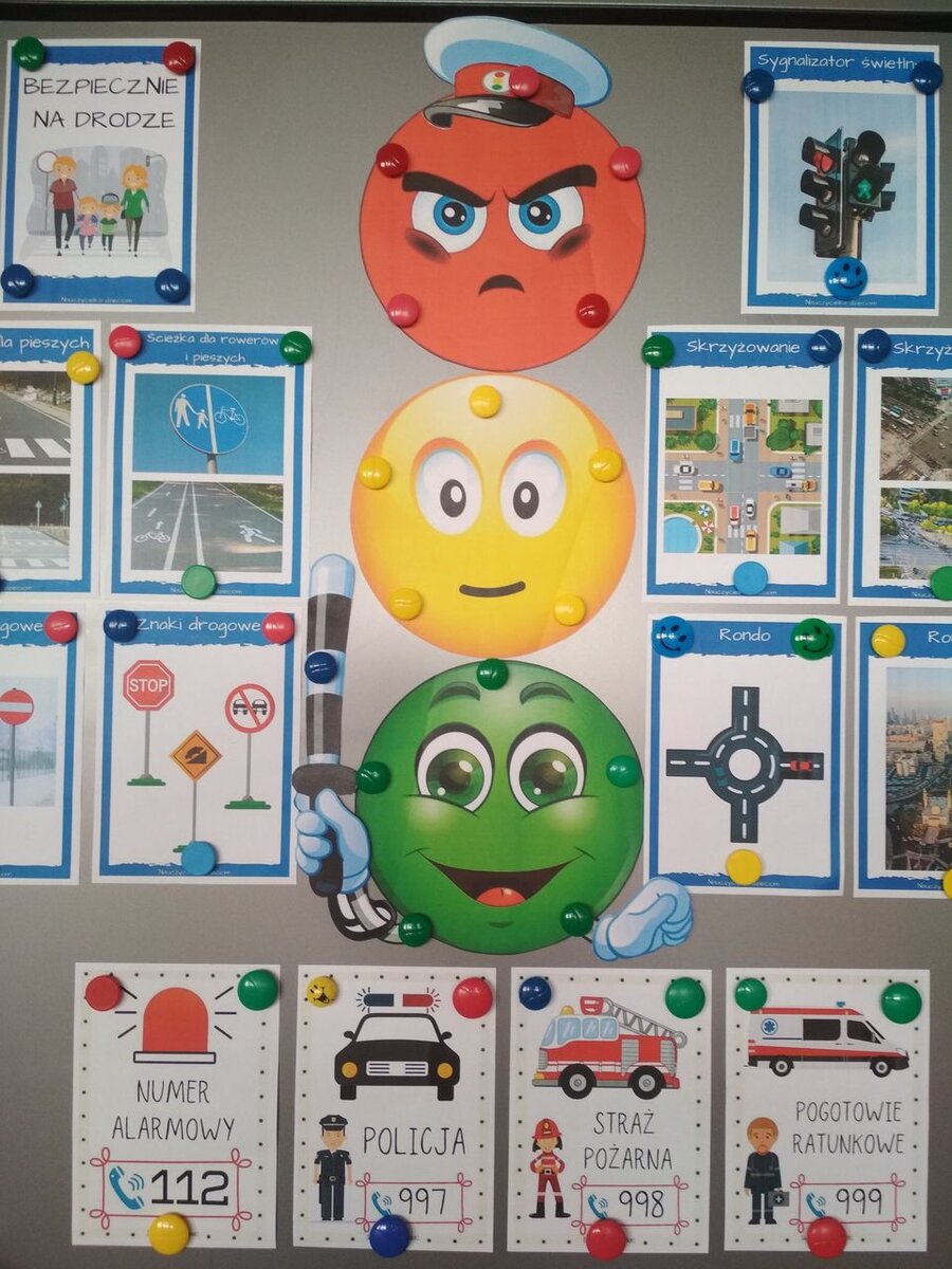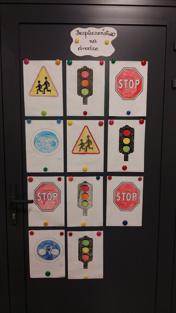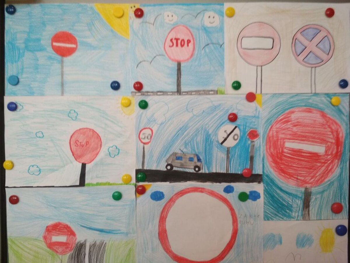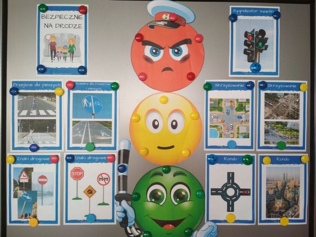 Bezpieczeństwo to bardzo ważna sprawa, dlatego w tym tygodniu poznawaliśmy i utrwalaliśmy zasady bezpiecznego poruszania się po chodniku i podczas przechodzenia przez jezdnię. Oglądaliśmy krótkie filmiki edukacyjne dotyczące różnych sytuacji na drodze. Odgrywaliśmy scenki rodzajowe i rozwiązywaliśmy zagadki dotyczące ruchu drogowego, żeby jeszcze bardziej przyswoić sobie i zapamiętać zasady bezpiecznego poruszania się. Wspólnie czytaliśmy i omawialiśmy wiersz Wandy Chotomskiej pt.: „Gdy zamierzasz przejść ulicę”. Poznawaliśmy zasadę „Jestem widoczny na drodze”, a także rozmawialiśmy na temat znaków drogowych na podstawie prezentacji multimedialnej. Na zajęciach plastycznych wykonywaliśmy znaki drogowe i sygnalizatory świetlne. Świetnie bawiliśmy się na placu zabaw.